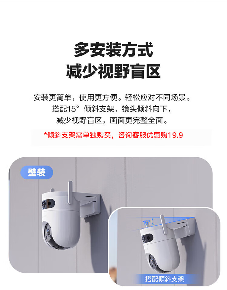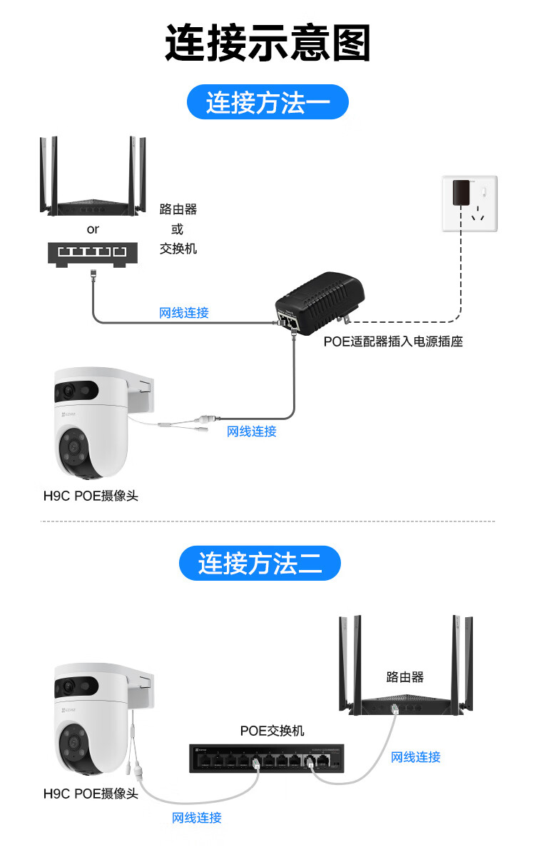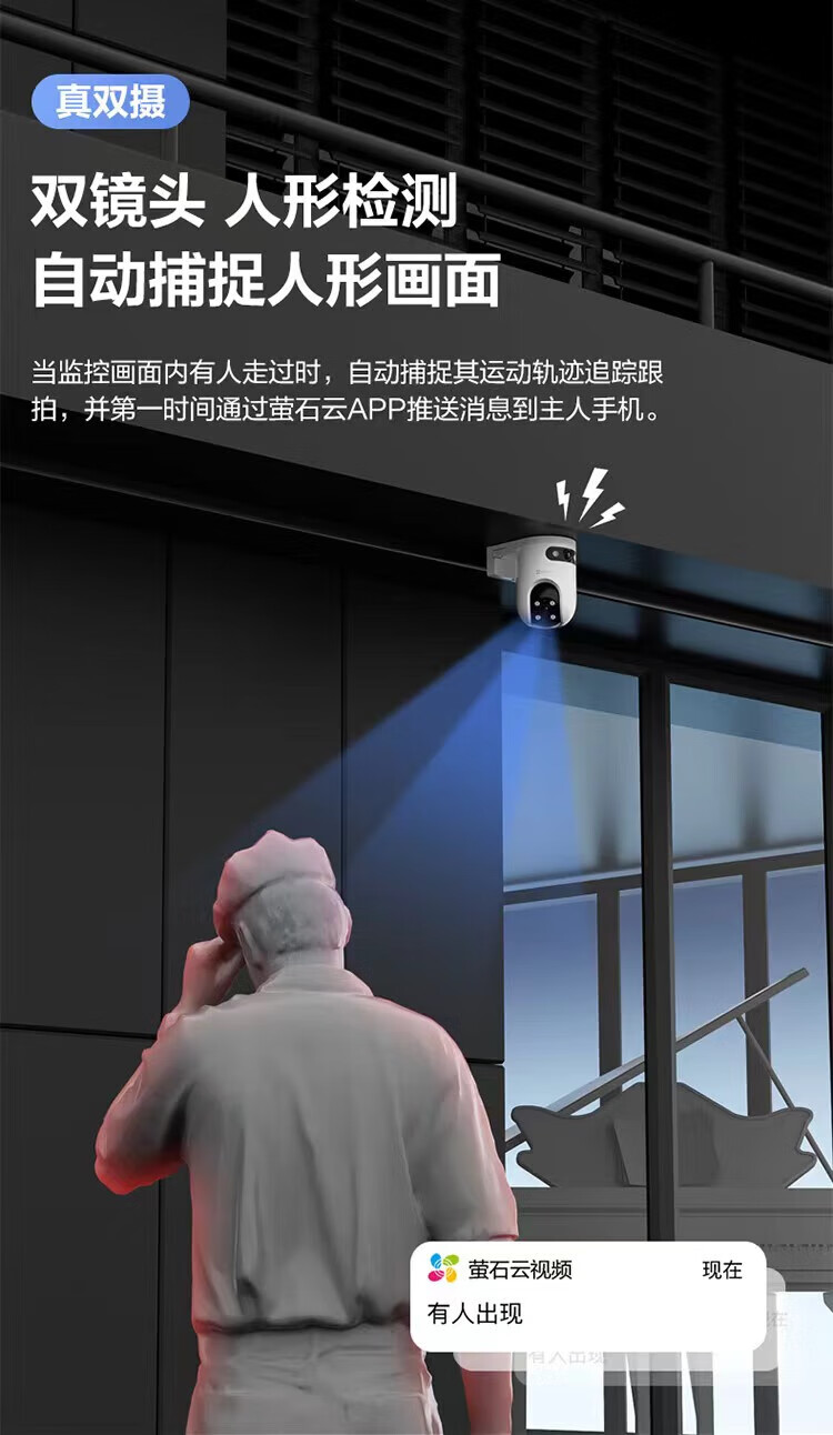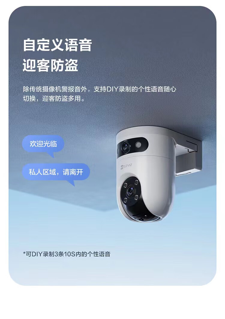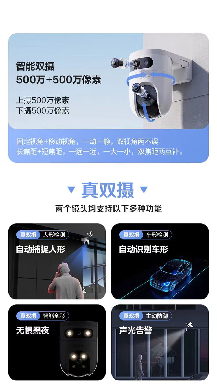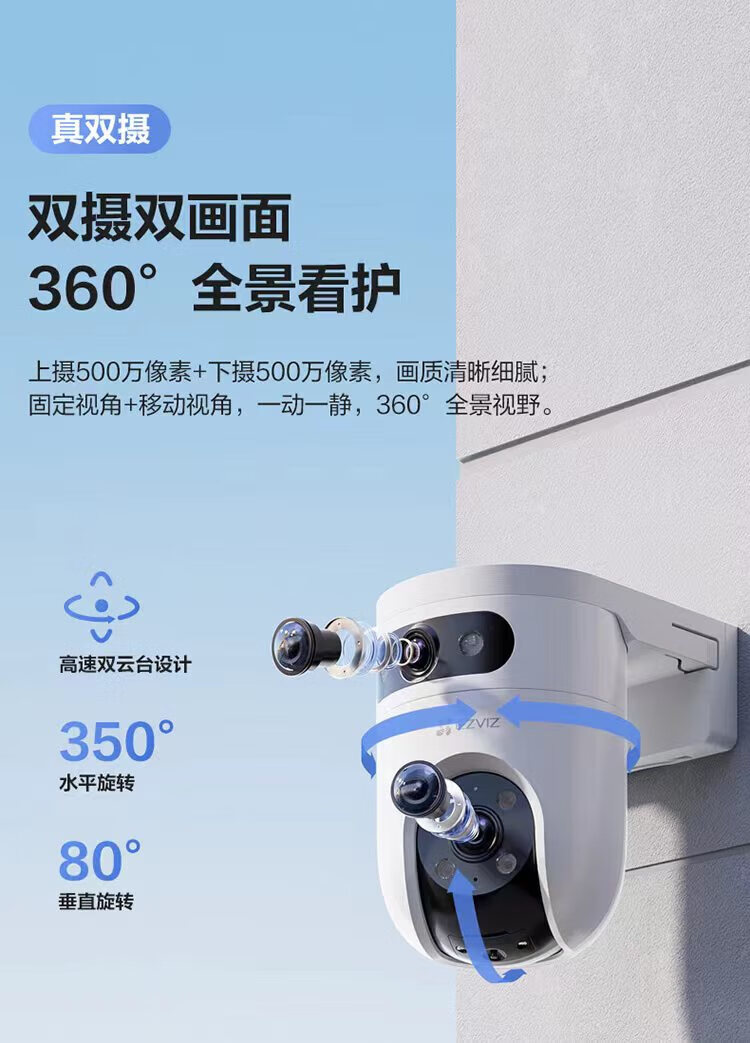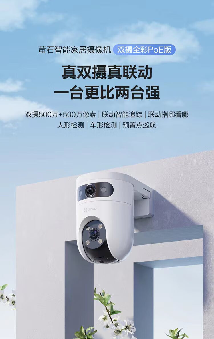 萤石H9c 1000万智能双摄监控摄像头家用POE网线供电监控器日夜全彩360度全景夜视手机远程云台室外看护 双摄500万+500万【POE版】 官方标配+30天云存储