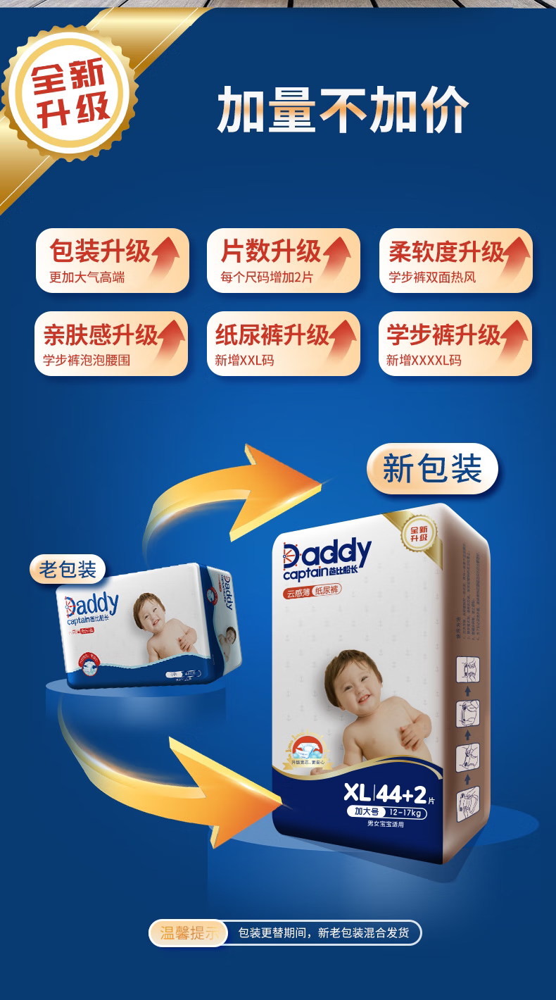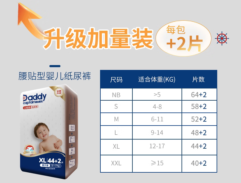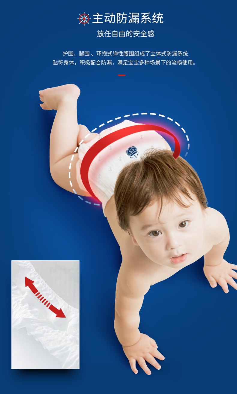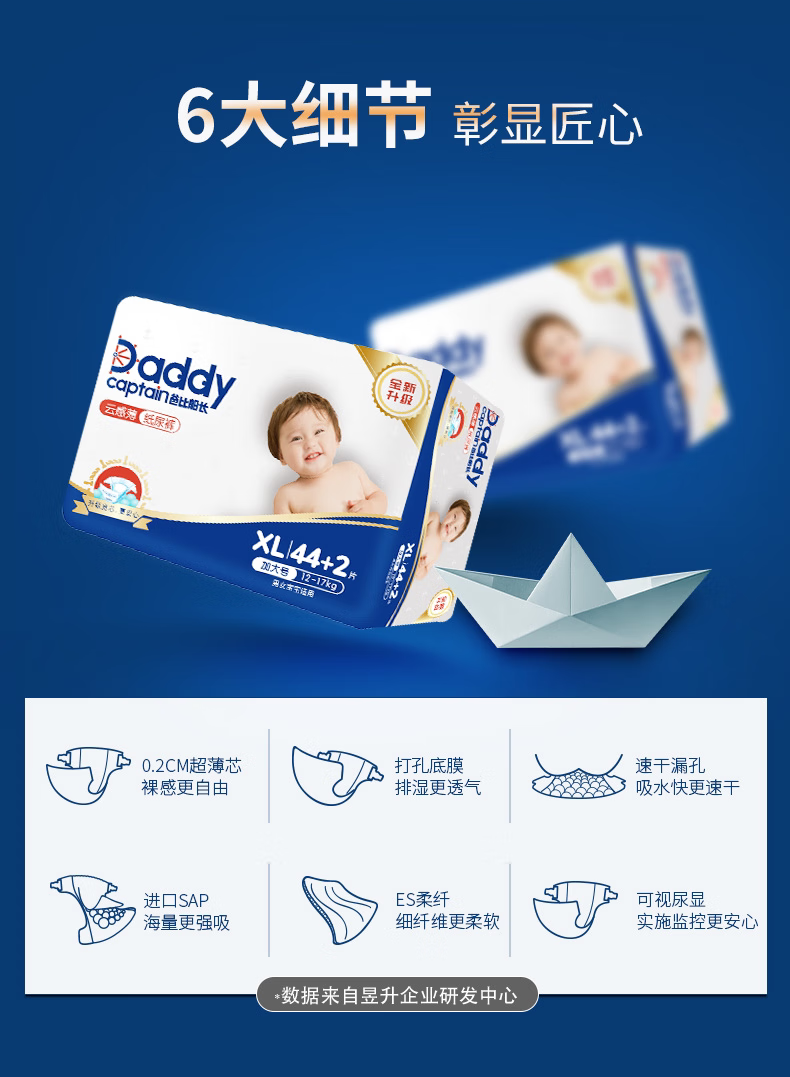 爸比船长云感薄系列纸尿裤拉拉裤 超大吸量无感裸感婴儿透气亲肤 S码纸尿裤60片