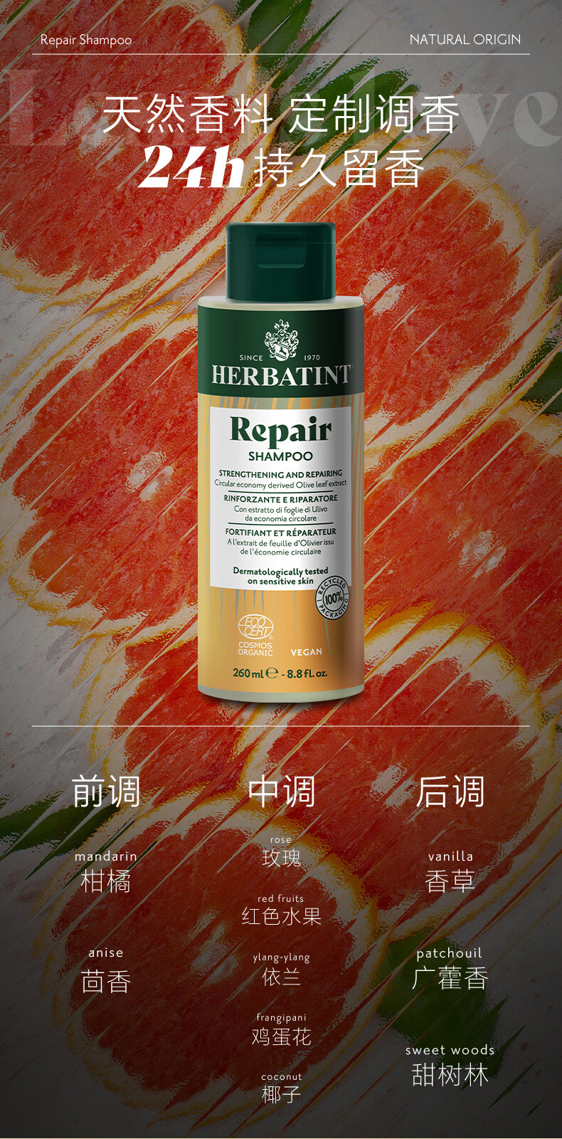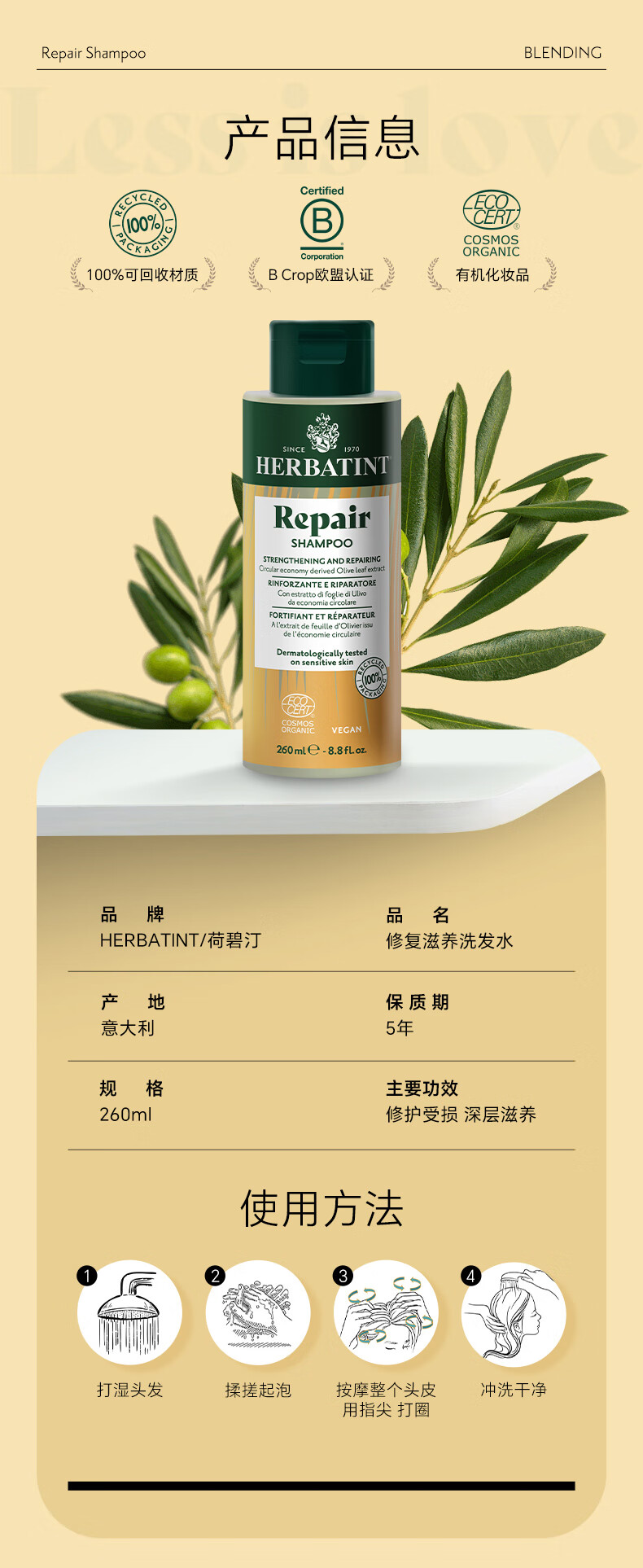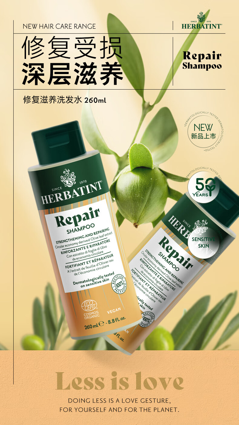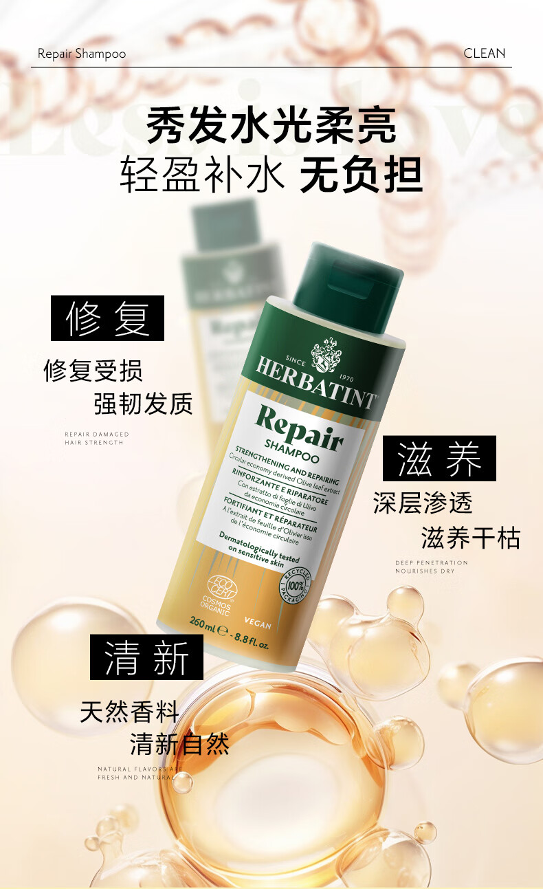 HERBATINT荷碧汀修护修复滋养洗发水260ml温和低敏 修复洗发水260ml