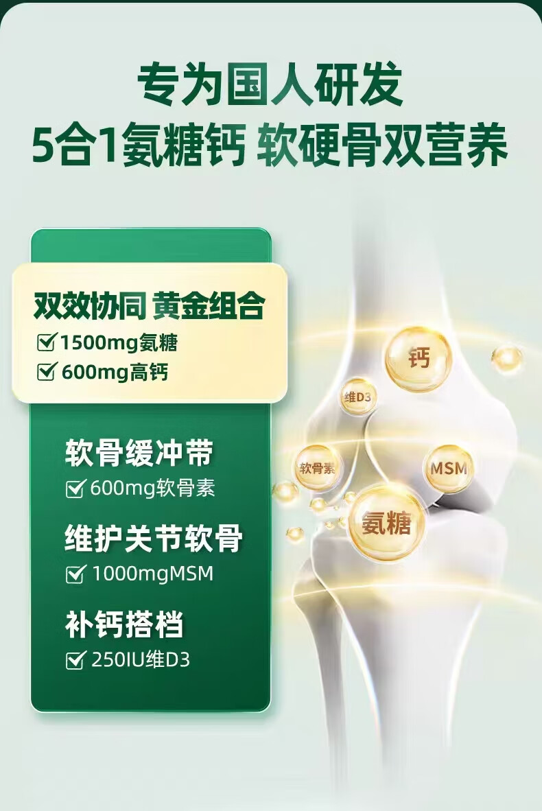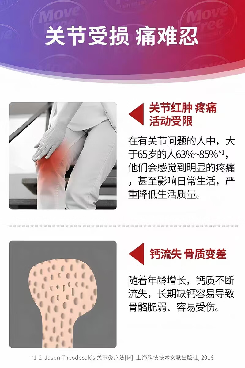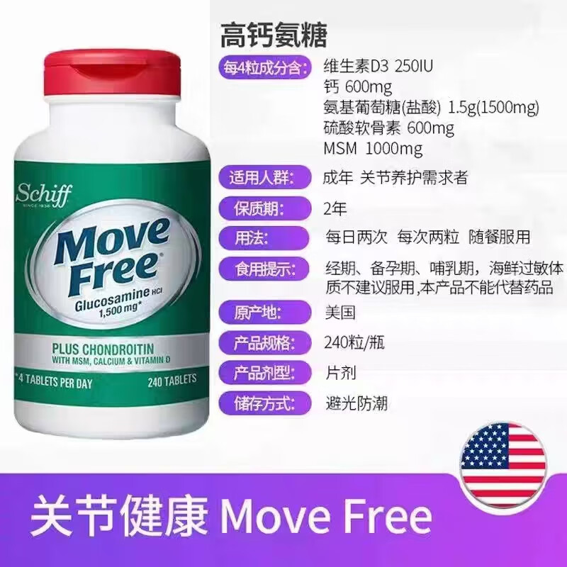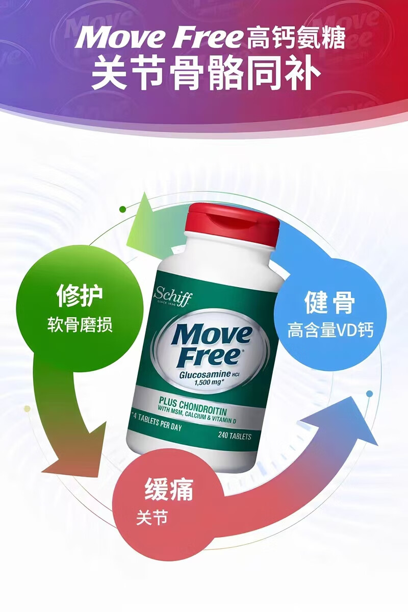 旭福Move Free美国进口高钙氨糖维骨力软骨素中老年人护关节氨糖240粒 高钙5合1氨糖钙三瓶*240粒