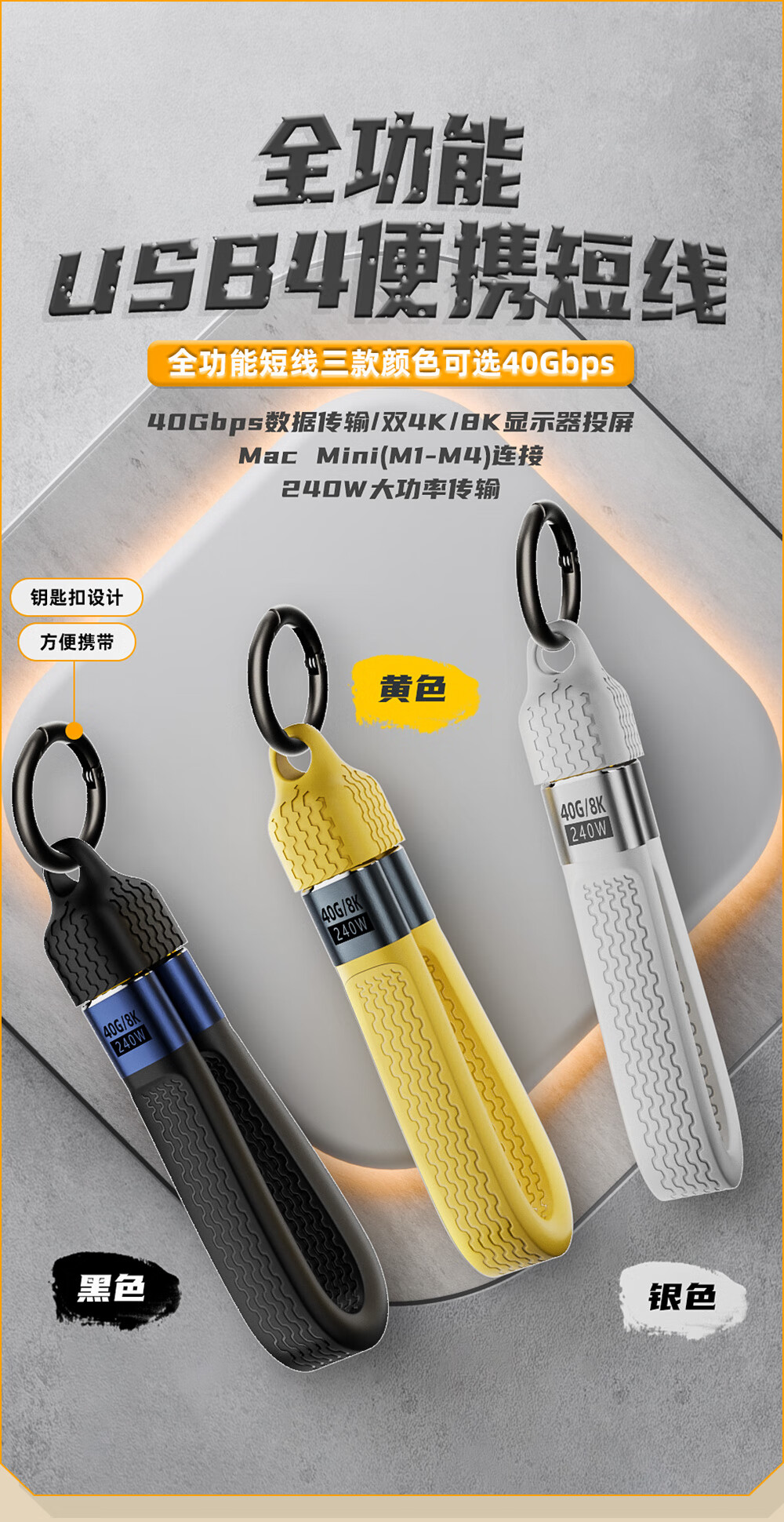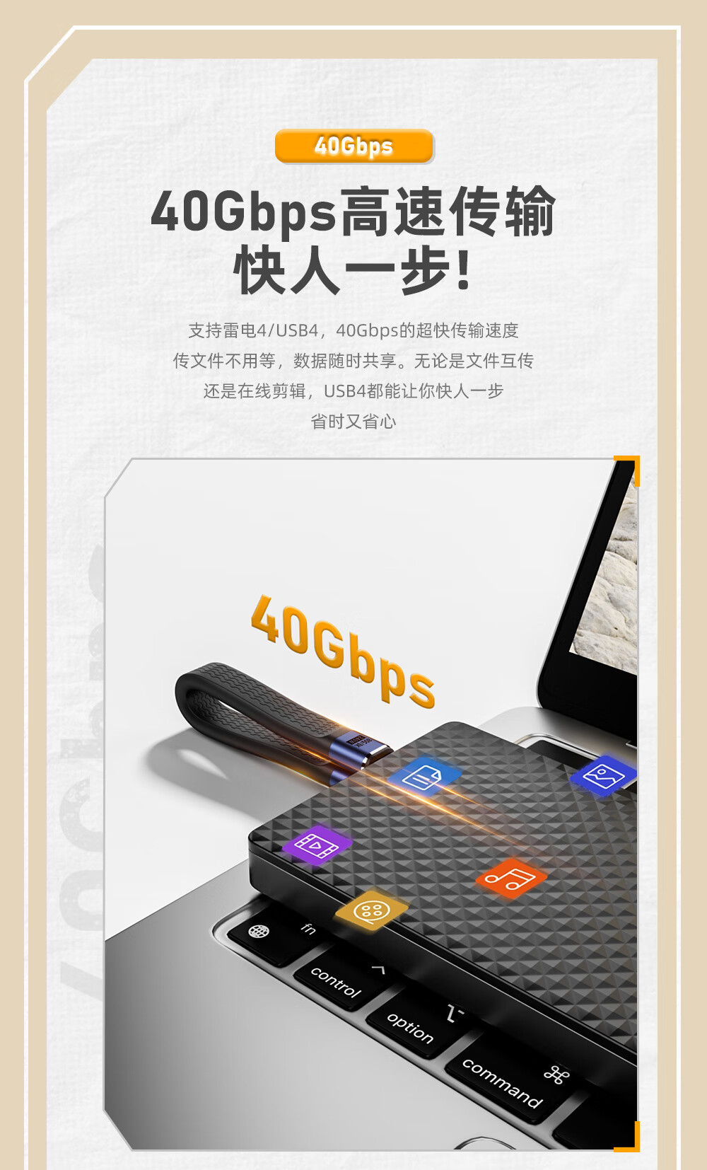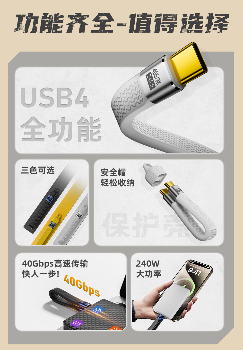 Smorss数据线Type-C全功能ctoc兼容雷电4双头短线240W快充40Gbps高速传输PD3.1适用手机电脑移动硬盘 银