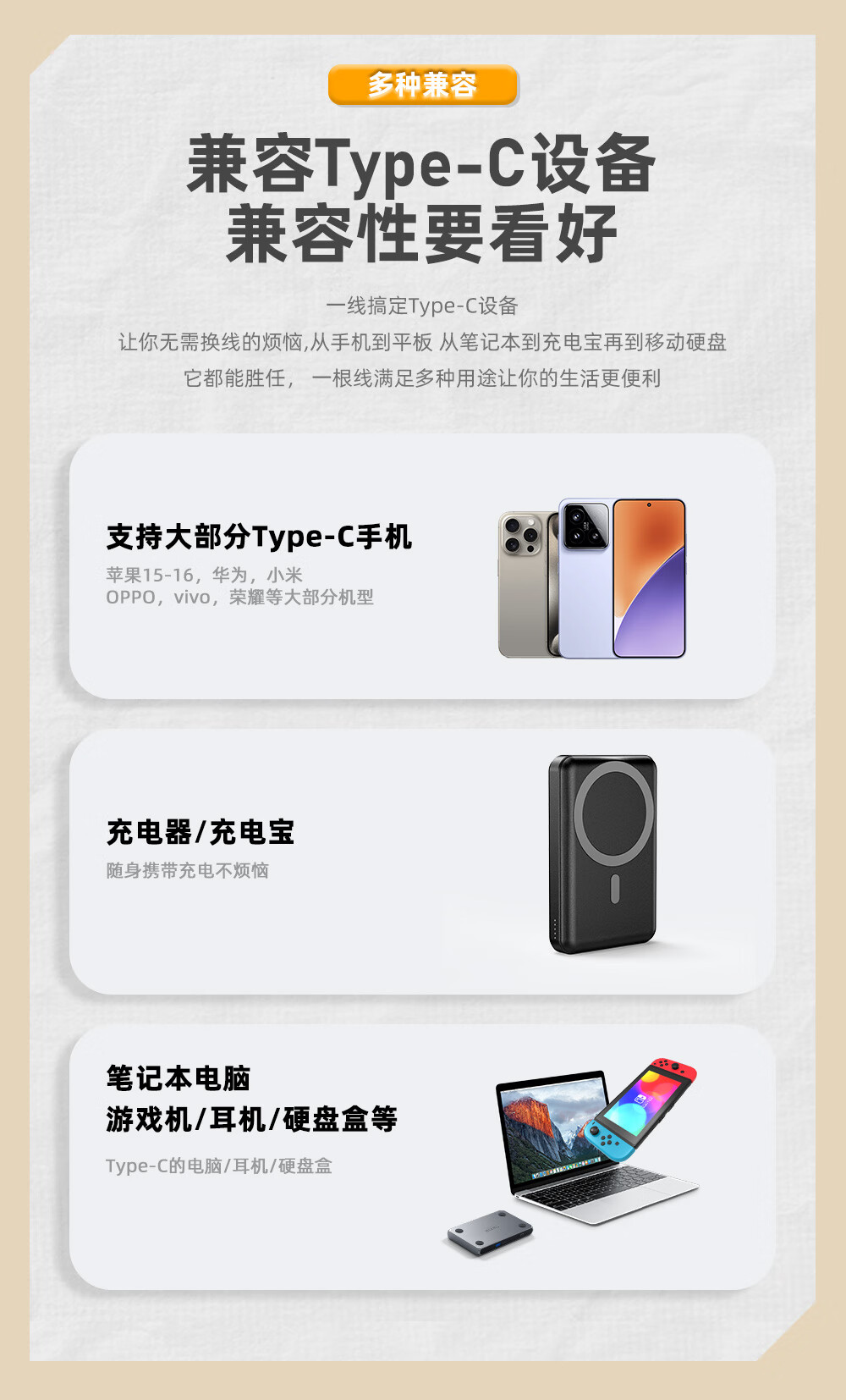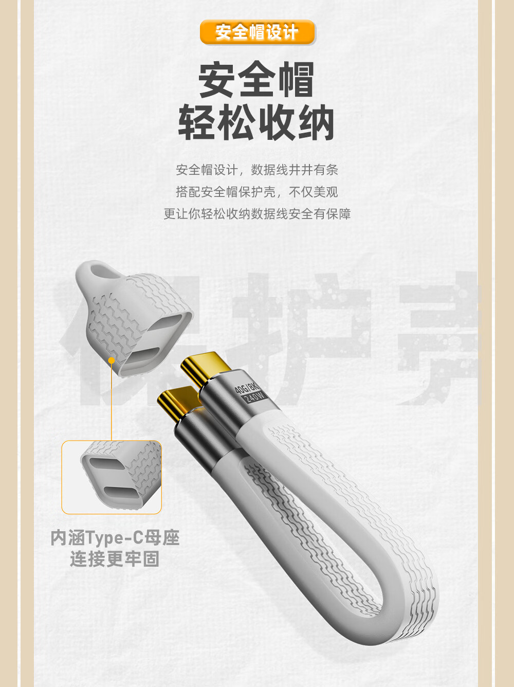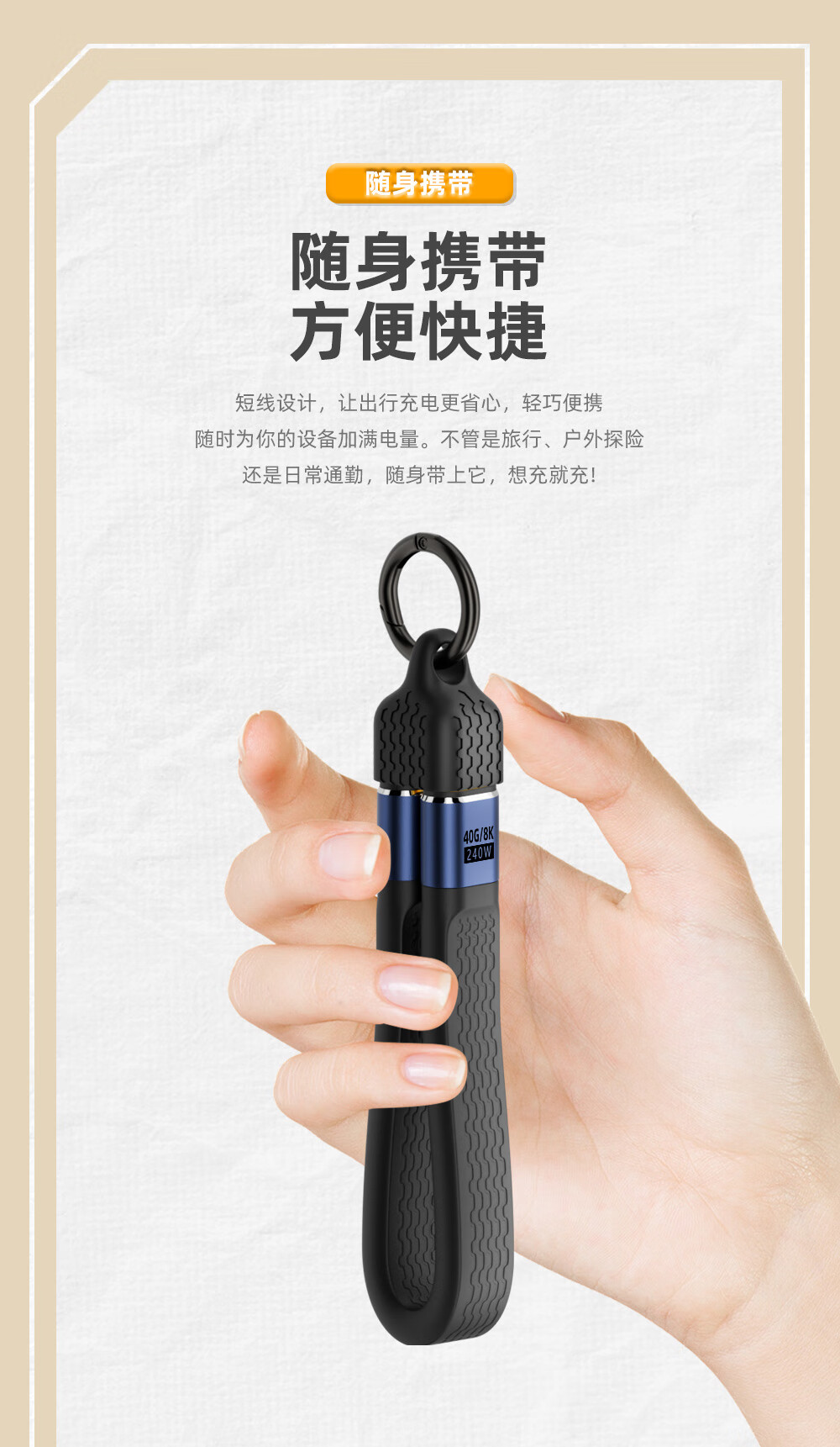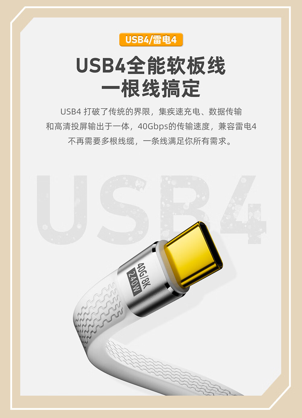 Smorss数据线Type-C全功能ctoc兼容雷电4双头短线240W快充40Gbps高速传输PD3.1适用手机电脑移动硬盘 银