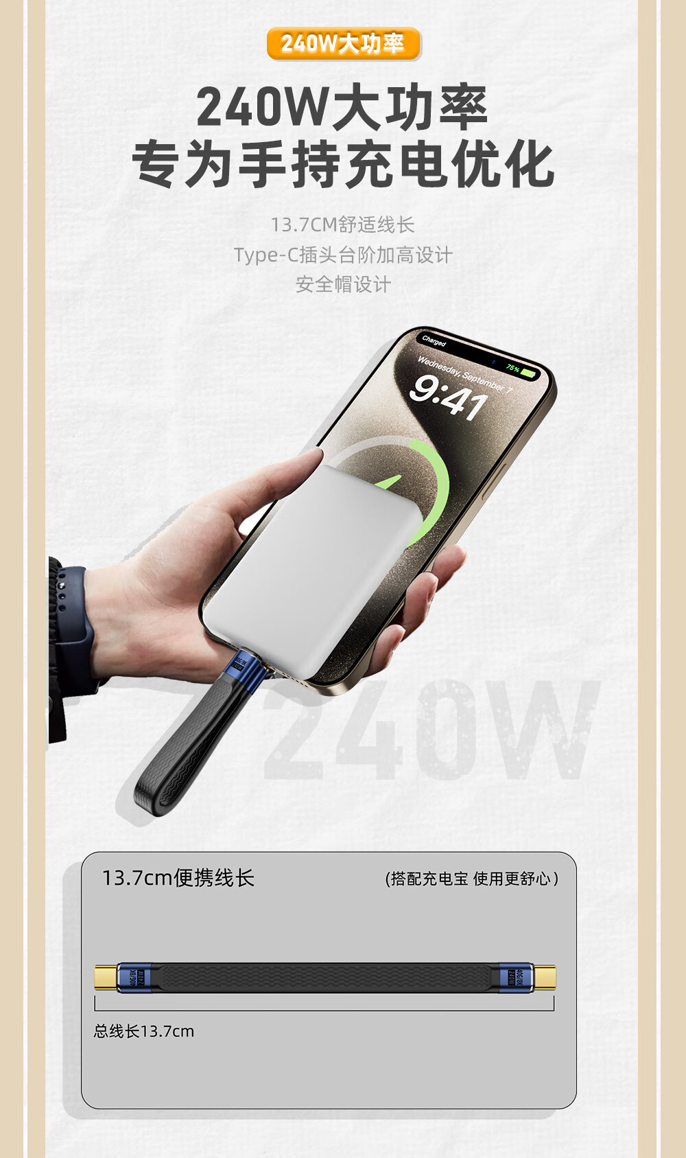 科希帝【国家3C认证】【新国标丨飞机高铁】超级快充自带线充电宝小巧便携移动电源适用苹果小米20000 炫酷黑【标准版+3C安全认证】