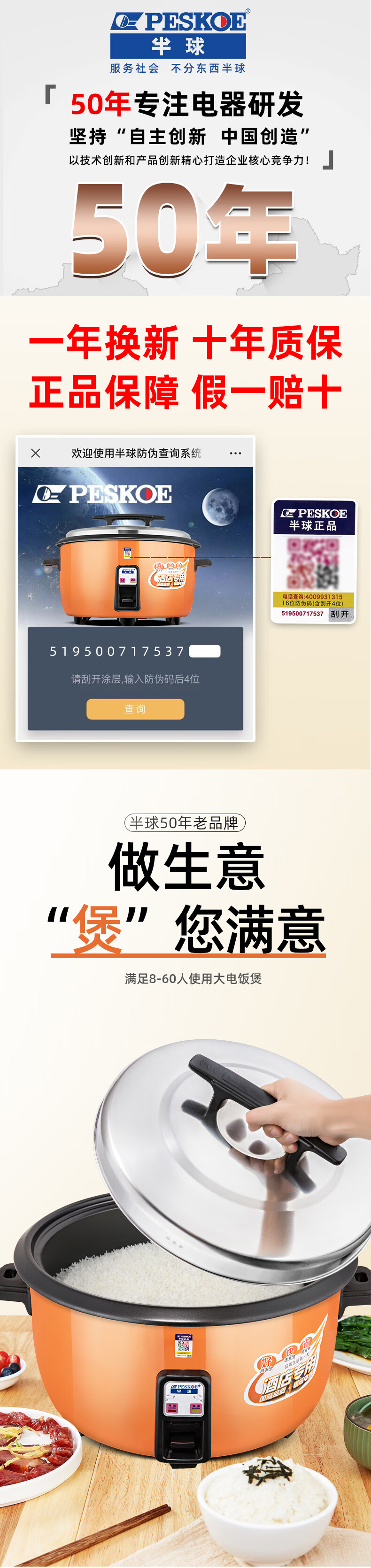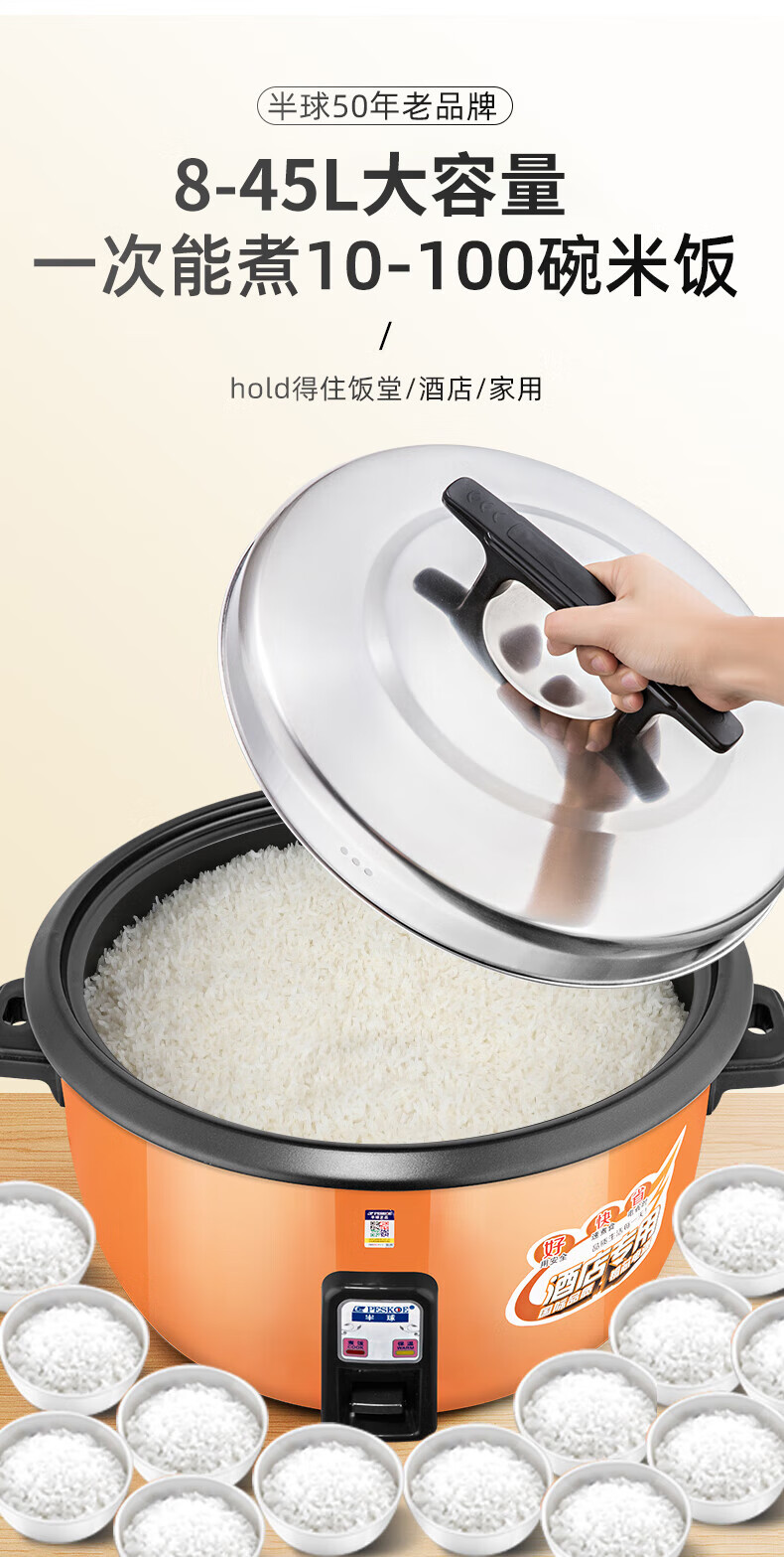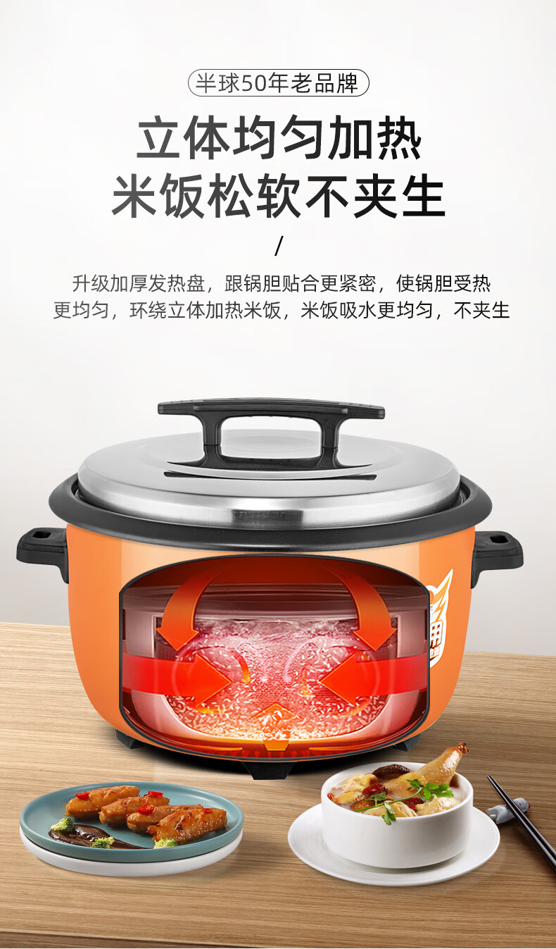 半球商用电饭锅老式食堂酒店饭店商业大容量10人以上不粘锅工地大排档大型加厚电饭煲 橙色10升加厚不粘胆10-15人(无蒸笼)