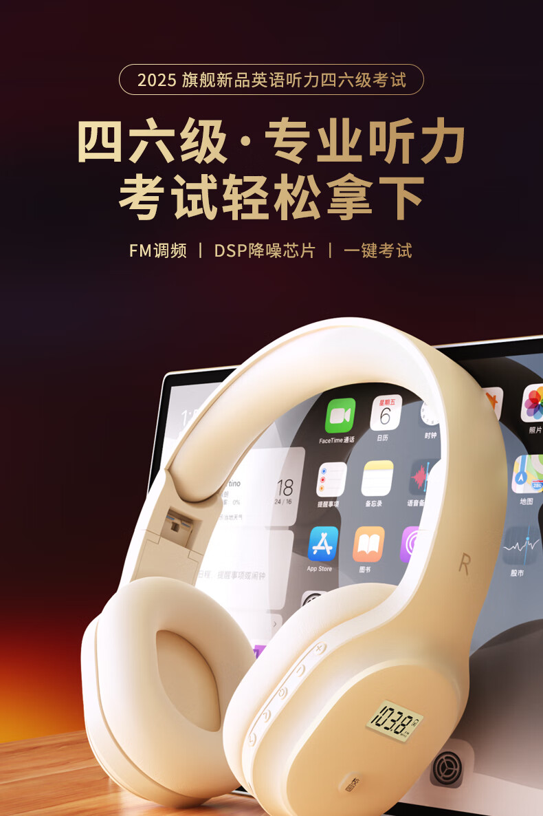 摩利奥四六级听力耳机考试英语四级专四专八FM调频46级头戴式运动游戏耳麦手机电脑通用校园广播考研有线 F1充电黑色【FM调频】送充电线 无蓝牙|无红外|无音频线