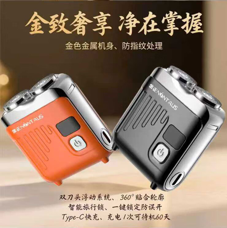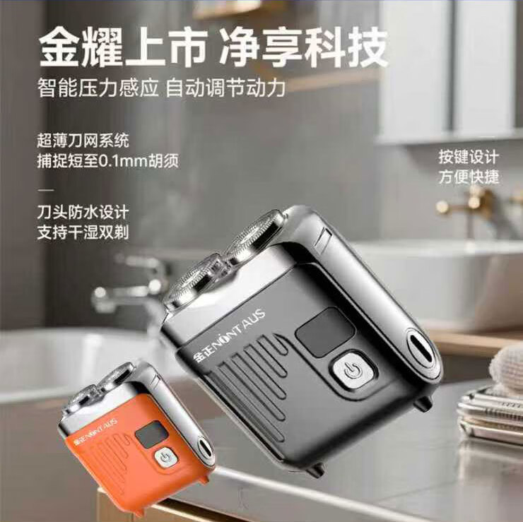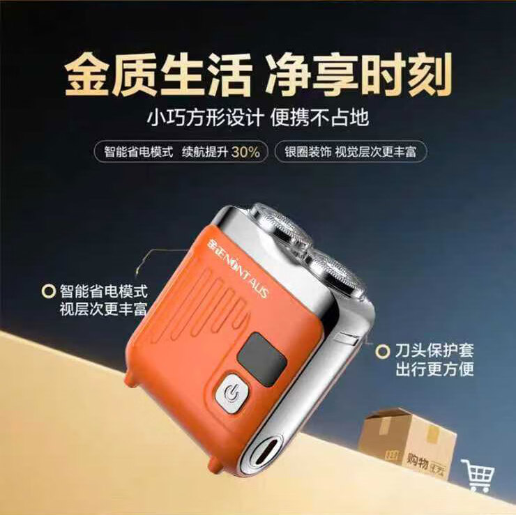 剃须刀便携式VCD电动刮胡刀充电可水洗胡须须刨刀男士送爸爸送男朋友教师节礼物 橙红