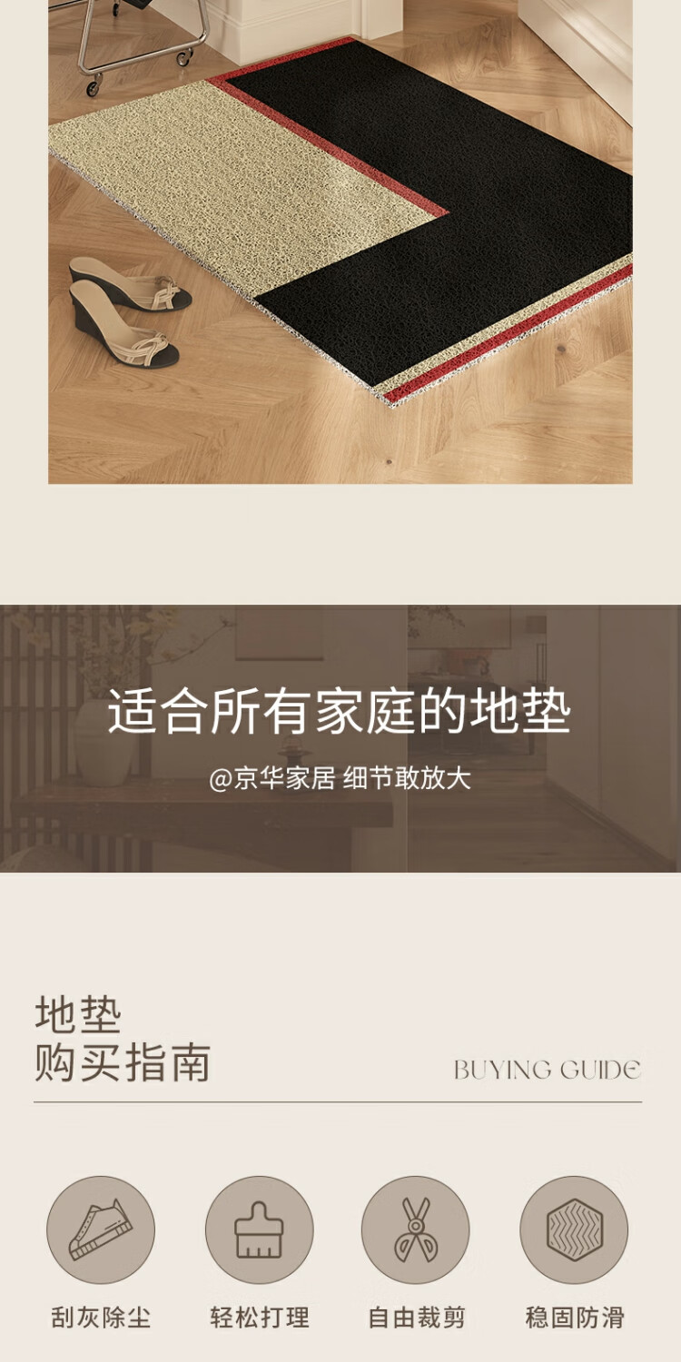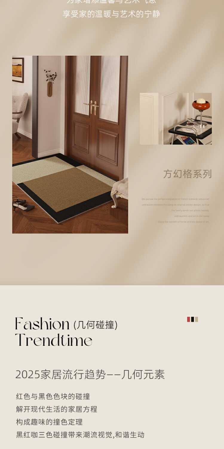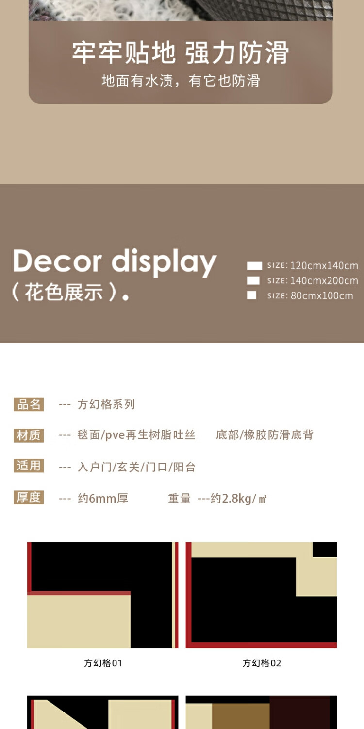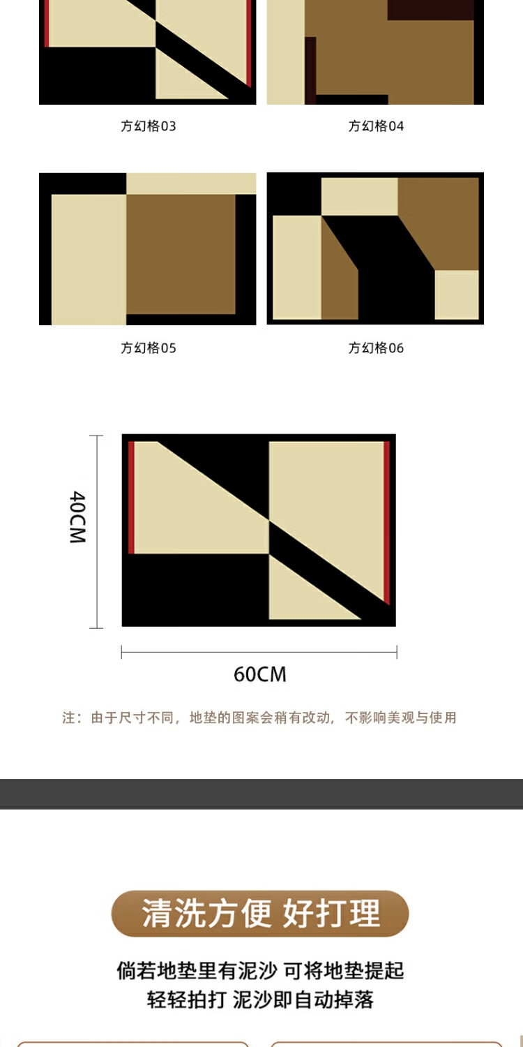 京华入户门地垫2025新款可擦洗防滑入门地毯进门门垫耐脏玄关丝圈脚垫 方幻格05人气最高 80cm*120cm 适合家庭
