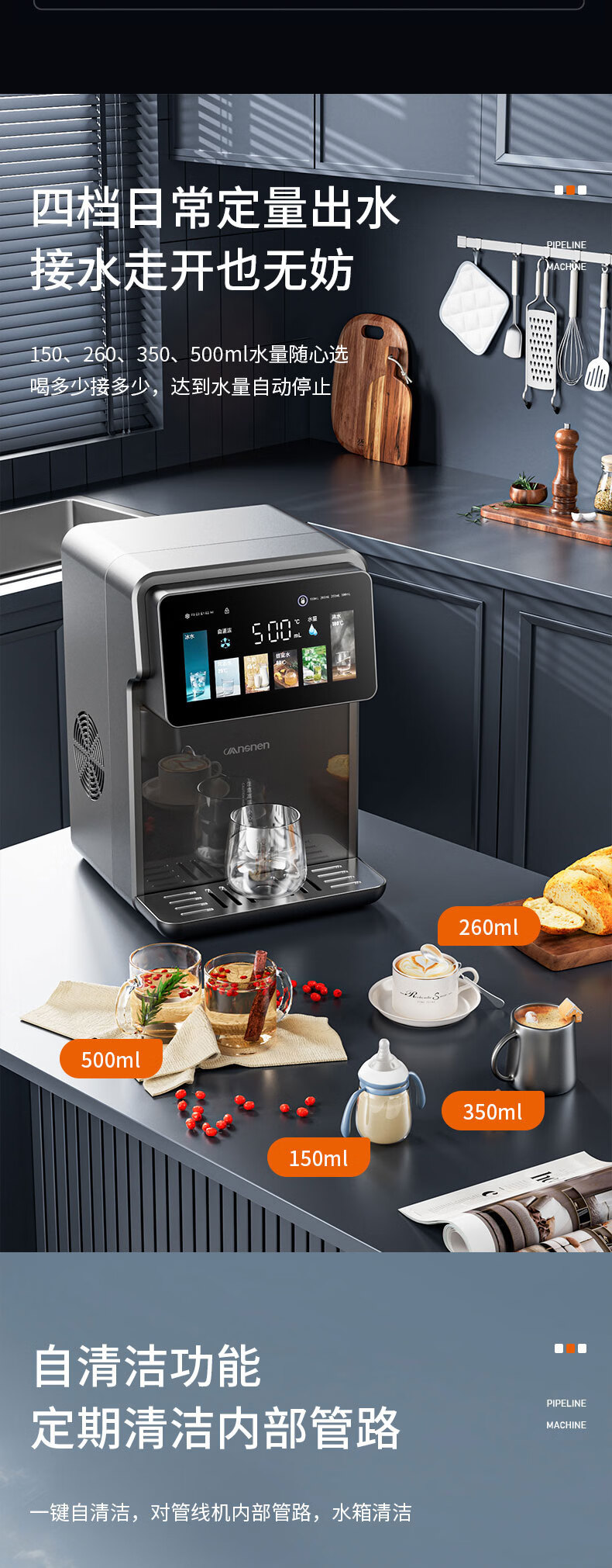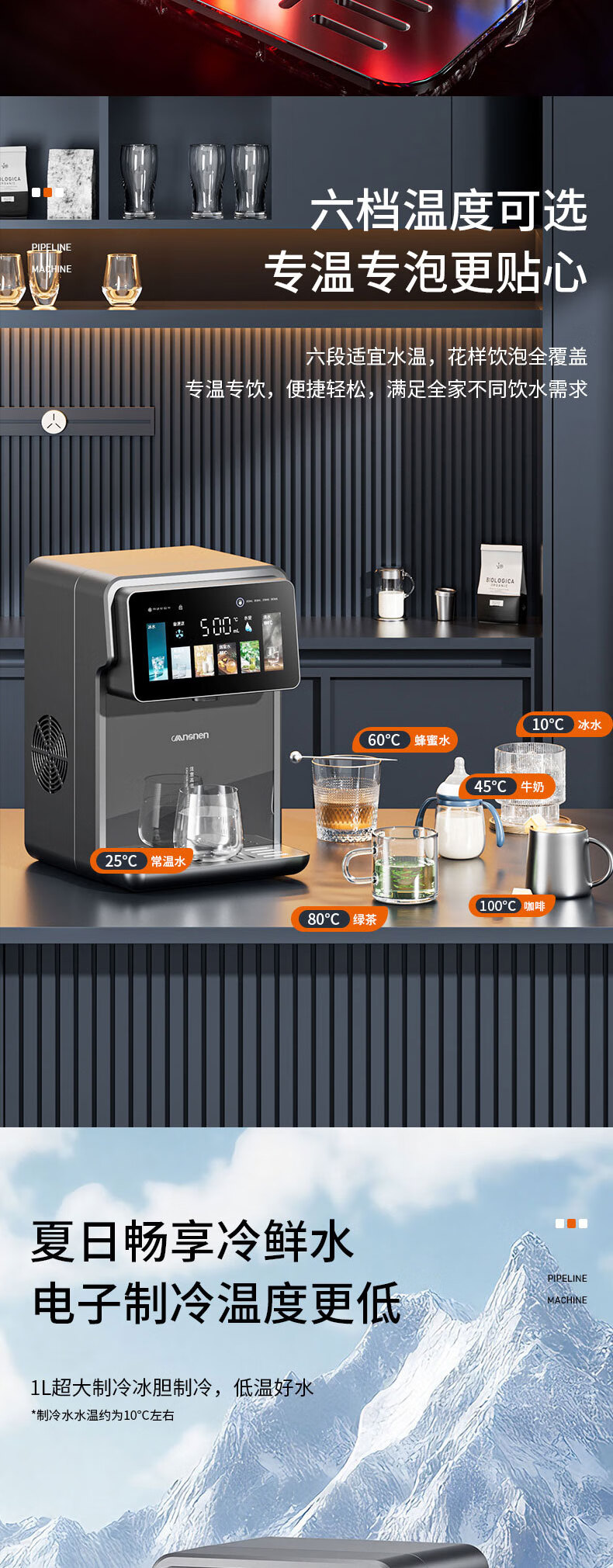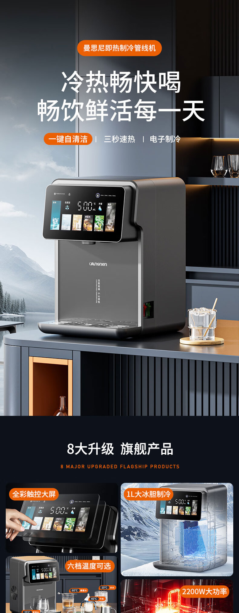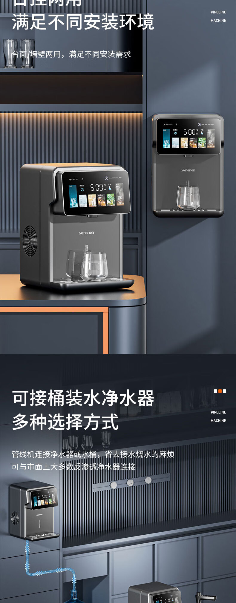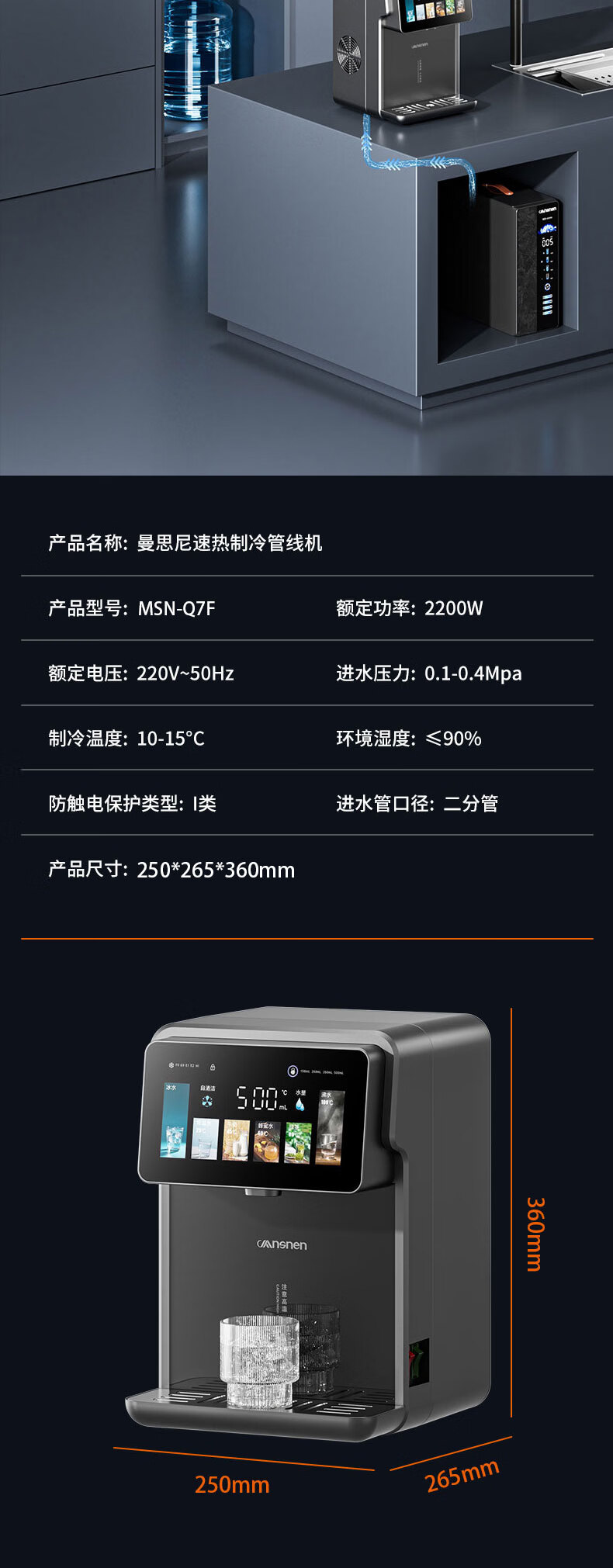 曼思尼管线机制冷制热一体 可连桶装水可连净水器 壁挂式台式两用自吸餐边柜直饮机智能线管机饮水机家用 Q7F-冷热款【可接桶装水/净水器】无水箱两用款