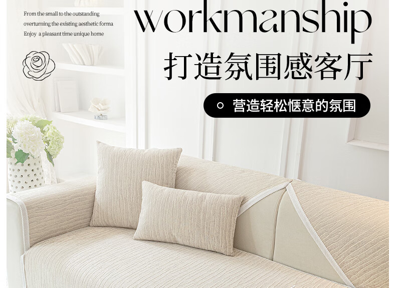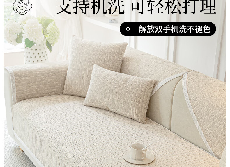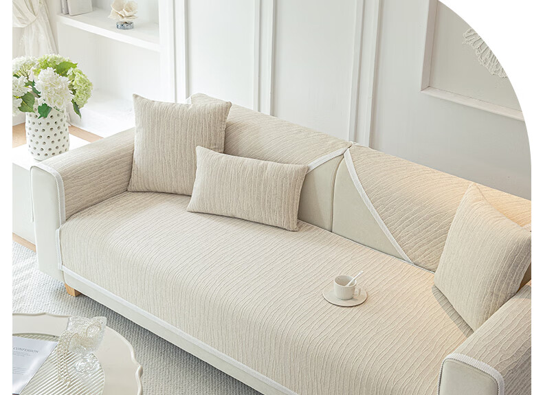 无印良品奶油风高级感沙发垫四季通用款沙发套垫2025新款固定防滑沙发盖布 悠影-米白【软糯雪尼尔 四季通用】 110X240 (大三人位/四人位)