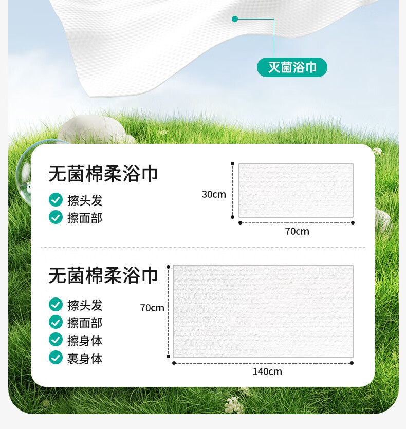蓓安适一次性浴巾加厚加大70*140【无菌级】珍珠纹旅行便携5包装