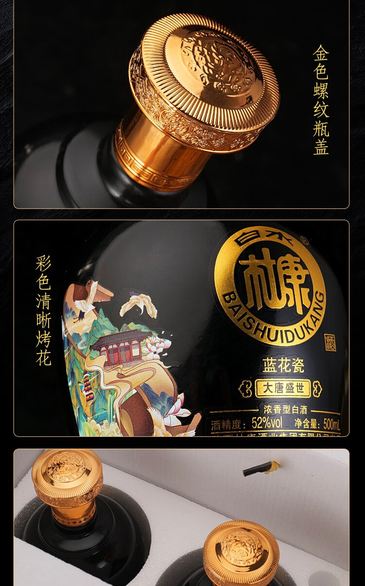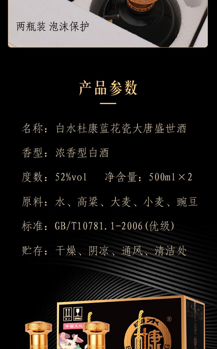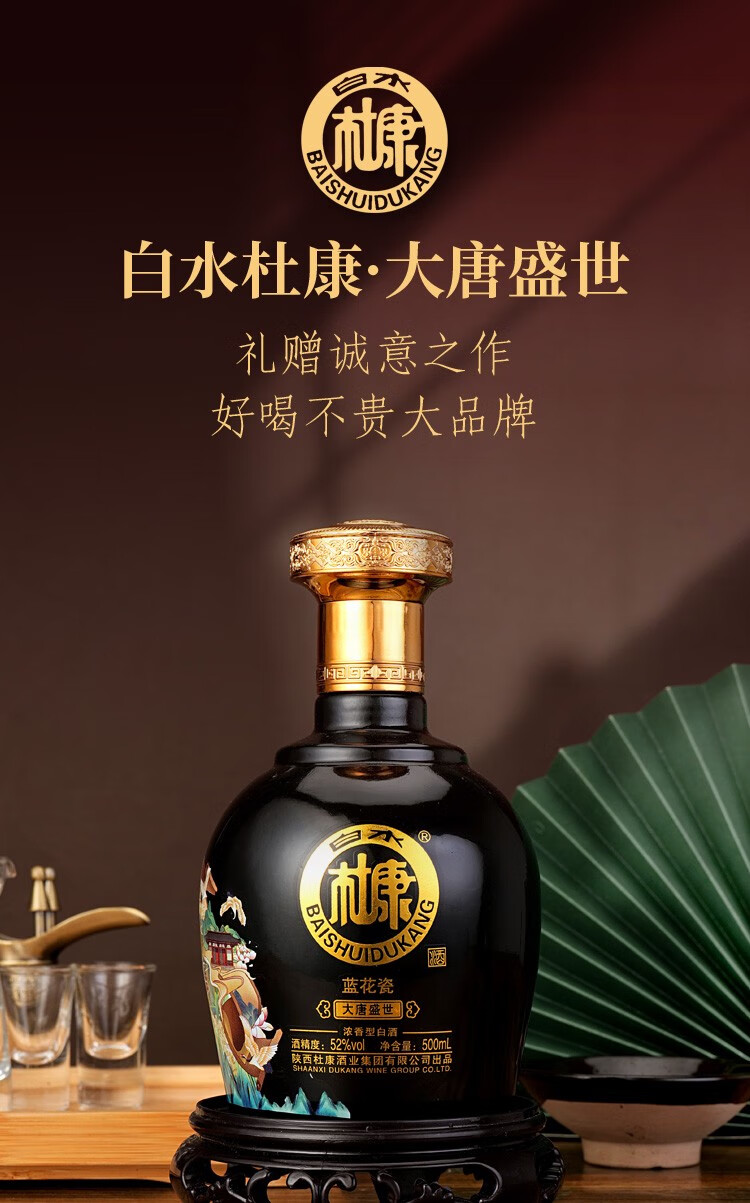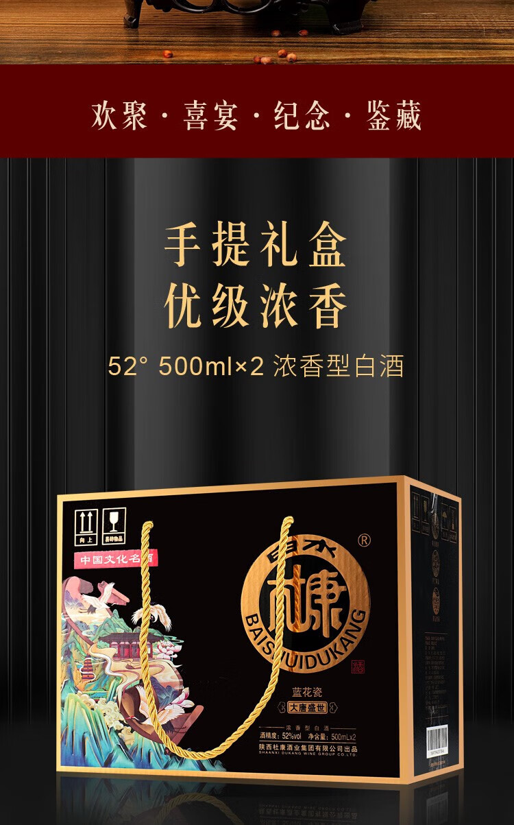 白水杜康(BAISHUIDUKANG)蓝花瓷大唐盛世52度整箱浓香型500ml*2瓶白酒宴请送礼酒 52度 500mL 2瓶 黑色