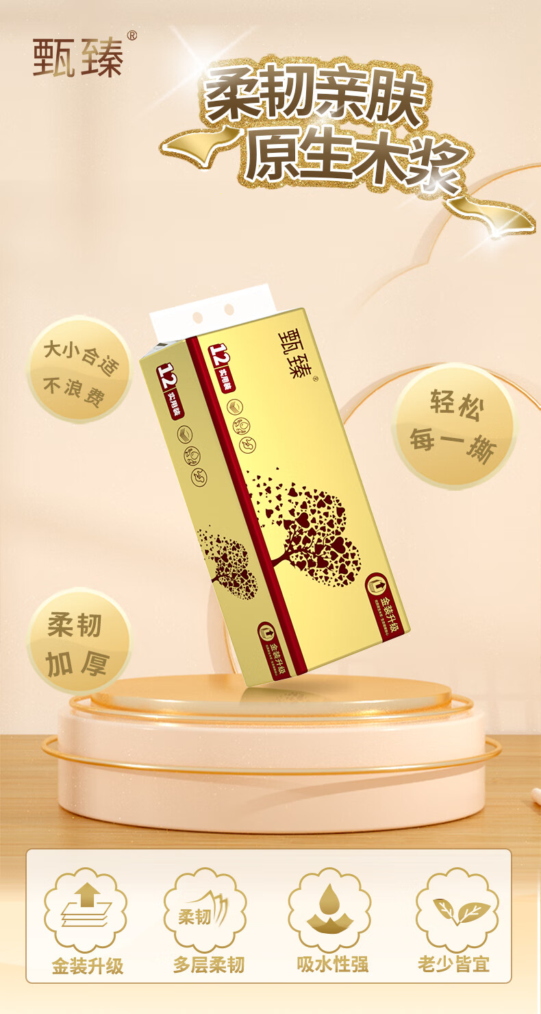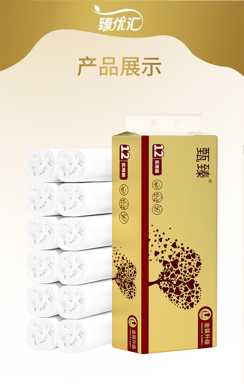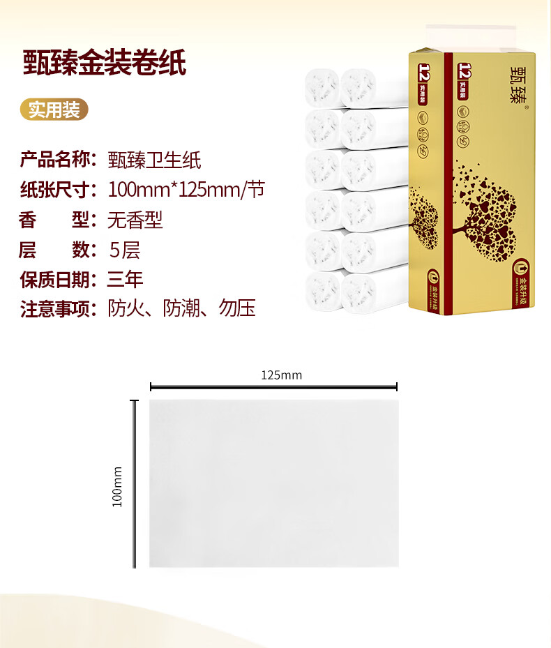 天微【现货直发】12卷卫生纸家用餐巾纸无芯卷筒纸厕所专用厕纸木浆卷 5层 20g*12卷 1提