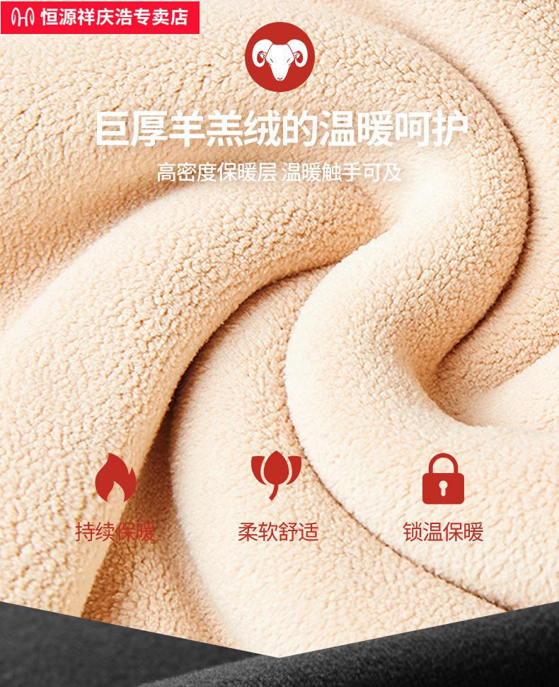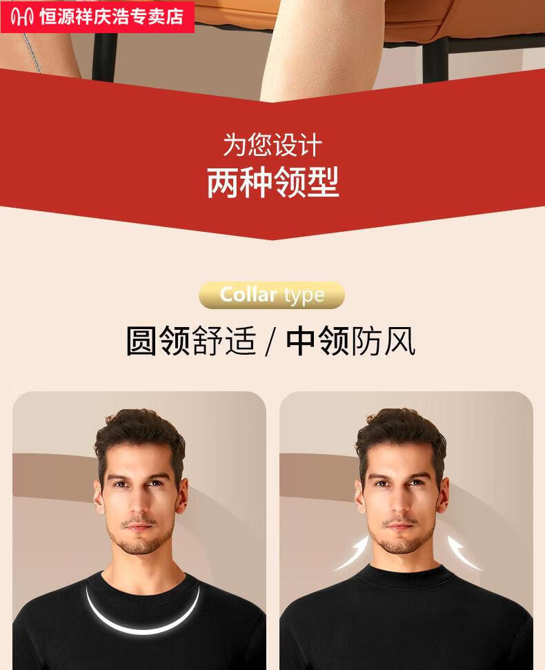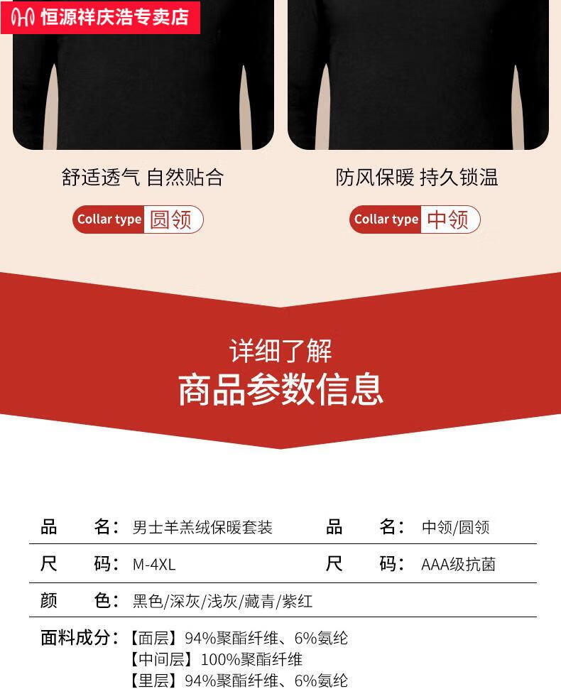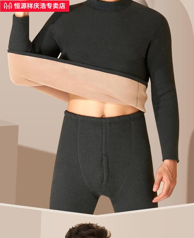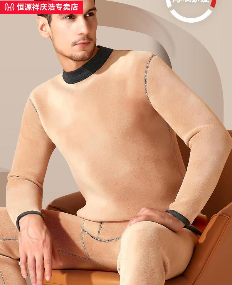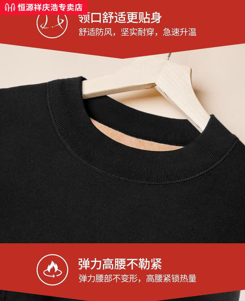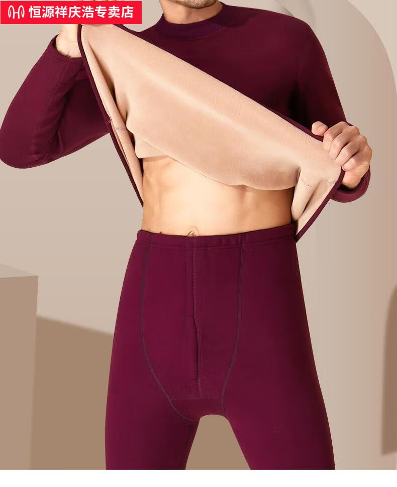 恒源祥男士保暖内衣加绒加厚冬季一套防寒羊羔绒高领秋衣秋裤套装 巨厚-大红中高领 4XL (190)