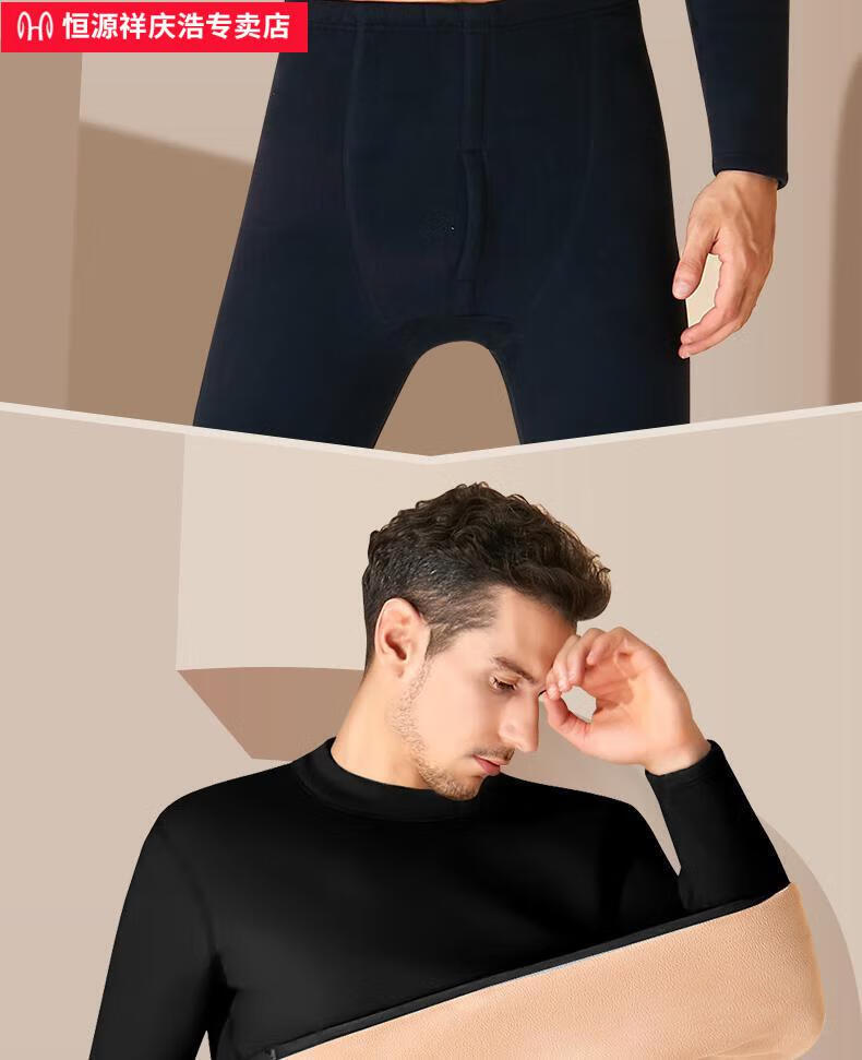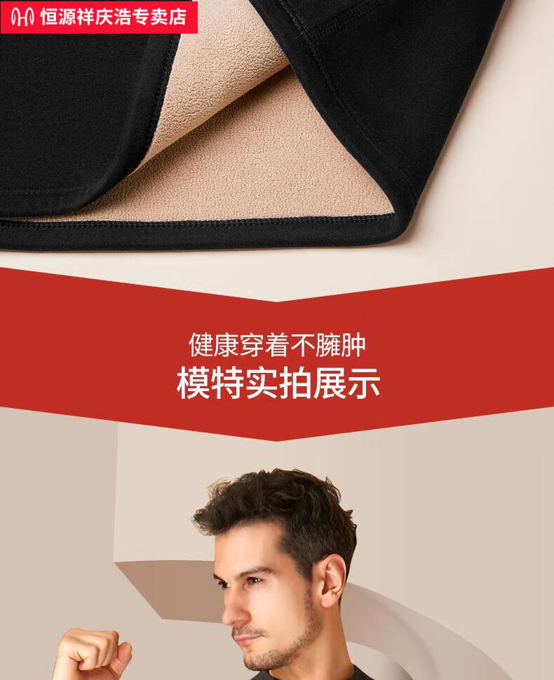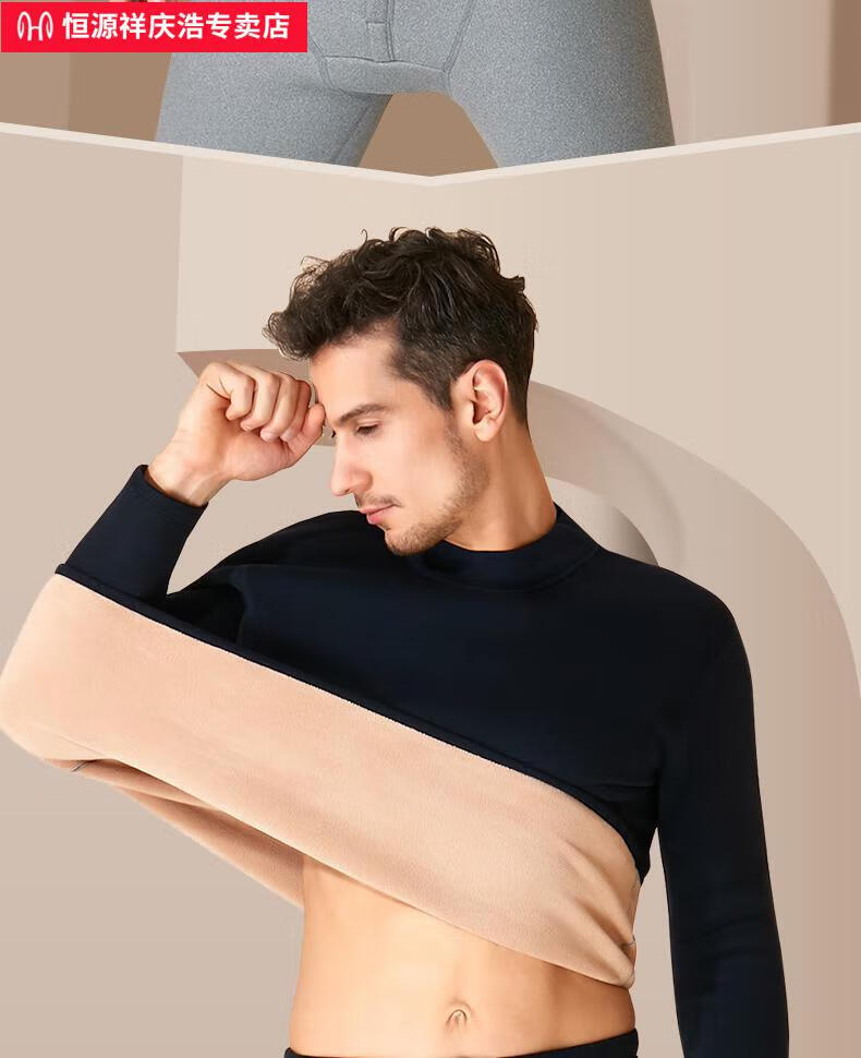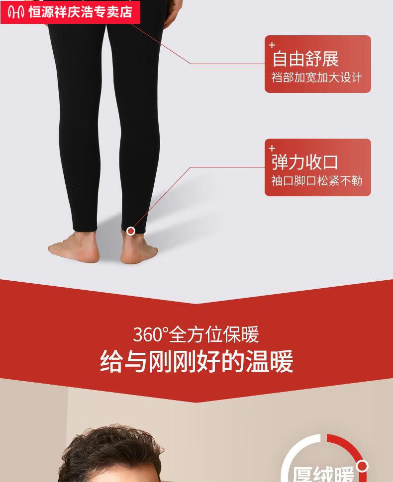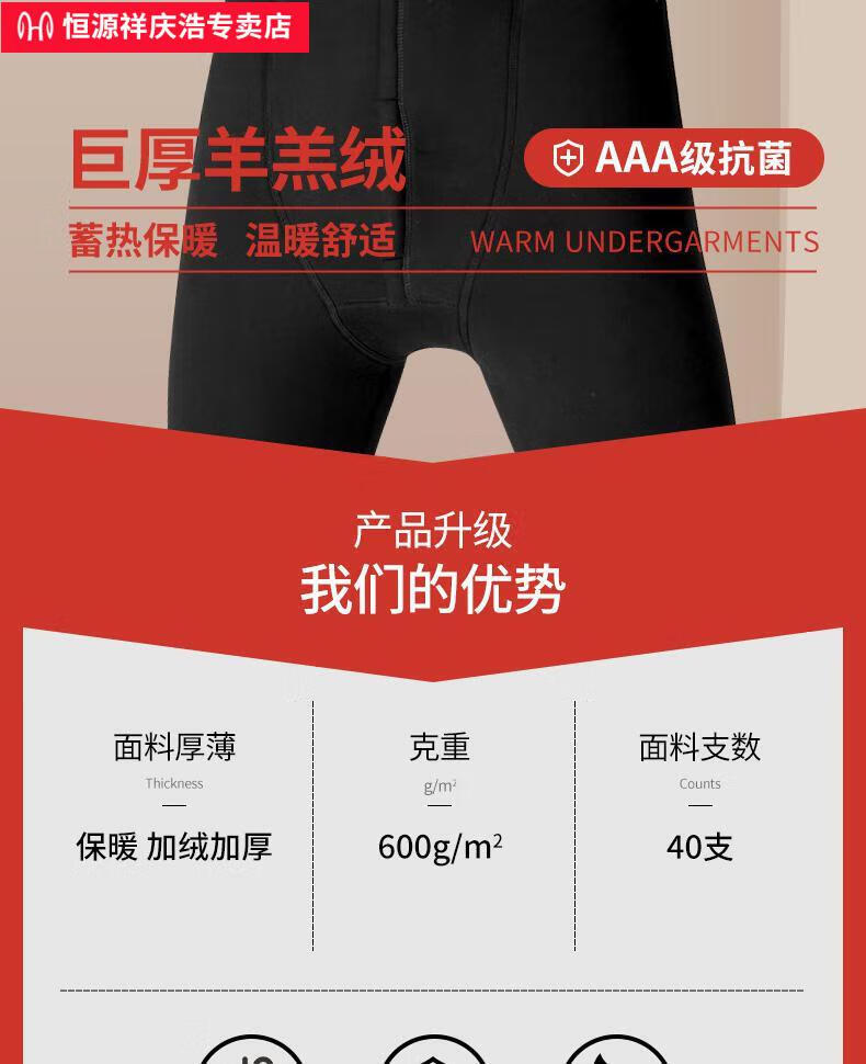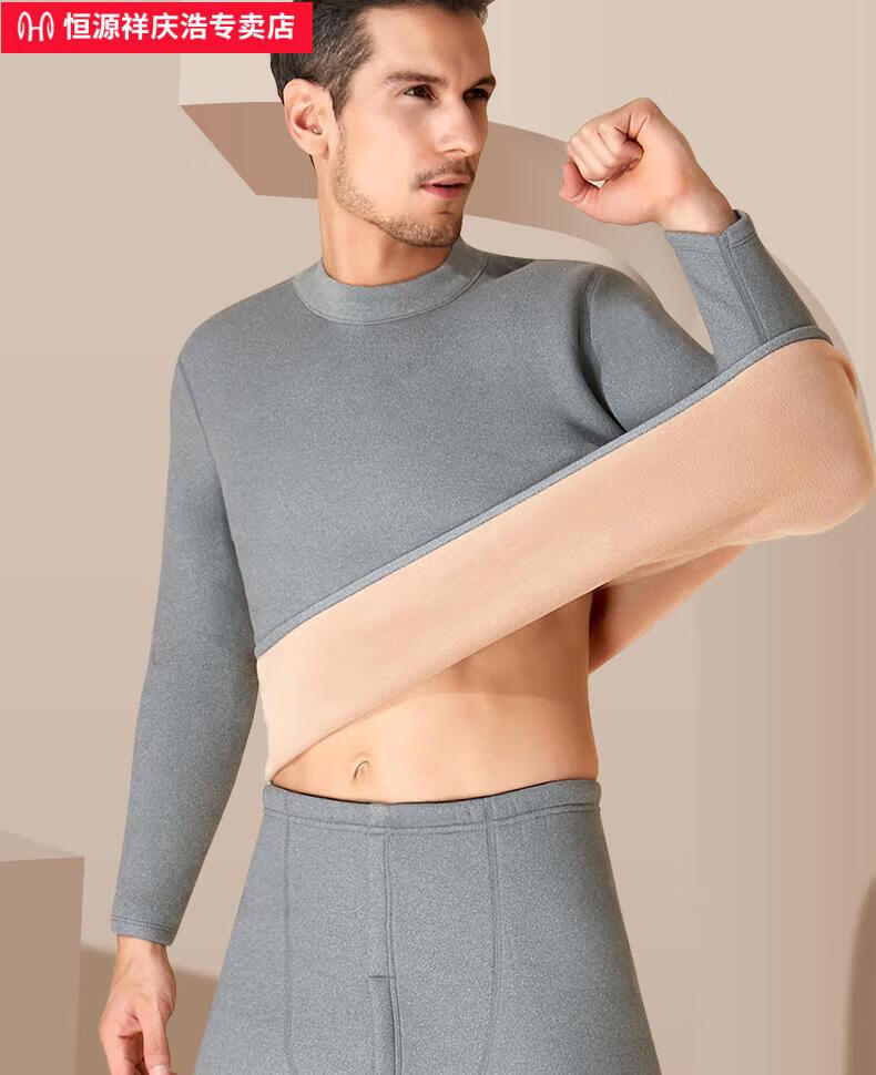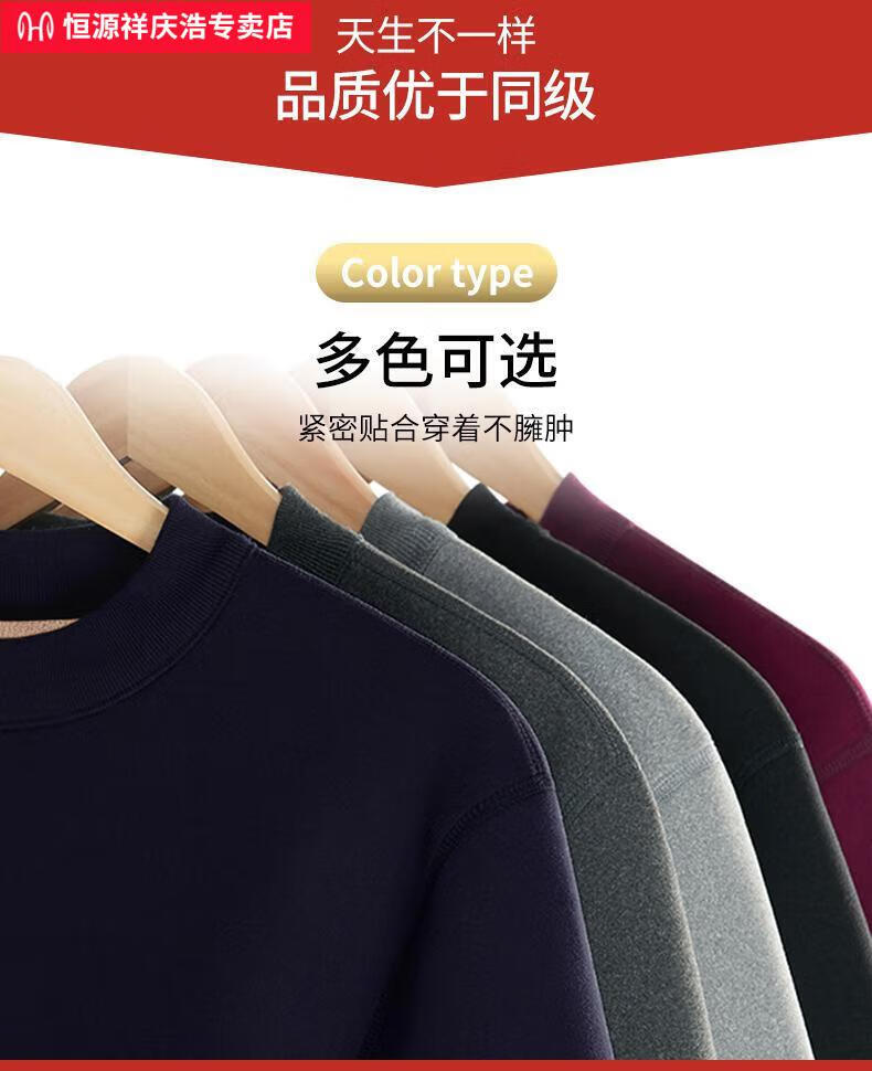 恒源祥男士保暖内衣加绒加厚冬季一套防寒羊羔绒高领秋衣秋裤套装 巨厚-大红中高领 4XL (190)