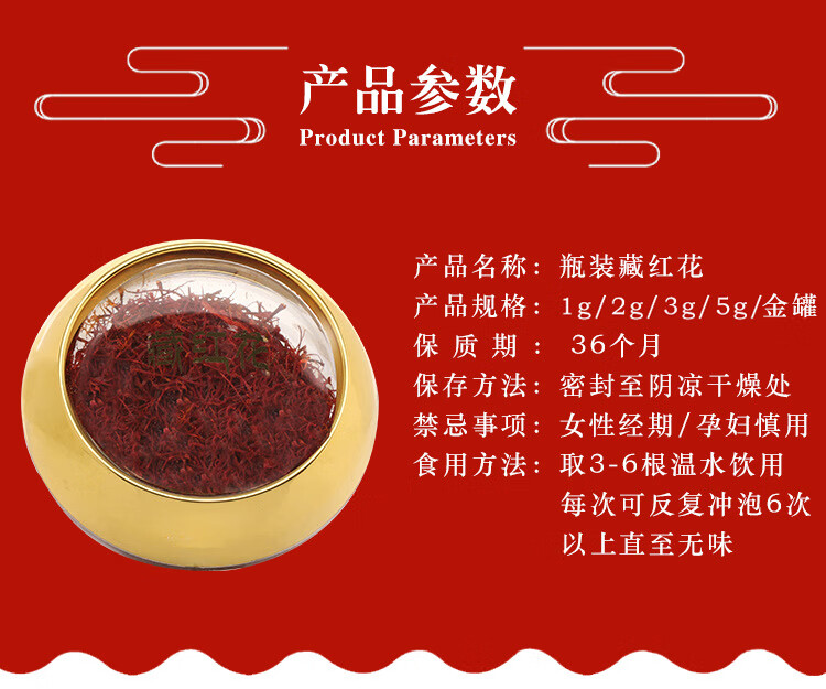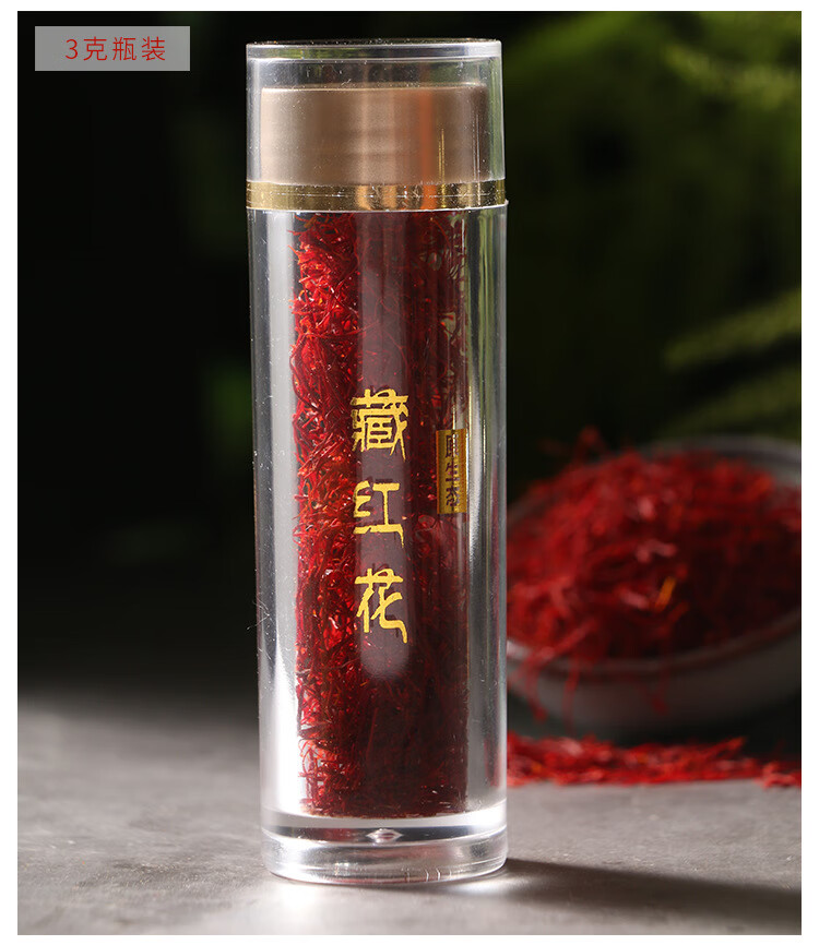 祁【厂家直供】藏红花泡水红花西红花瓶装藏红花女生礼品藏红花礼盒 亚克力罐0.3g