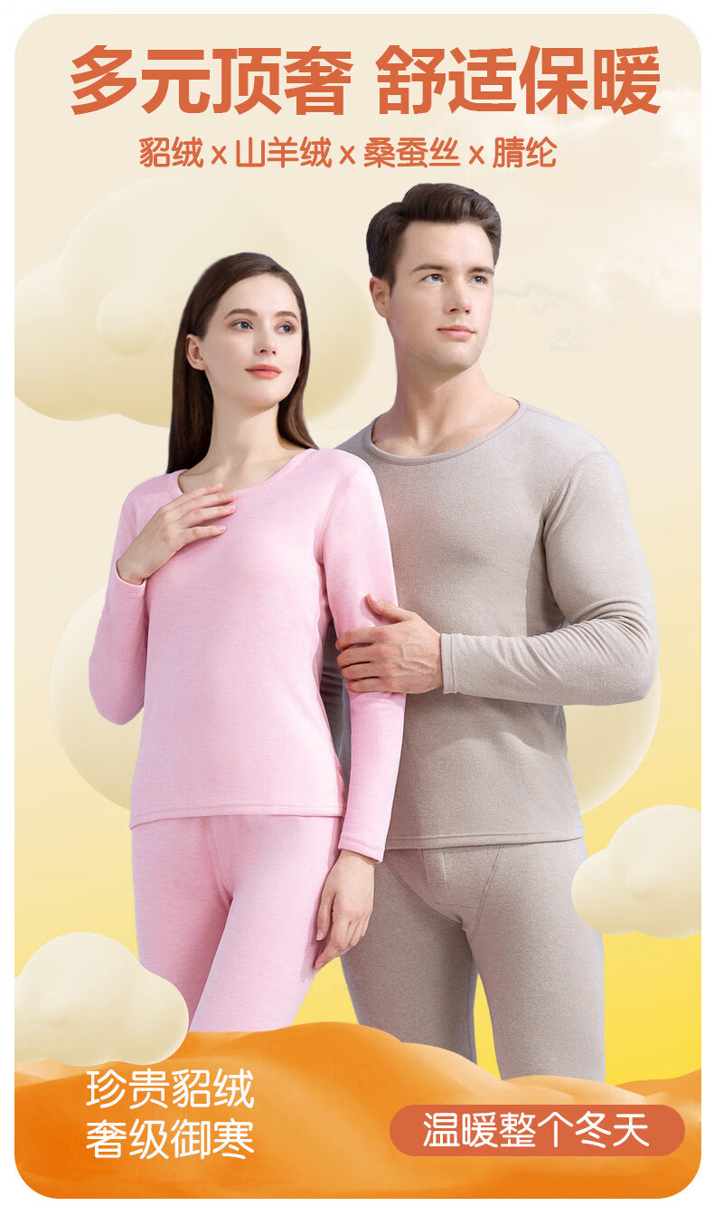 雅鹿保暖内衣套装男女貂绒蚕丝秋衣秋裤情侣款修身内秋冬打底秋衣秋裤 黑色【女士貂绒套装】 L