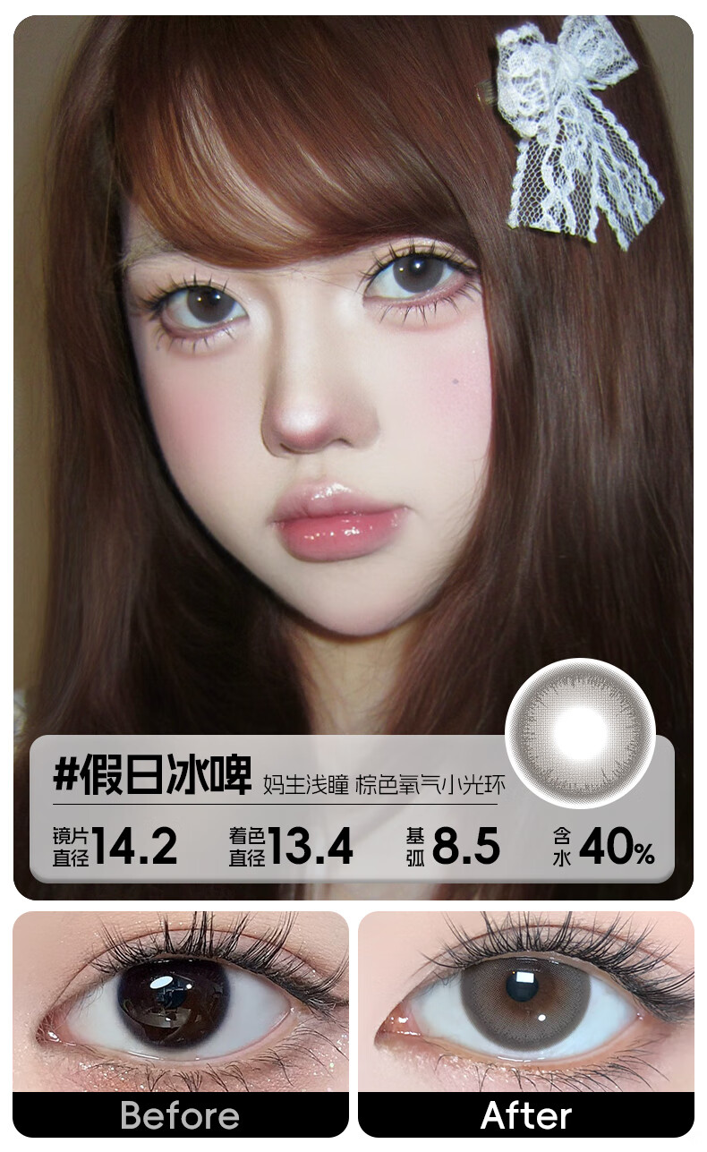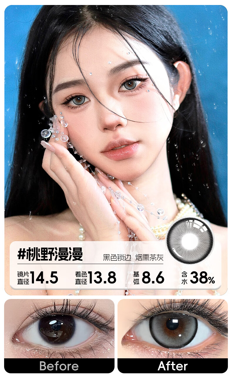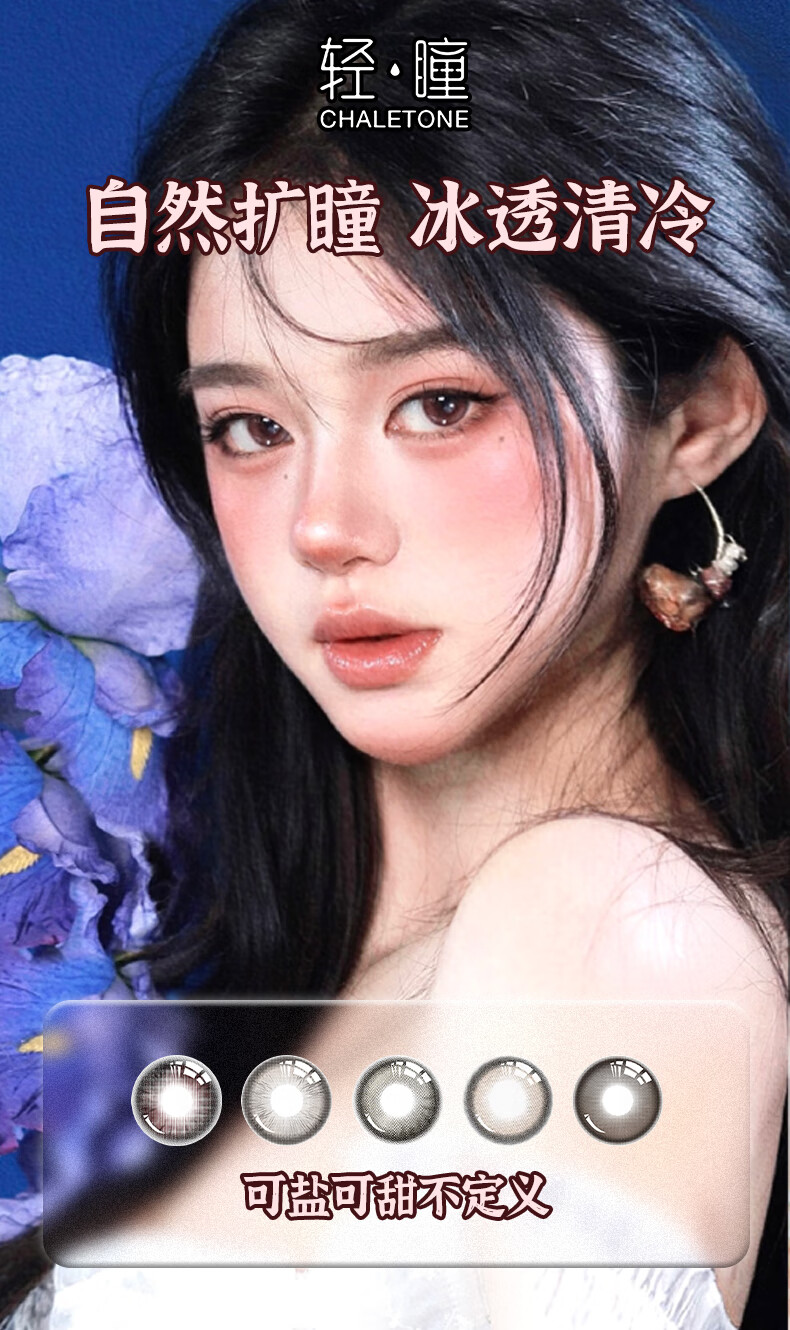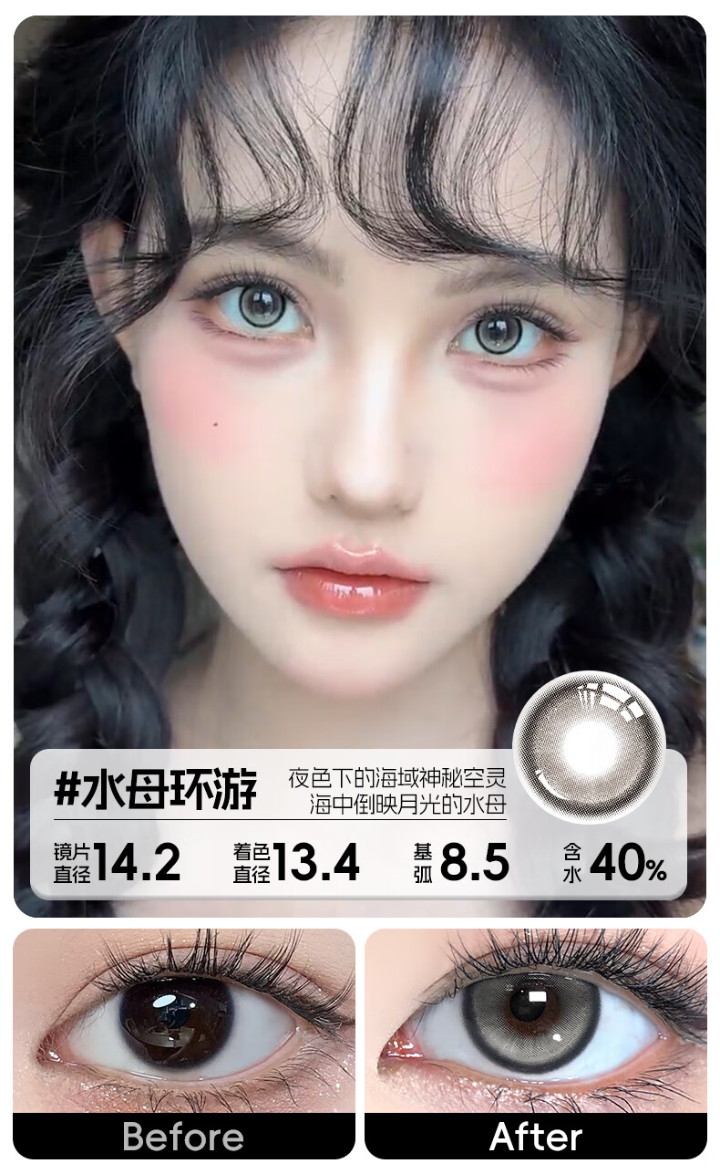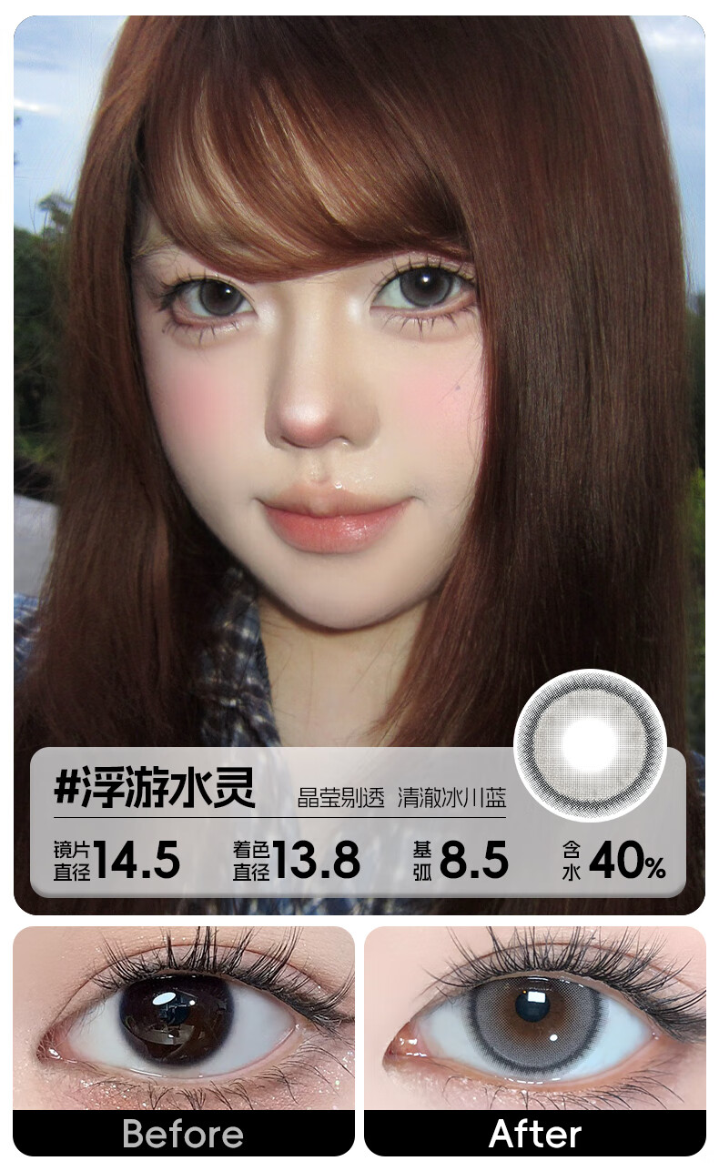 轻瞳美瞳含硅月抛2片长抛期自然百搭通勤日常大小直径彩色隐形眼镜 【浮游水灵】显白水光感镜面高光-月抛2片 125度