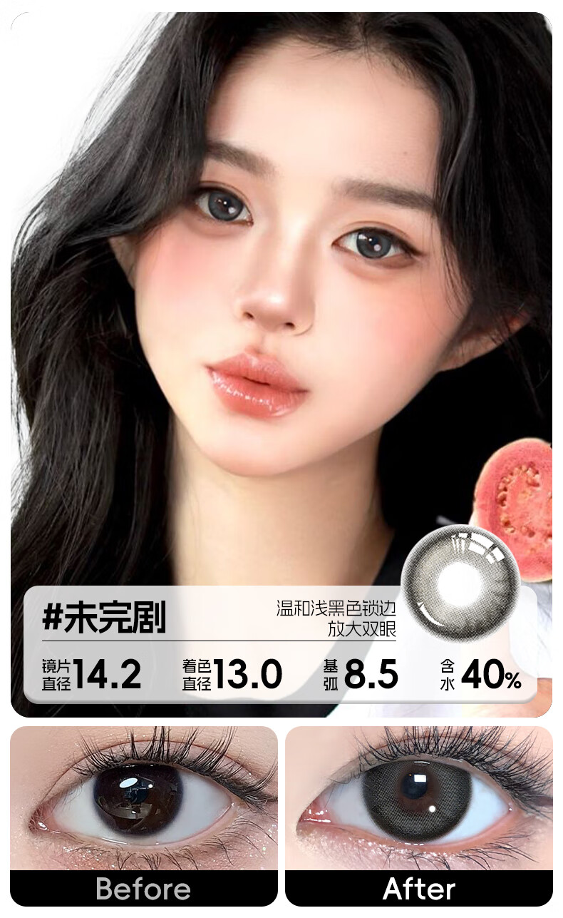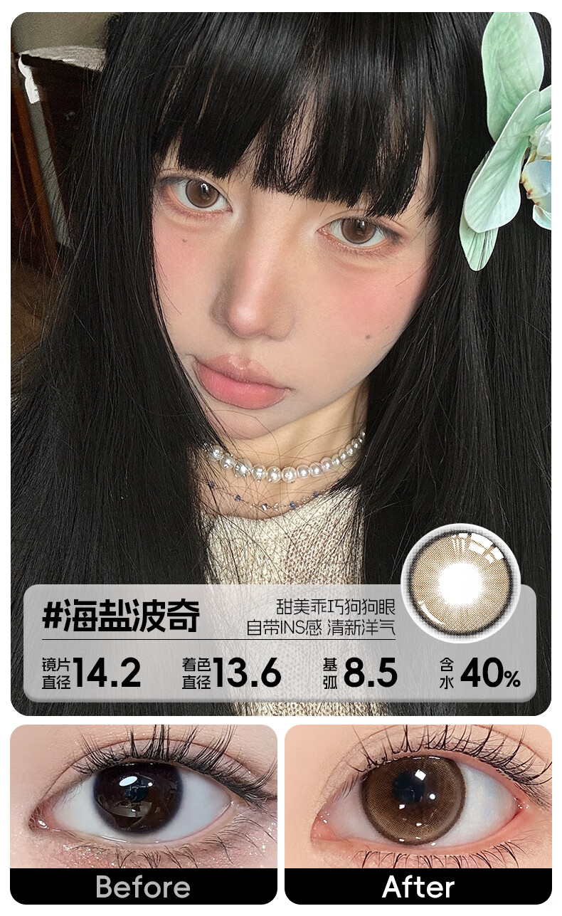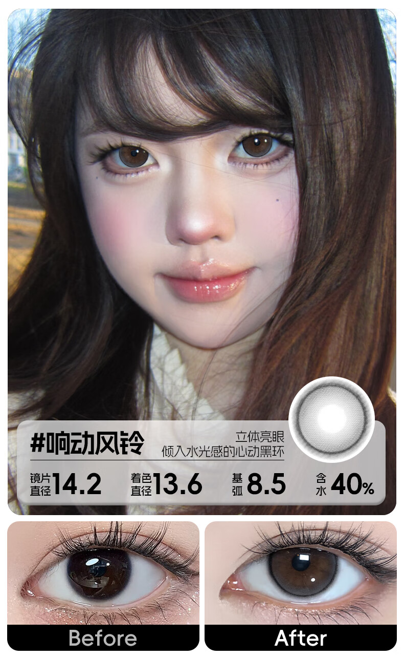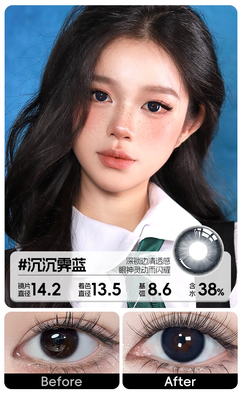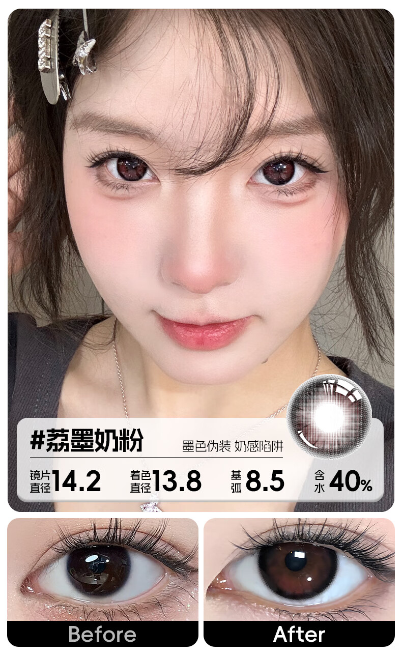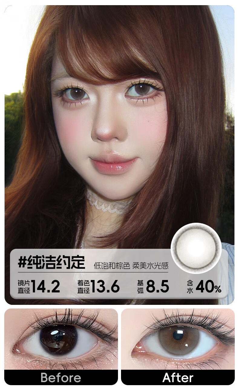 轻瞳美瞳含硅月抛2片长抛期自然百搭通勤日常大小直径彩色隐形眼镜 【浮游水灵】显白水光感镜面高光-月抛2片 125度