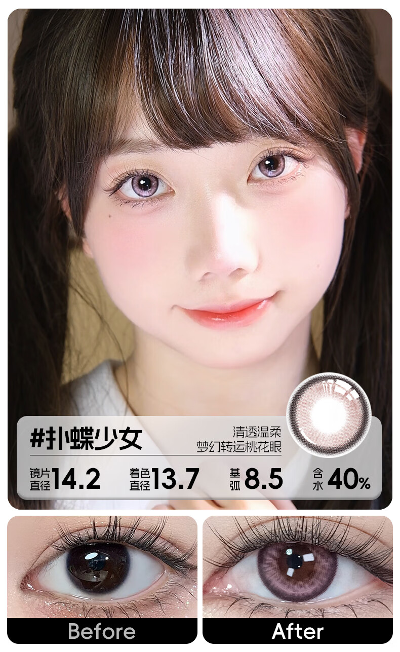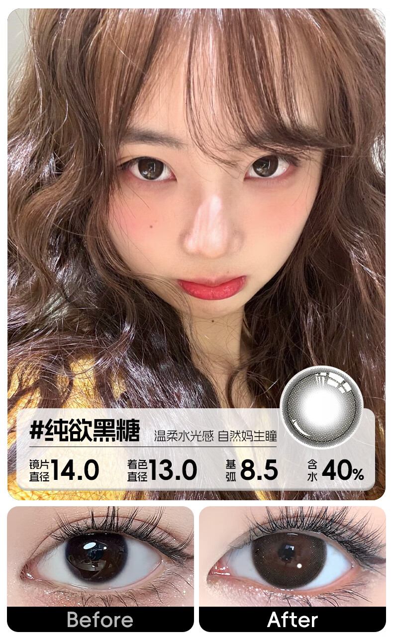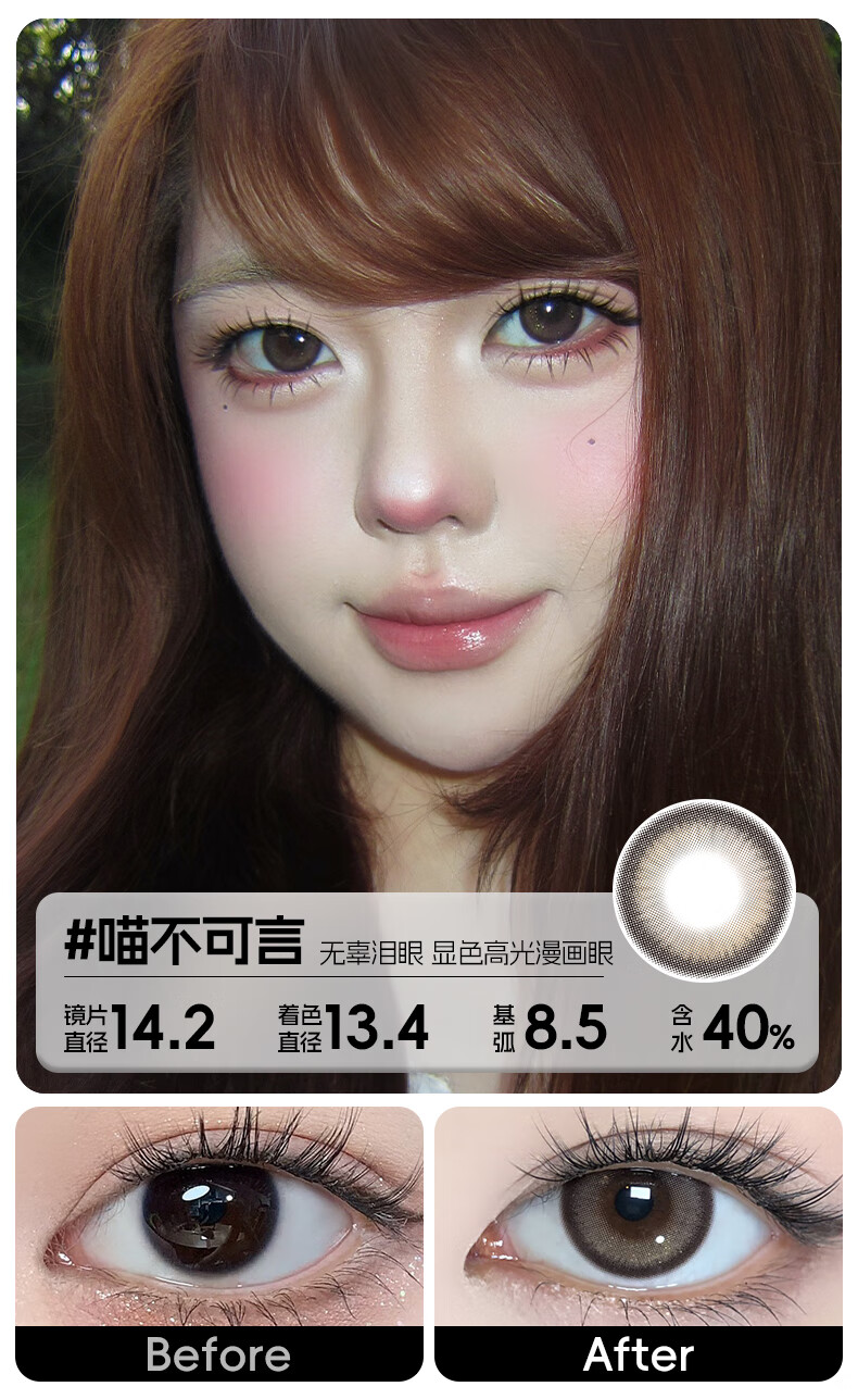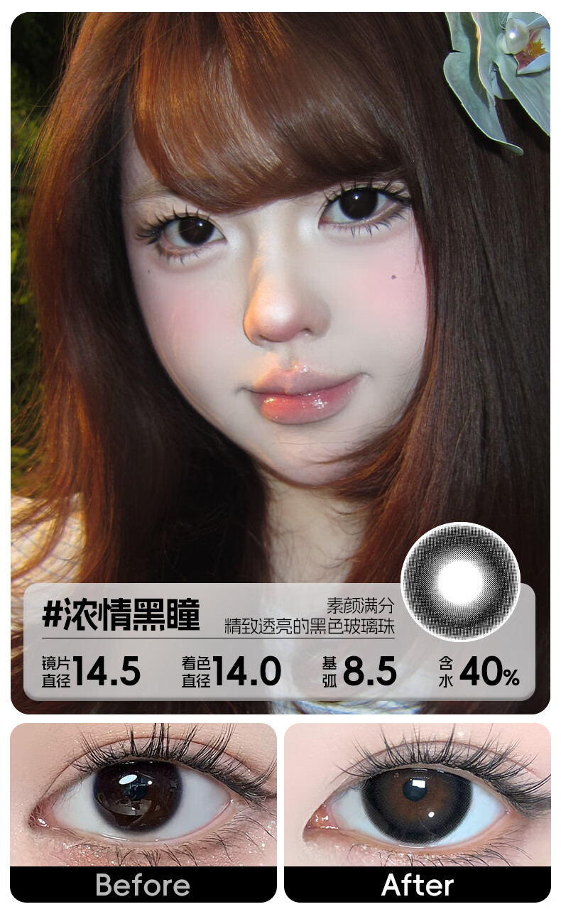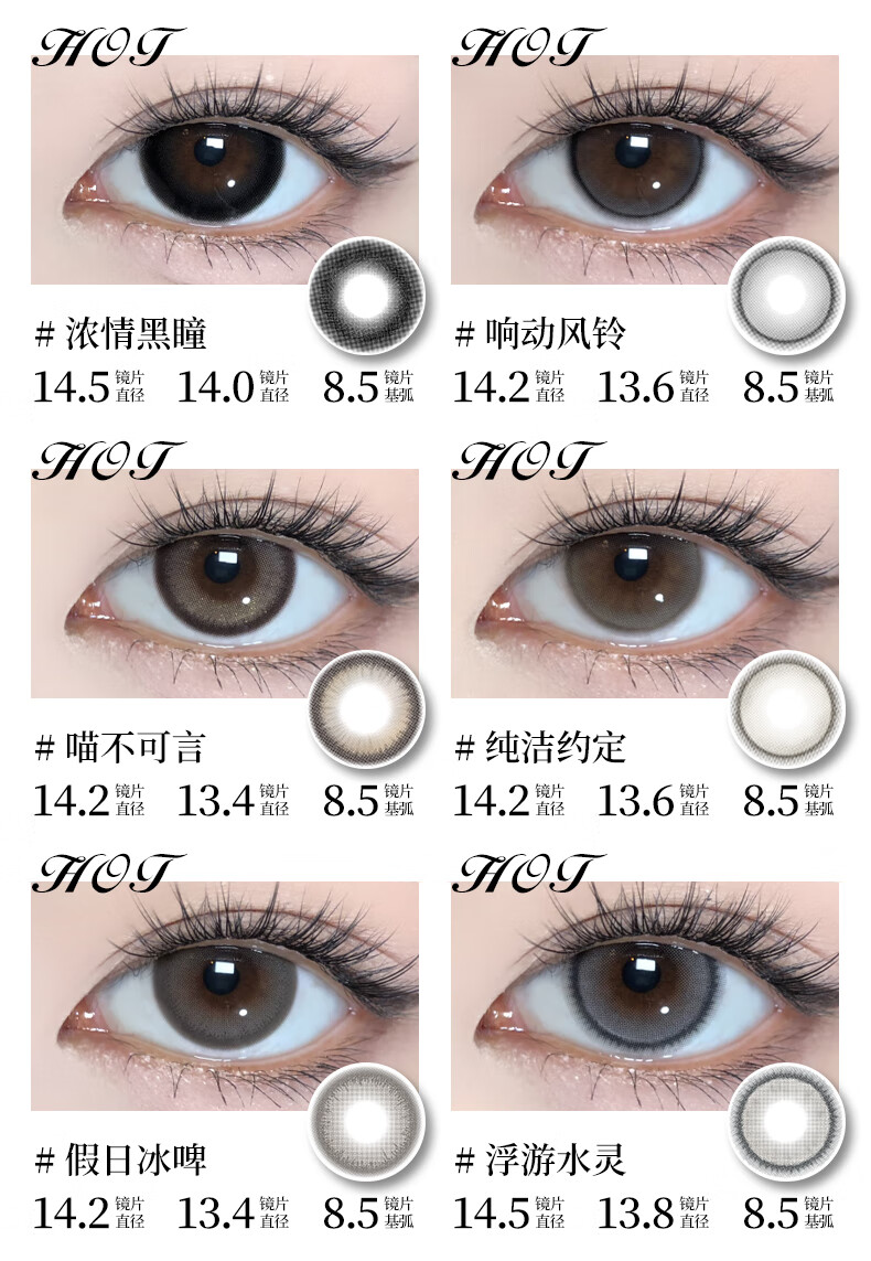 轻瞳美瞳含硅月抛2片长抛期自然百搭通勤日常大小直径彩色隐形眼镜 【浮游水灵】显白水光感镜面高光-月抛2片 125度