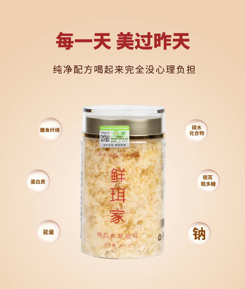 鲜珥家本草银耳金罐免洗免煮焖泡即食银耳羹古田雪糯银耳节日礼物 【有机银耳礼盒】80克2罐+焖烧杯+伴侣