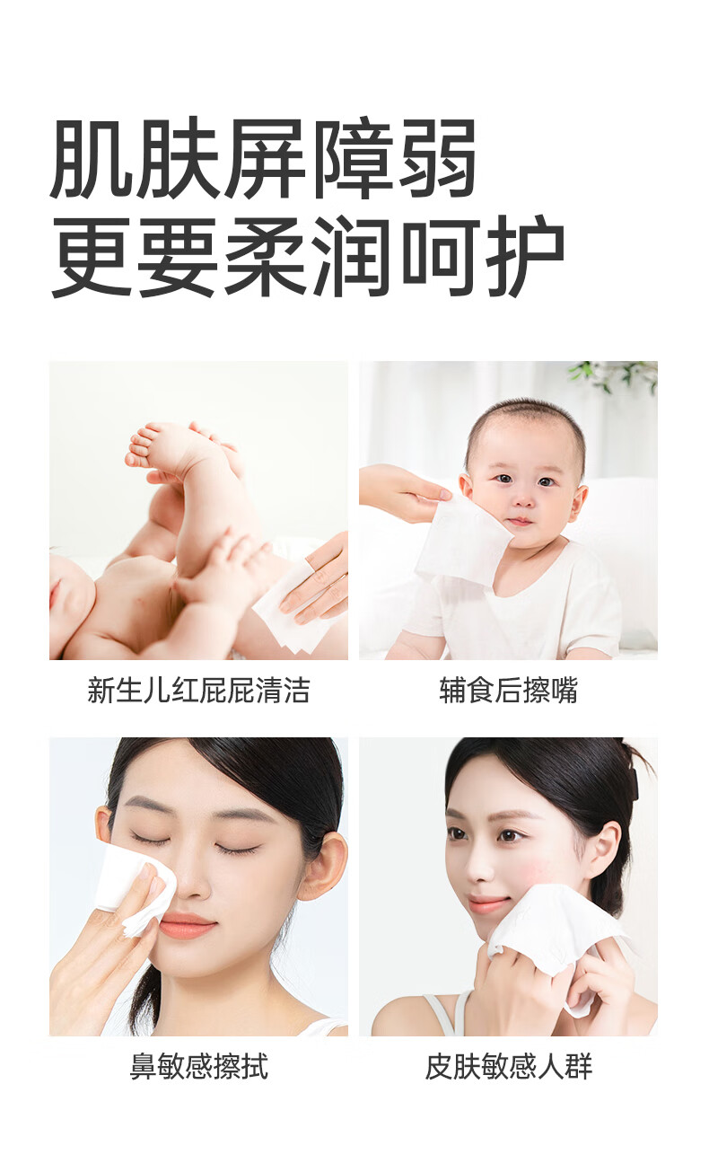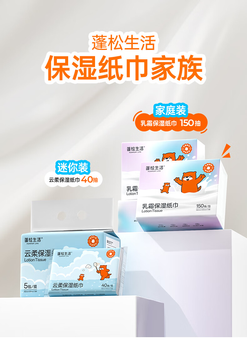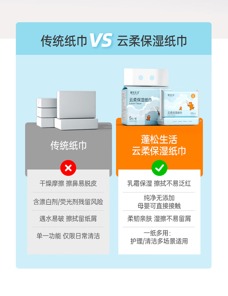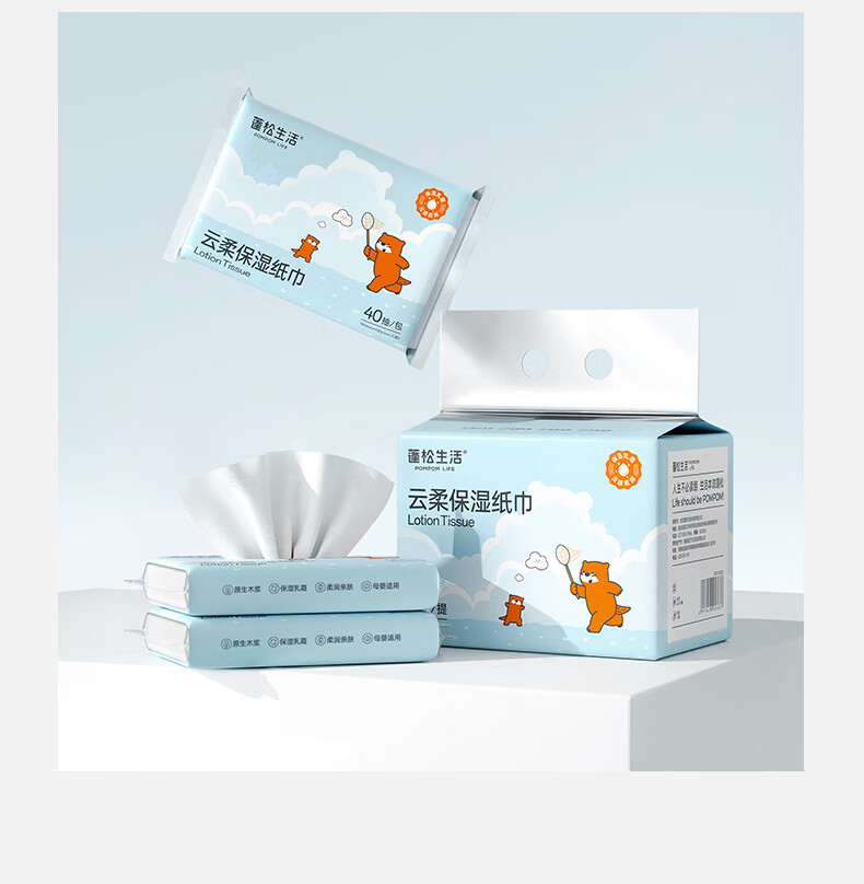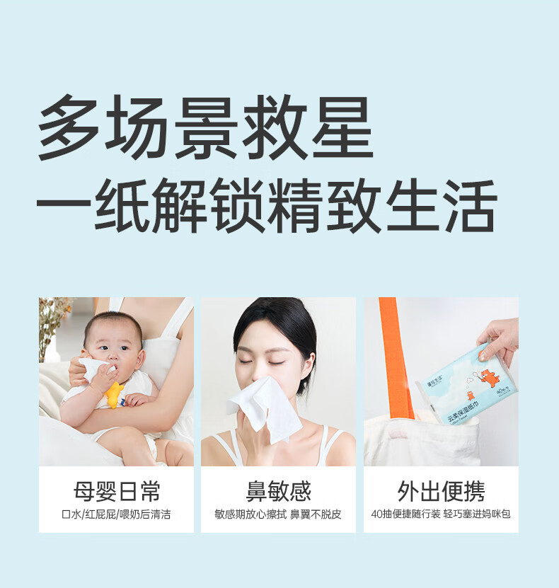 蓬松生活婴幼儿专用亲肤宝宝手口云柔巾 保湿乳霜纸便携抽纸 清洁3层压花 3层 40抽*20包