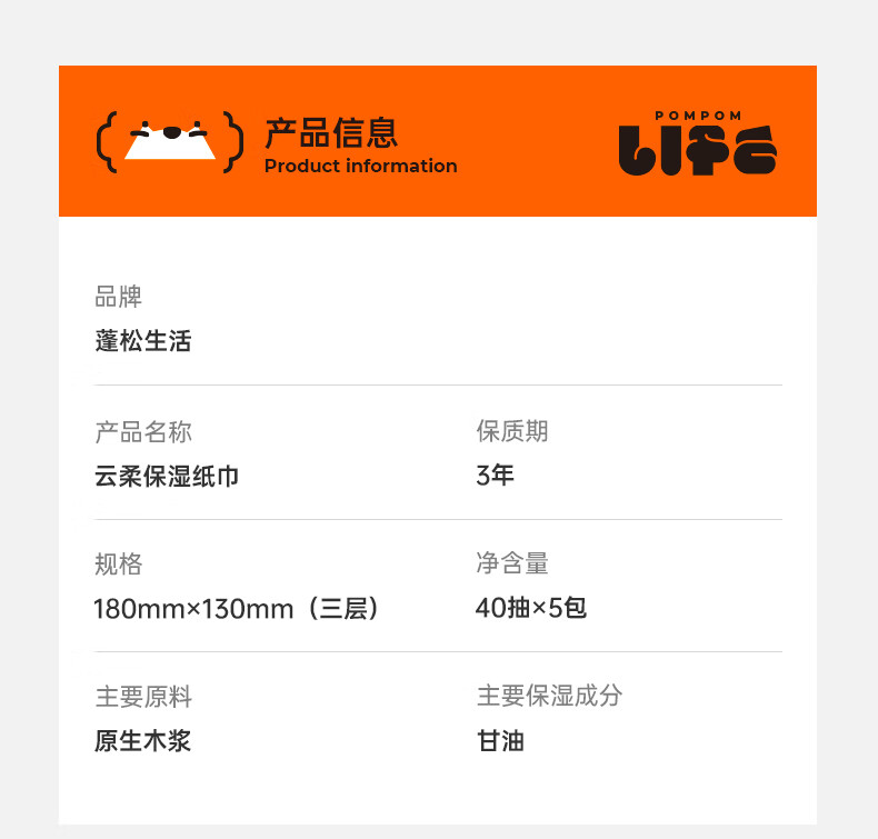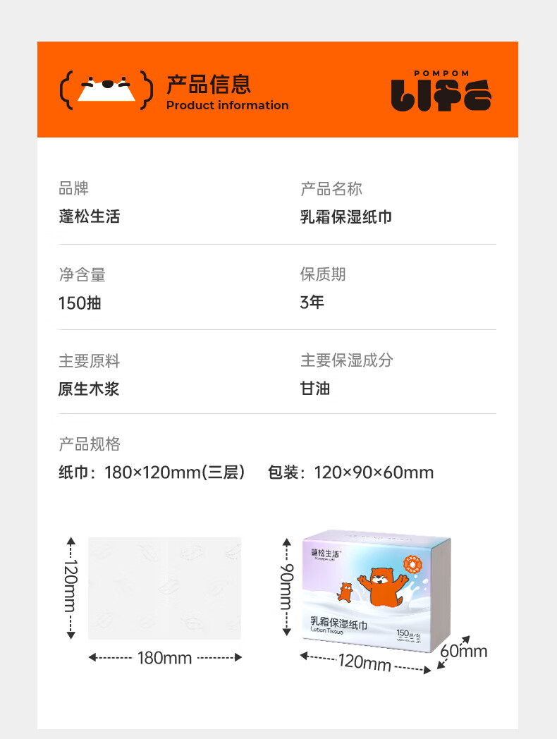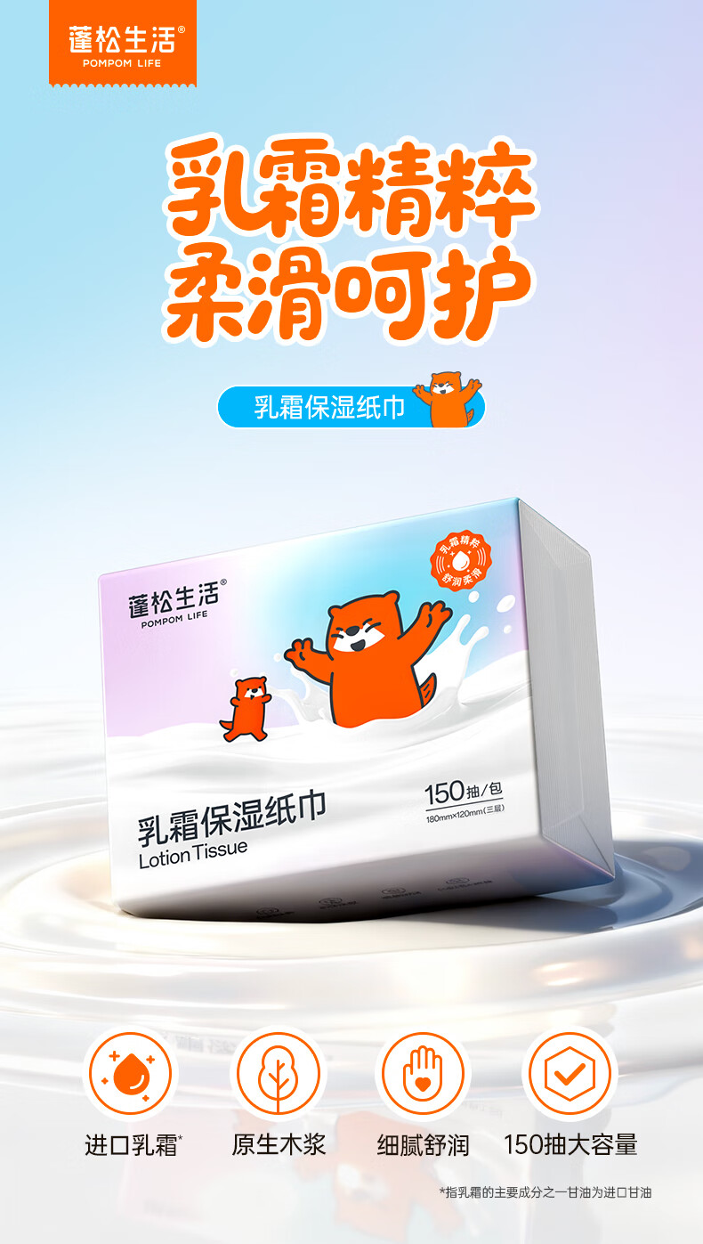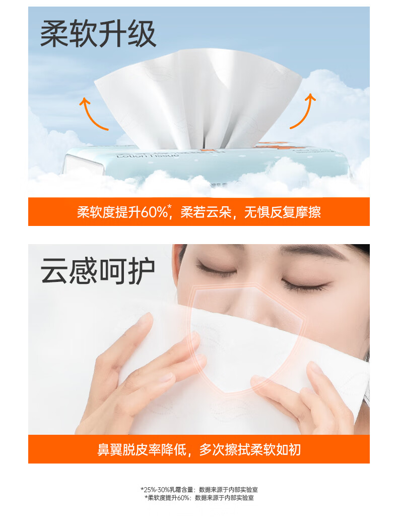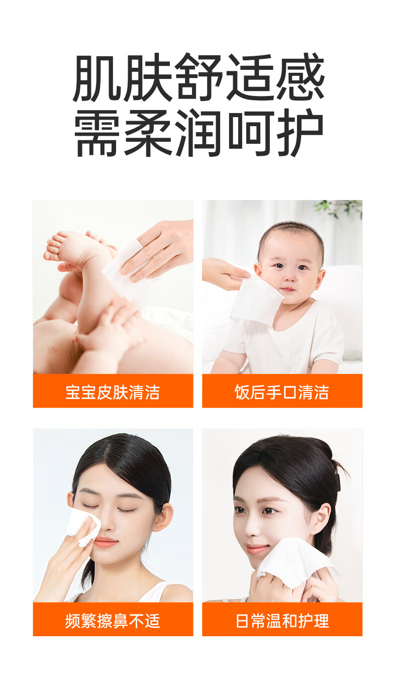 蓬松生活婴幼儿专用亲肤宝宝手口云柔巾 保湿乳霜纸便携抽纸 清洁3层压花 3层 40抽*20包