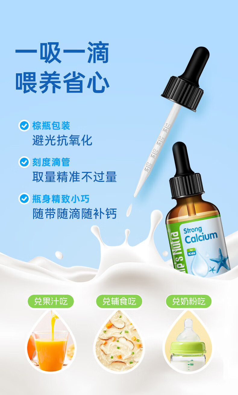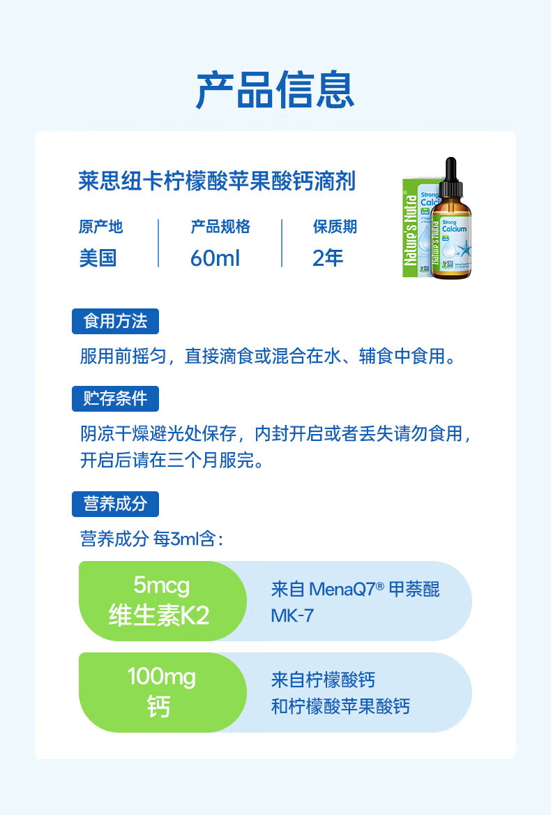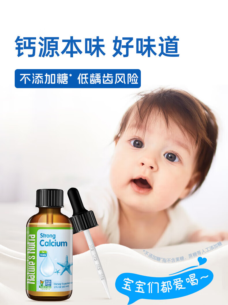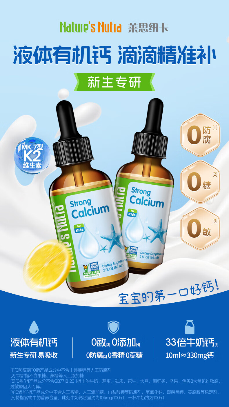 Nature's Nutra莱思纽卡婴幼儿童补钙有机柠檬酸液体钙铁锌口服液 60ml *2瓶婴幼儿儿童钙滴剂(两瓶囤货)