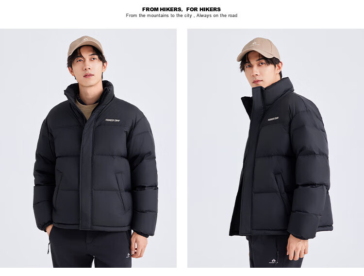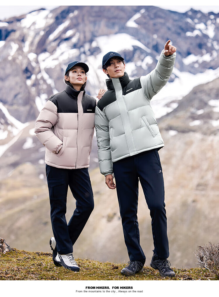 拓路者冬季立领羽绒服男女情侣款短款加厚防寒保暖上衣 浅卡其-女 M