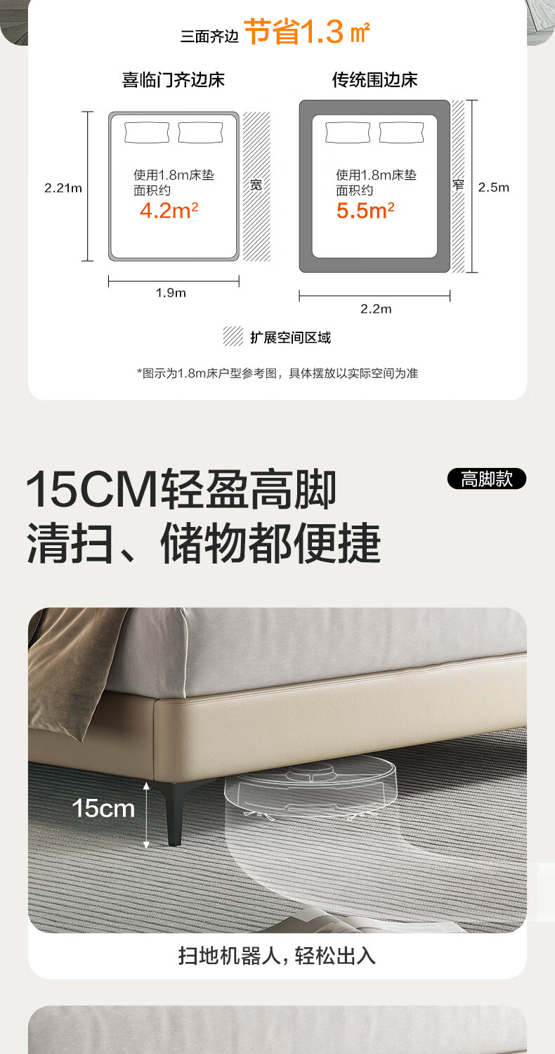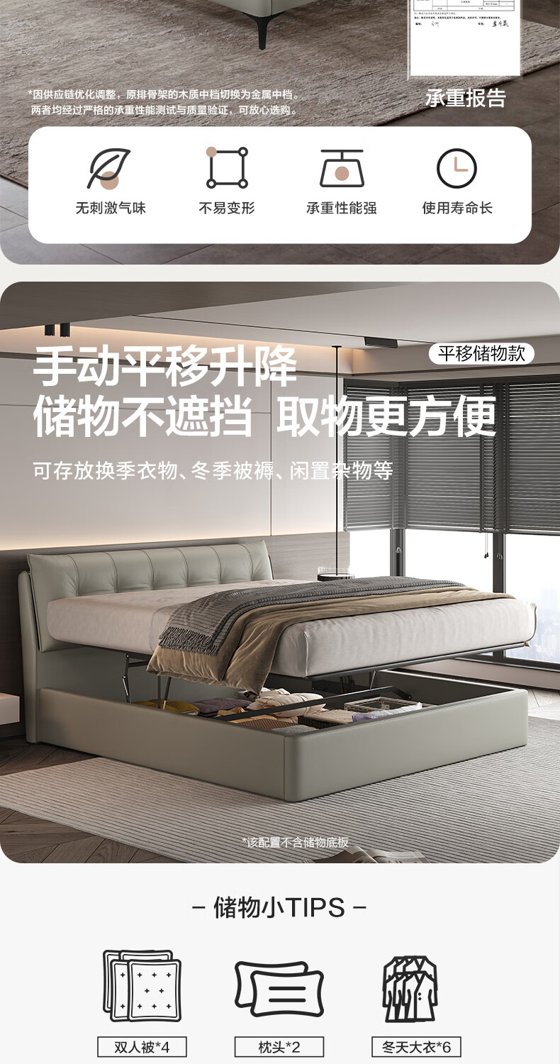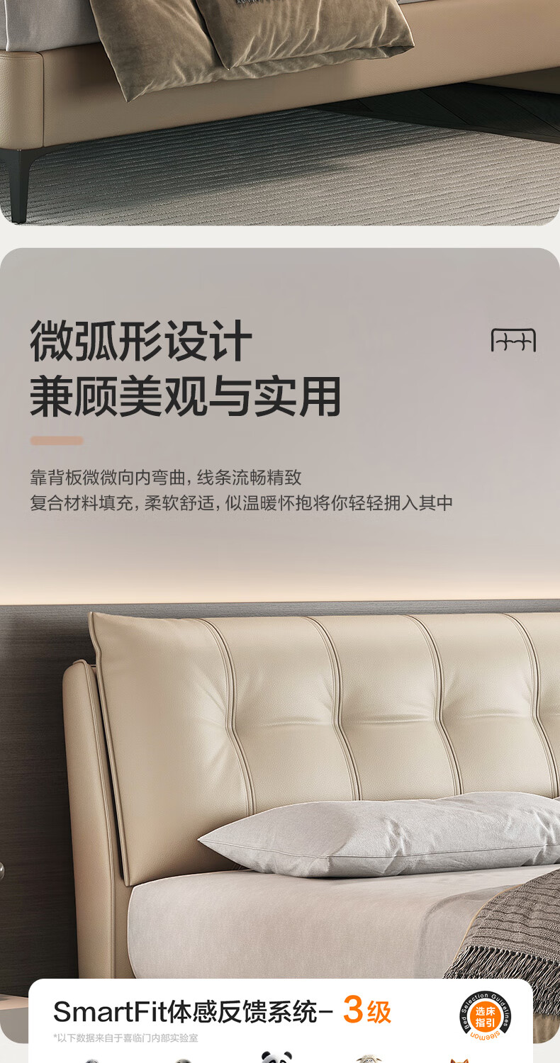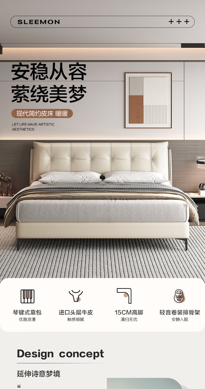 喜临门真皮双人大床现代简约风主卧卧室婚床家具 暖暖[床架] 银鼠灰+白骑士plus床垫 1.8*2米