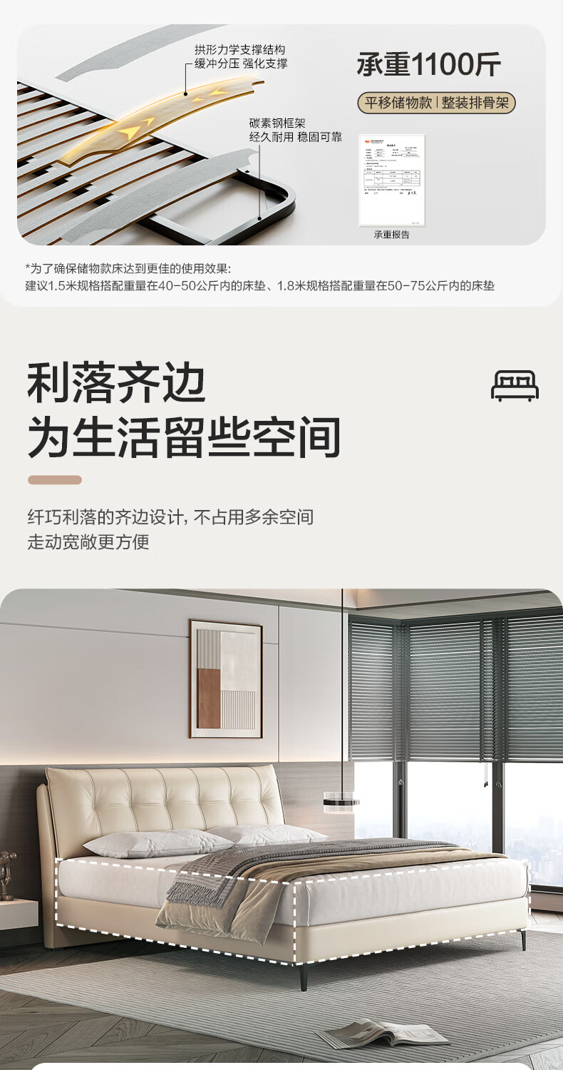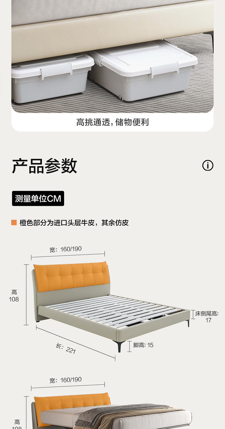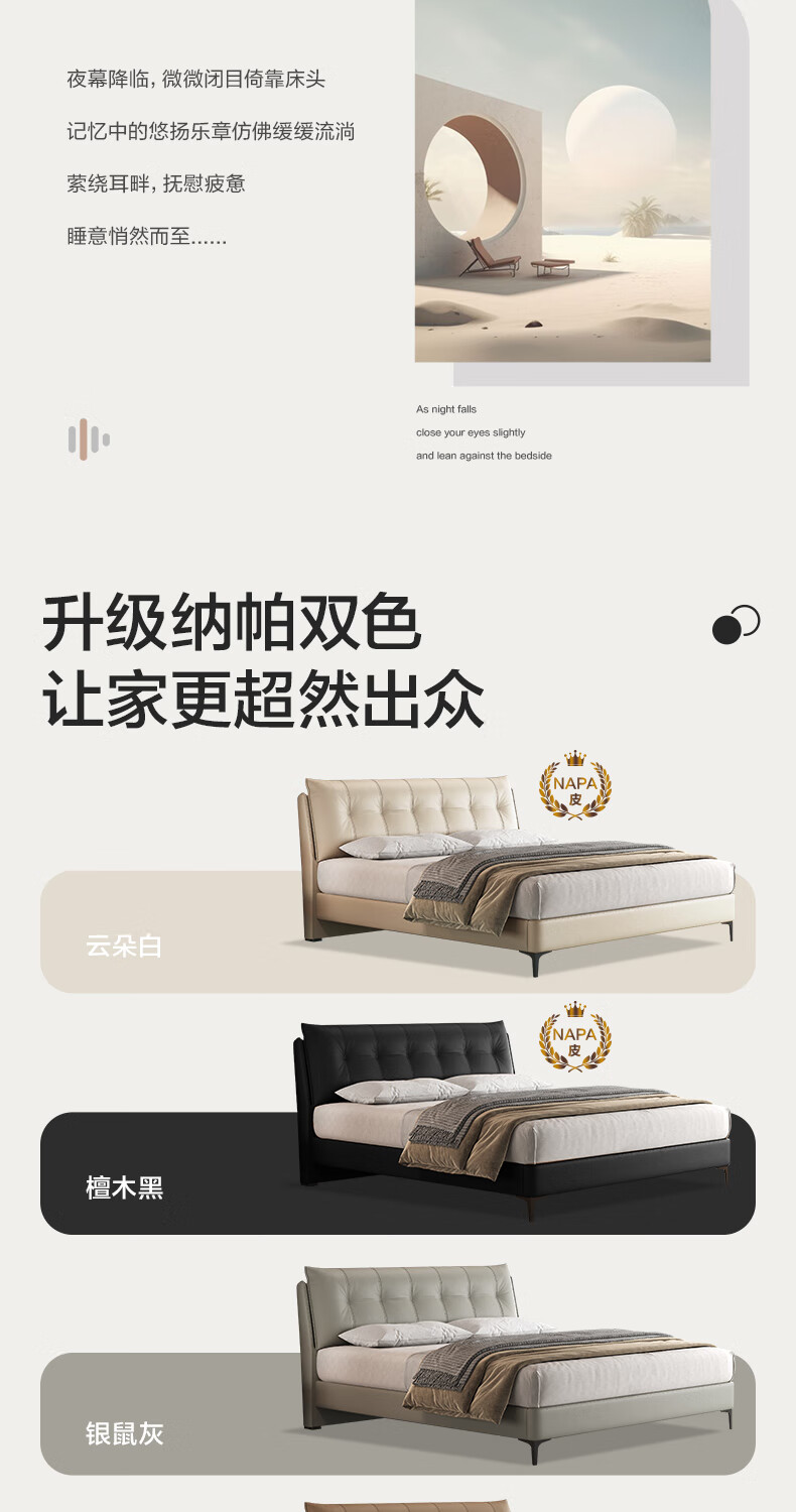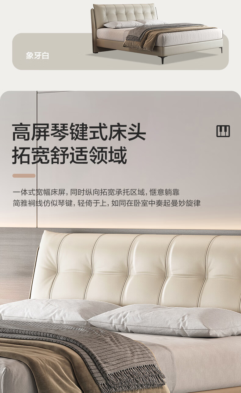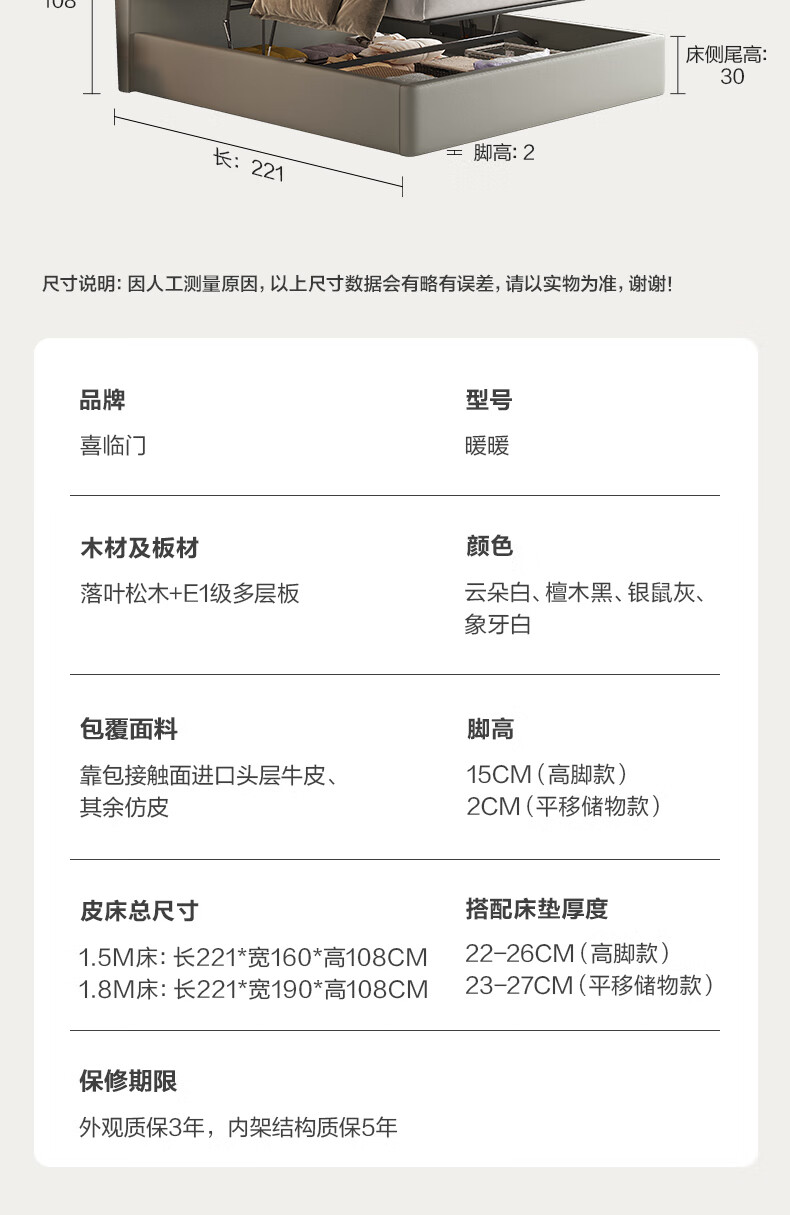 喜临门真皮双人大床现代简约风主卧卧室婚床家具 暖暖[床架] 银鼠灰+白骑士plus床垫 1.8*2米