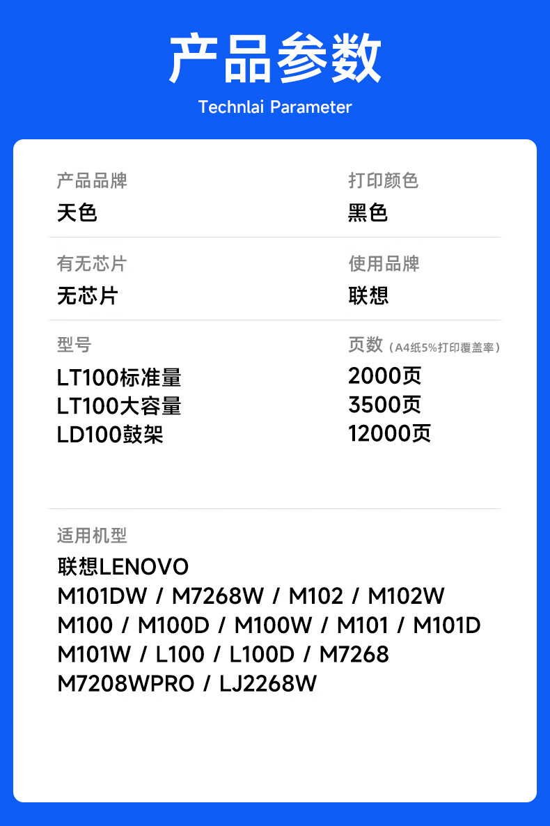 天色适用联想领像m101dw粉盒m100w m100 m102w硒鼓LT100打印机碳粉L100w m100D墨盒L100d L100dw m101d/w墨粉