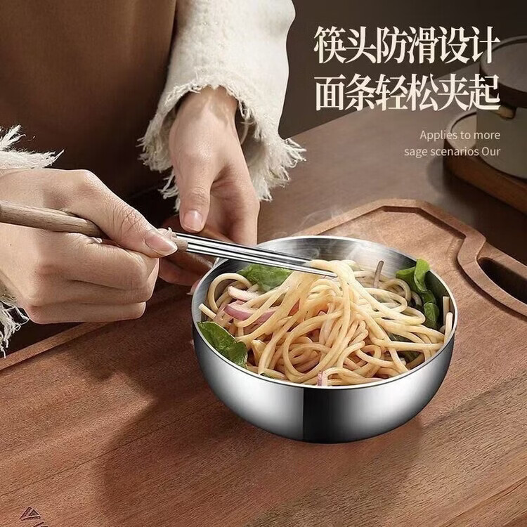 咏夏清仓泡面碗带手柄不锈钢韩式带盖家用宿舍用学生拌饭泡面碗带盖 17cm泡面碗【800ml】无手柄