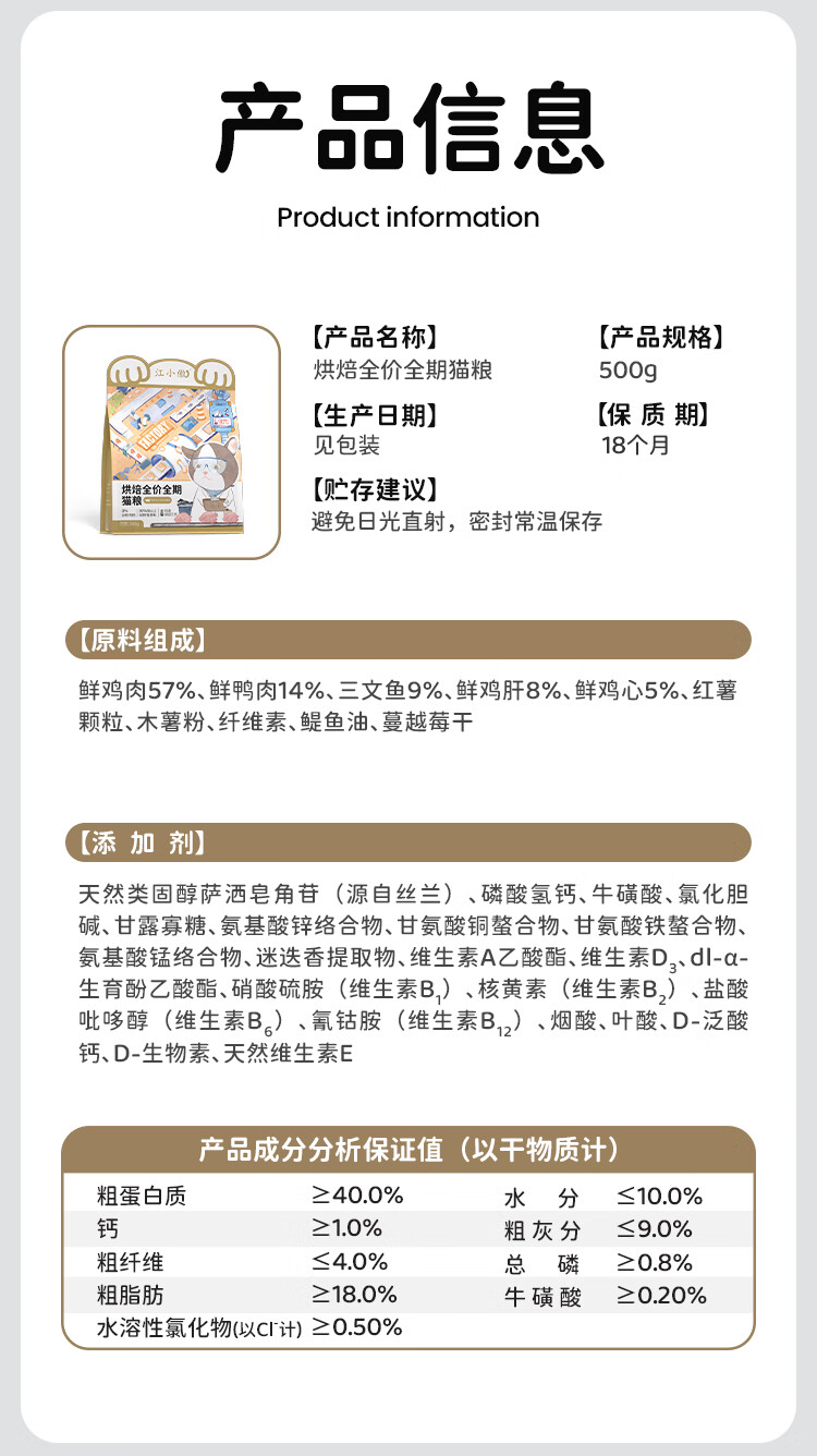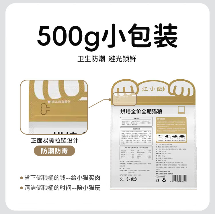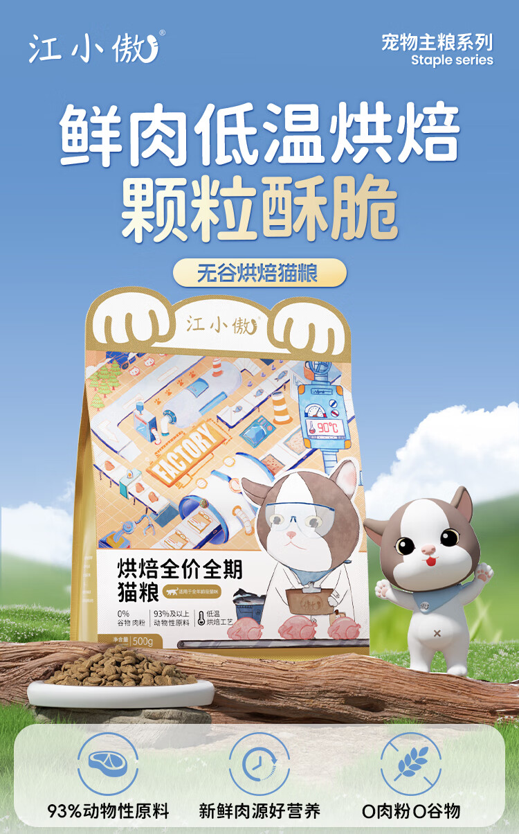 江小傲低温烘焙全价全期猫粮幼猫成猫鸡肉无谷高蛋白通用营养主粮 6kg 囤货装(1斤装12包)