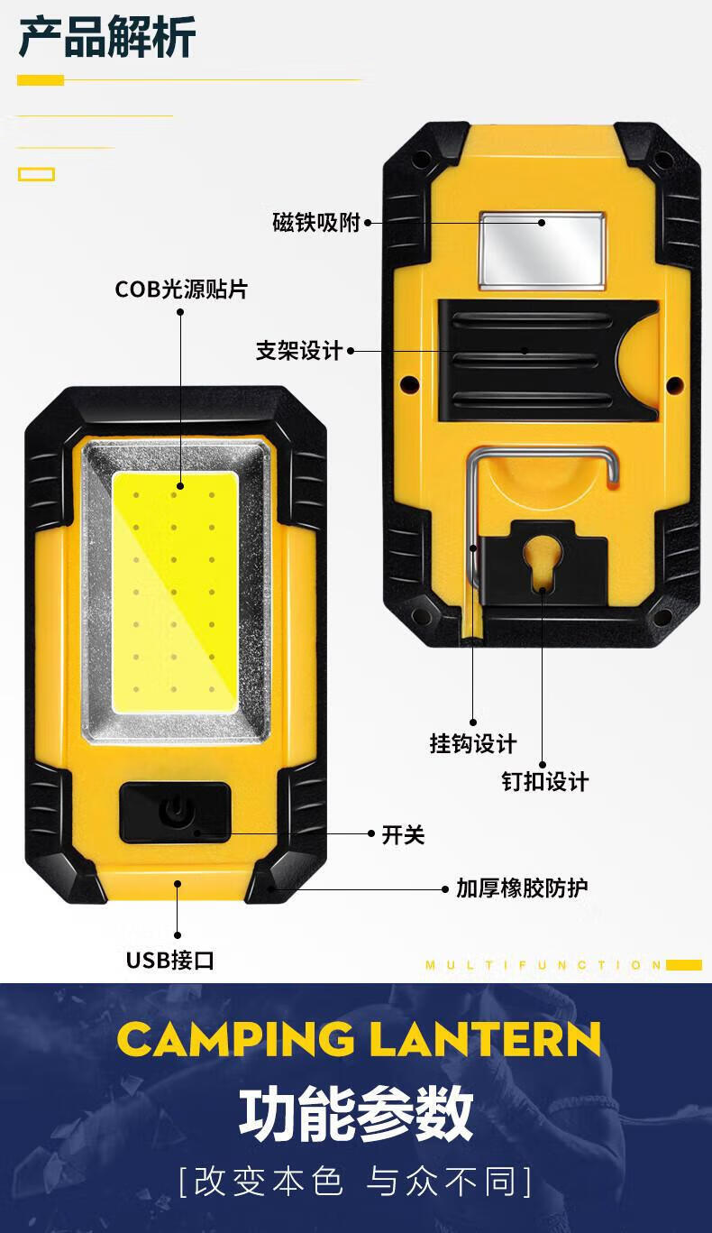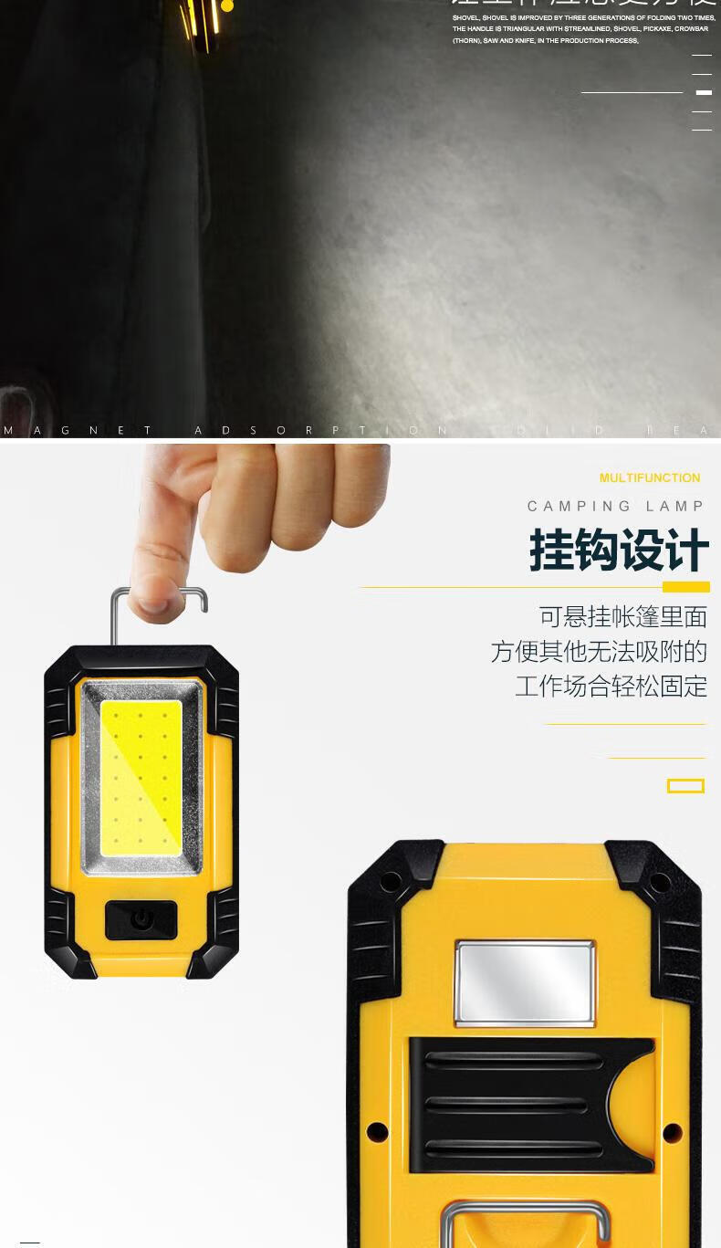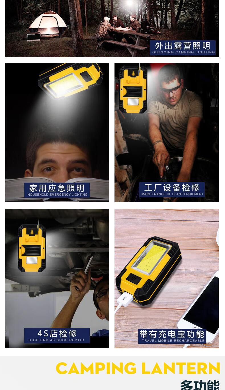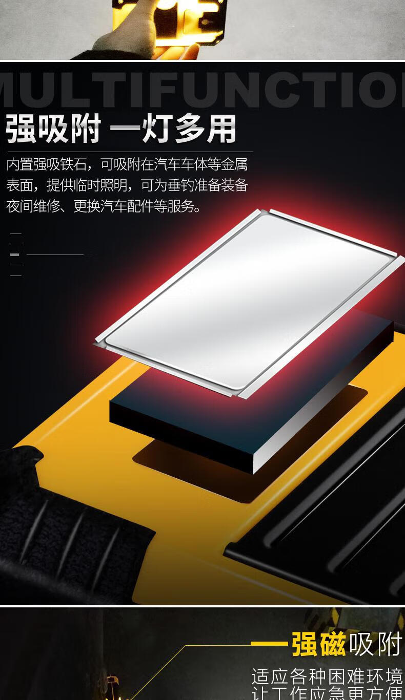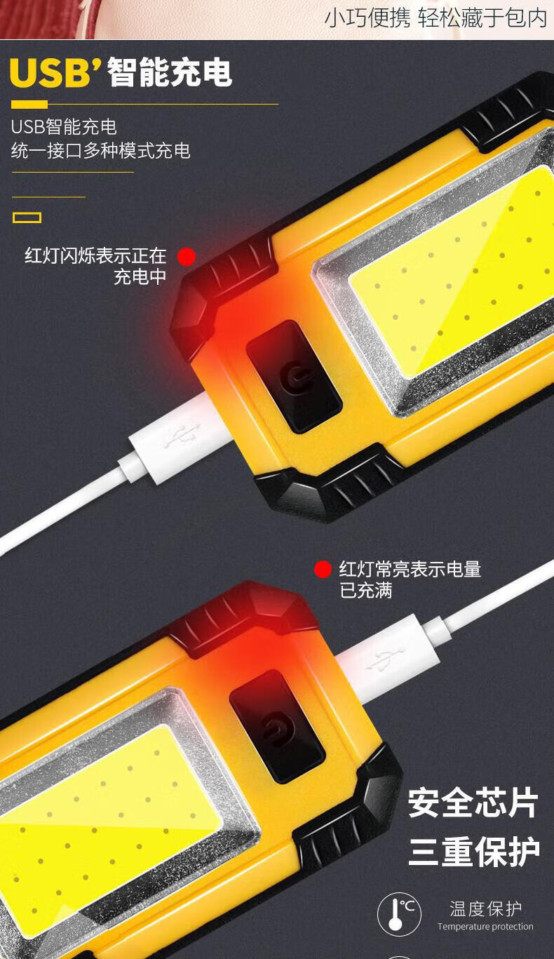 宰搂汽修磁吸工作灯长续航强光亮充电户外维修检修照明灯led手电筒 ed手电筒