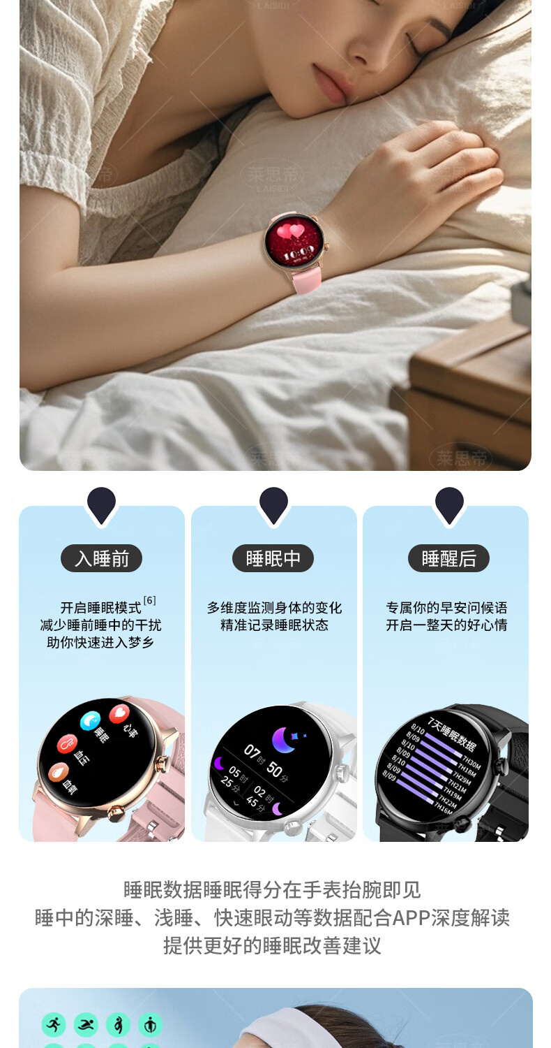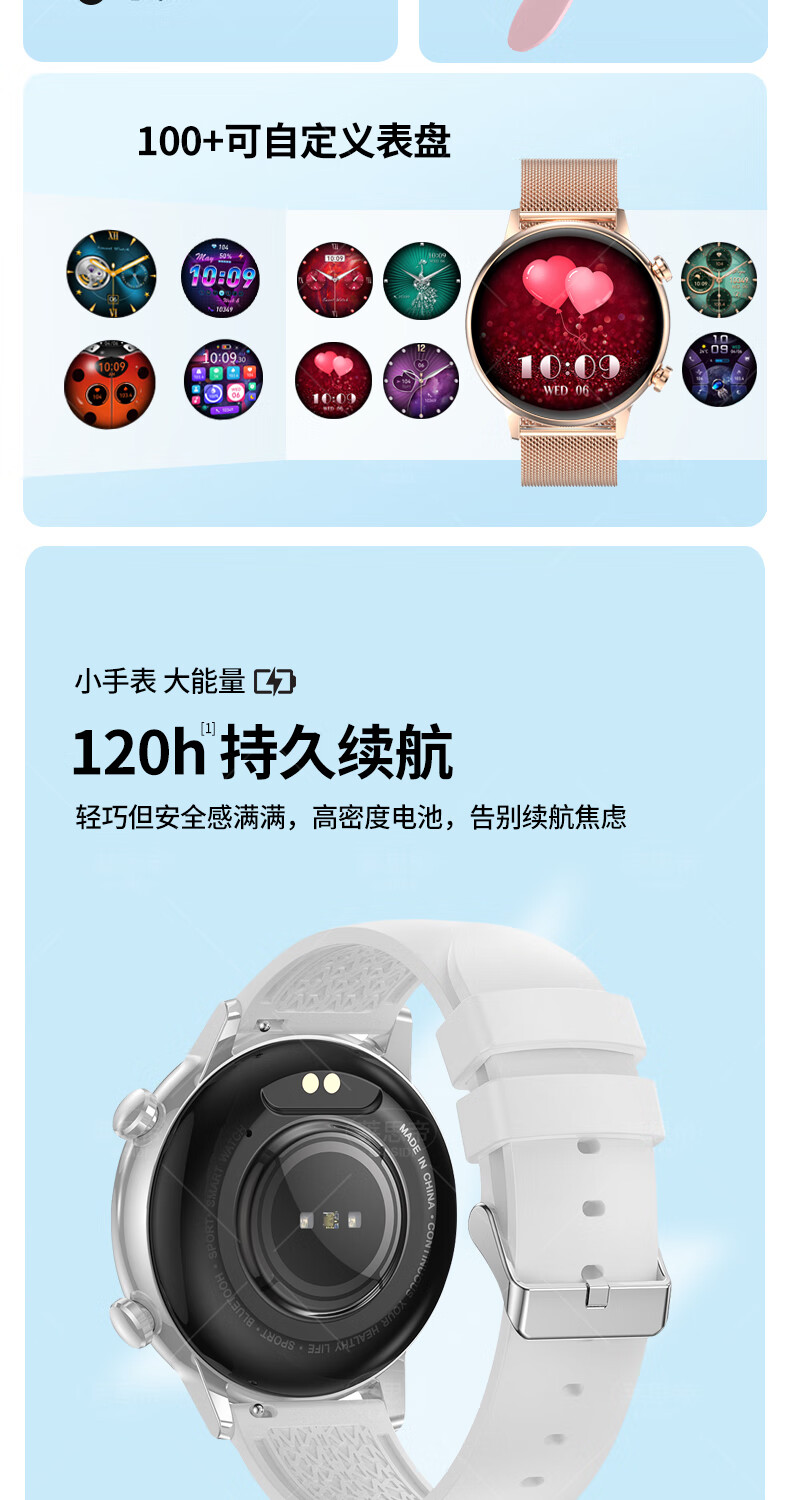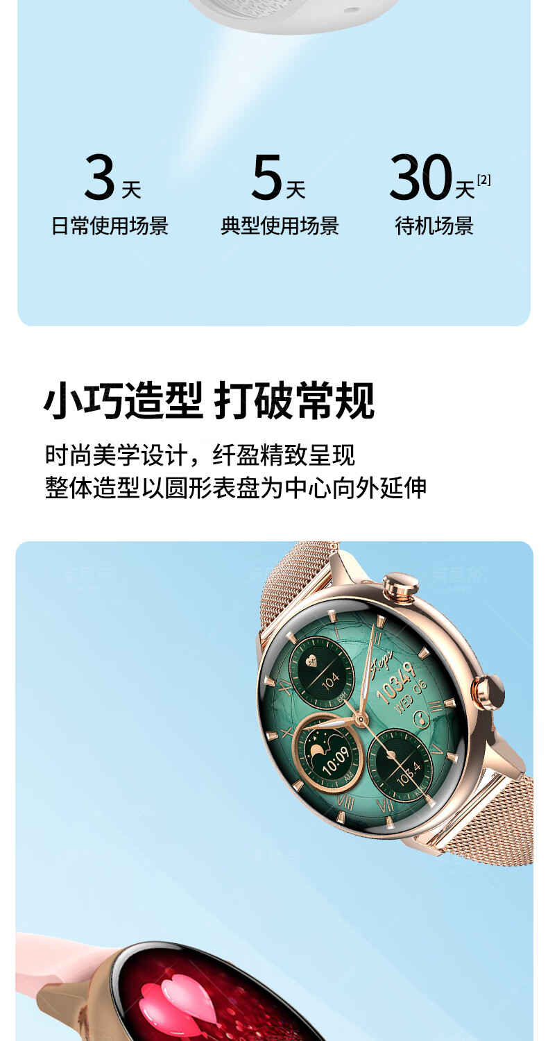 莱思帝智能手表女生款迷你小巧心率血压血氧睡眠监测跑步防水长续航蓝牙打电话离线支付运动mini手环 香槟金+粉色硅胶