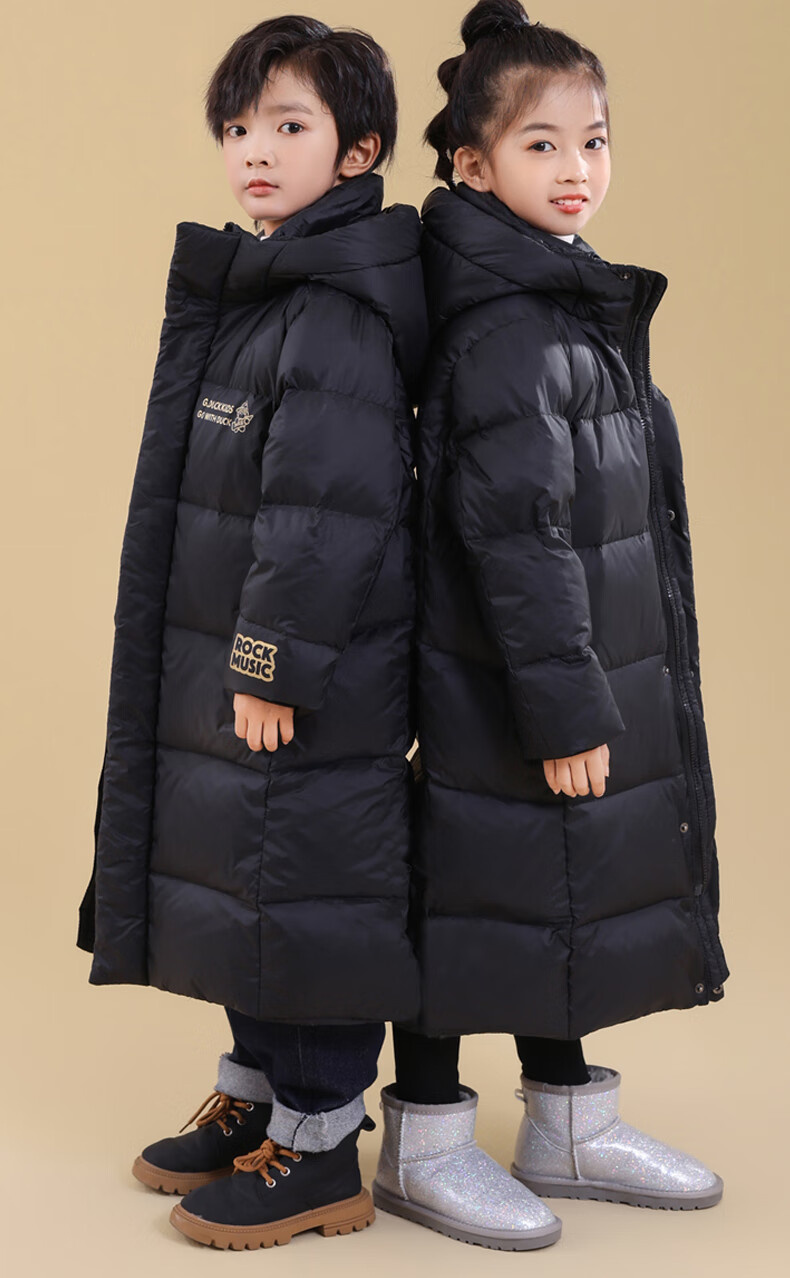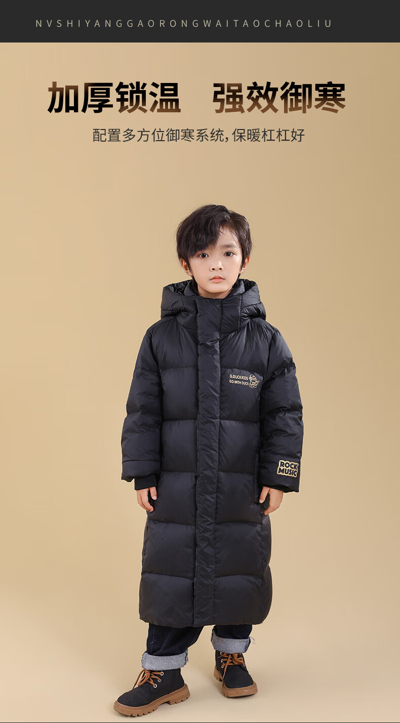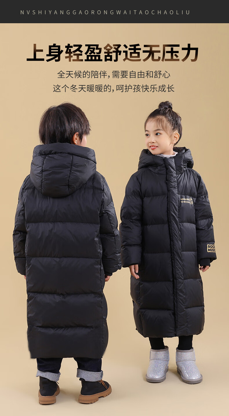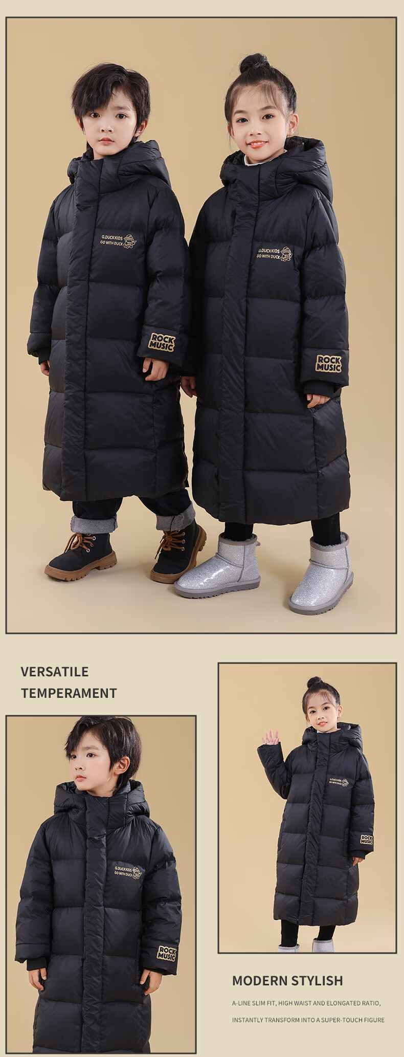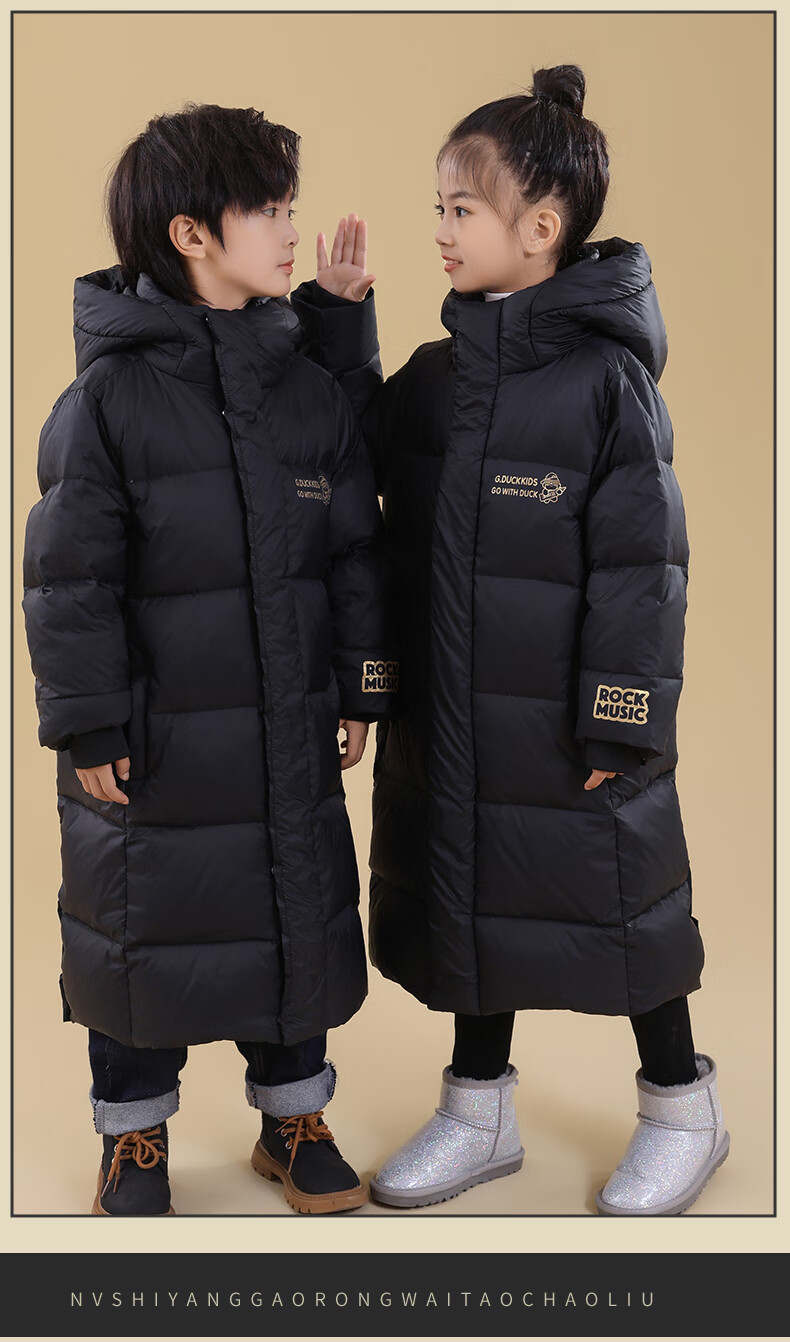 哈罗小黄鸭HAL.DUCK儿童黑金长款羽绒服男童女童过膝东北极寒亲子中大童超厚羽绒服新 黑色 120 码(建议身高110-120cm)
