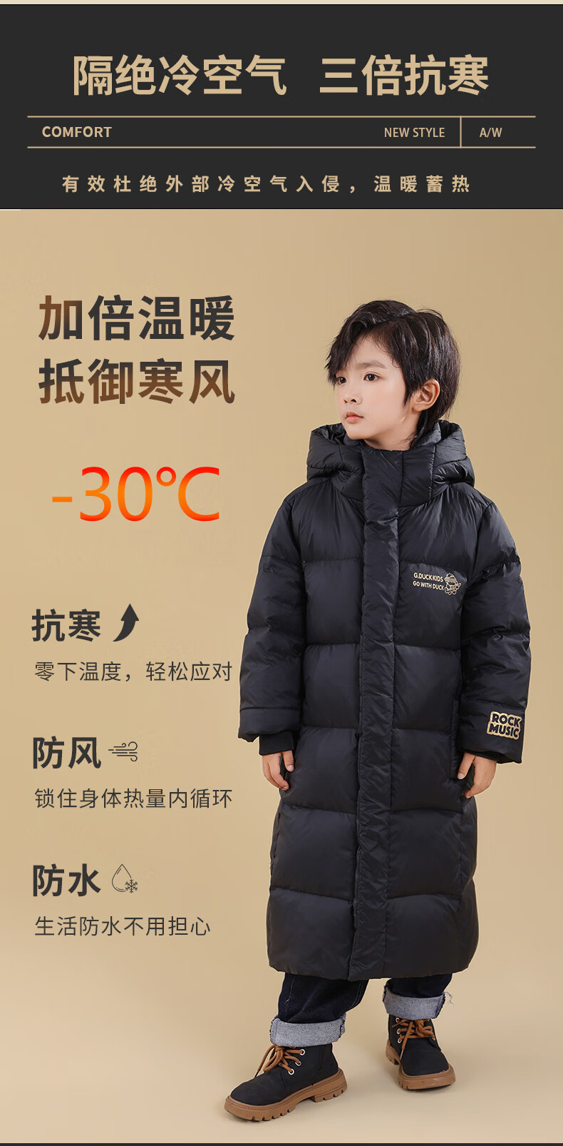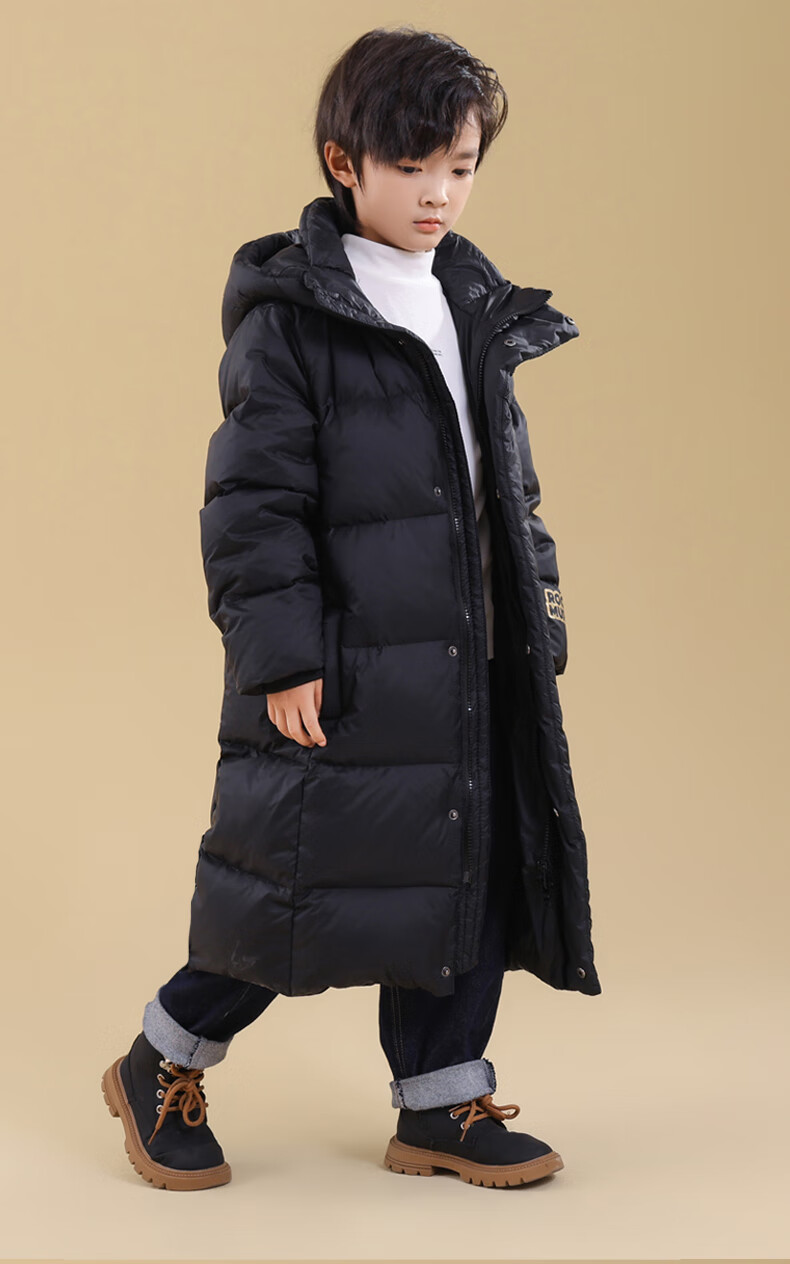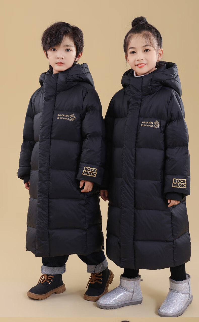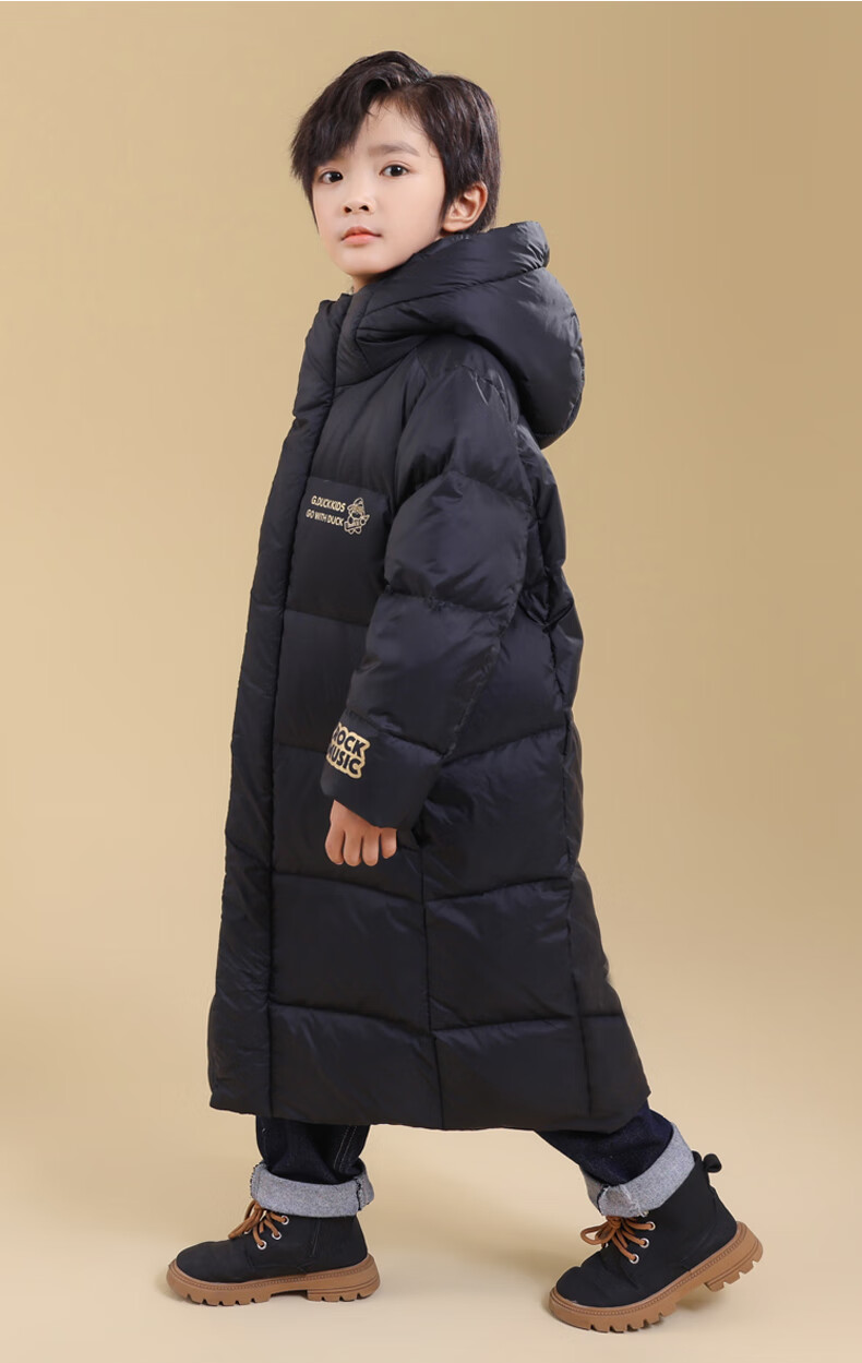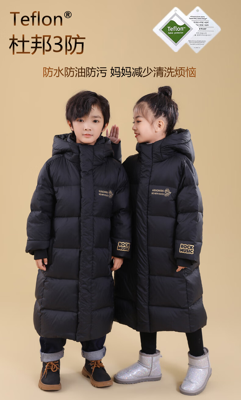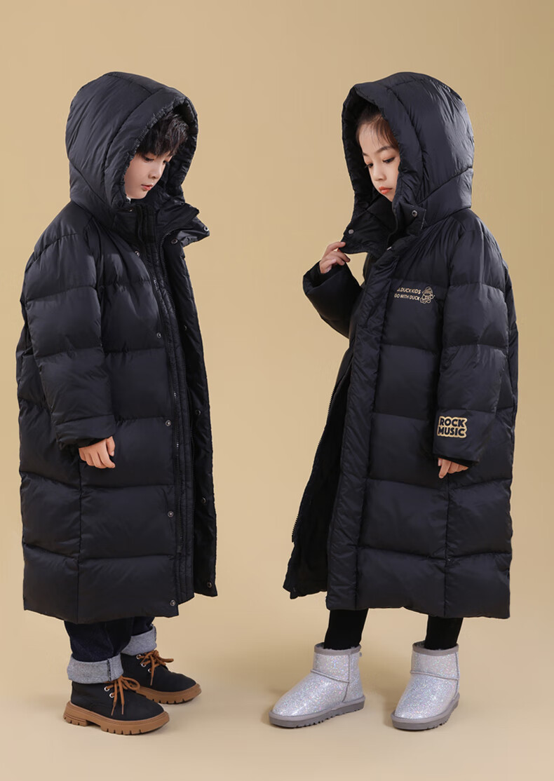 哈罗小黄鸭HAL.DUCK儿童黑金长款羽绒服男童女童过膝东北极寒亲子中大童超厚羽绒服新 黑色 120 码(建议身高110-120cm)