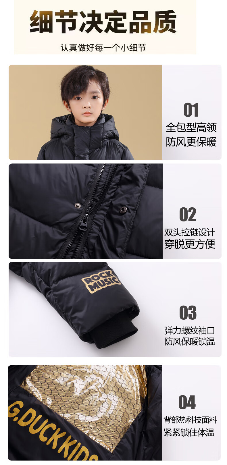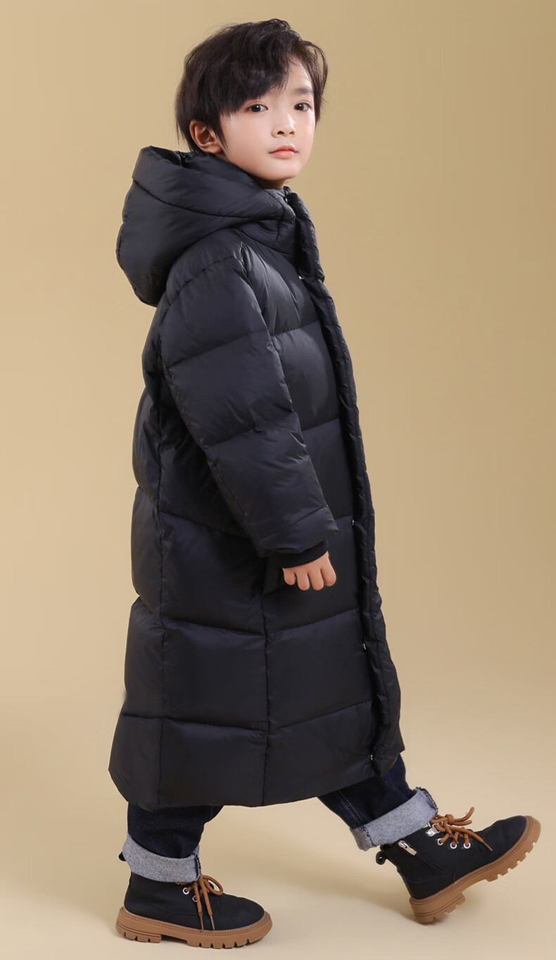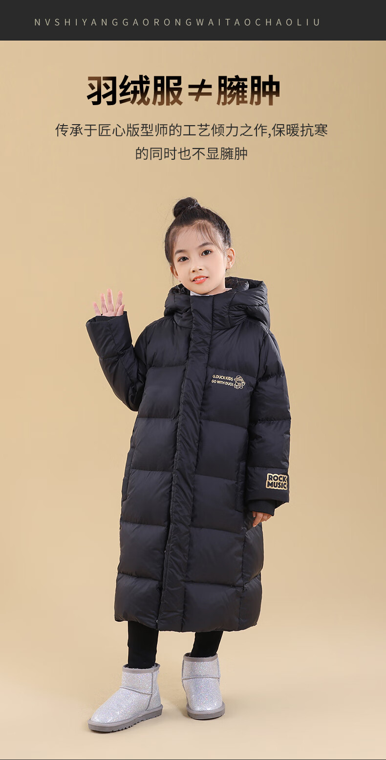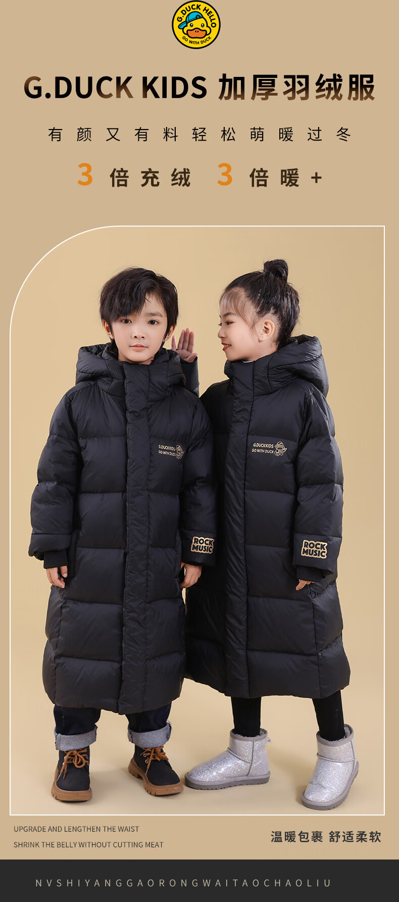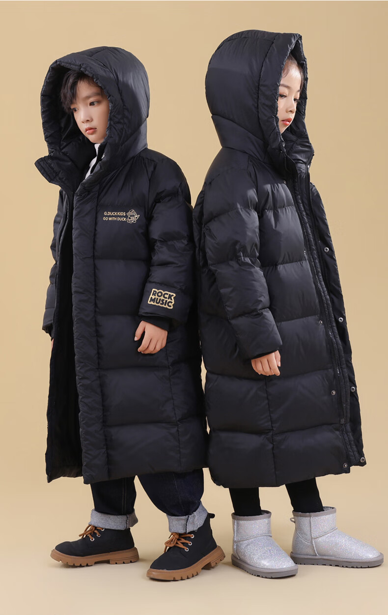 哈罗小黄鸭HAL.DUCK儿童黑金长款羽绒服男童女童过膝东北极寒亲子中大童超厚羽绒服新 黑色 120 码(建议身高110-120cm)