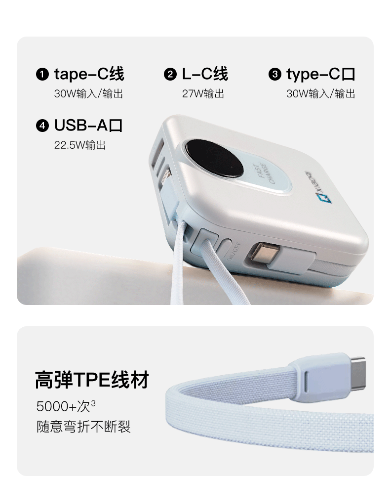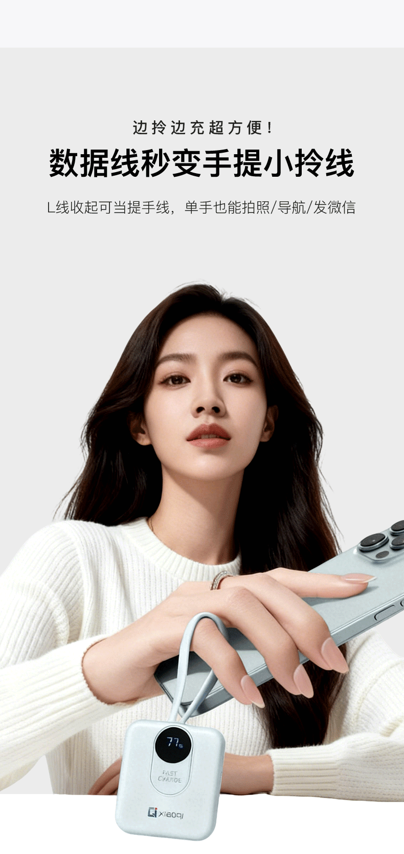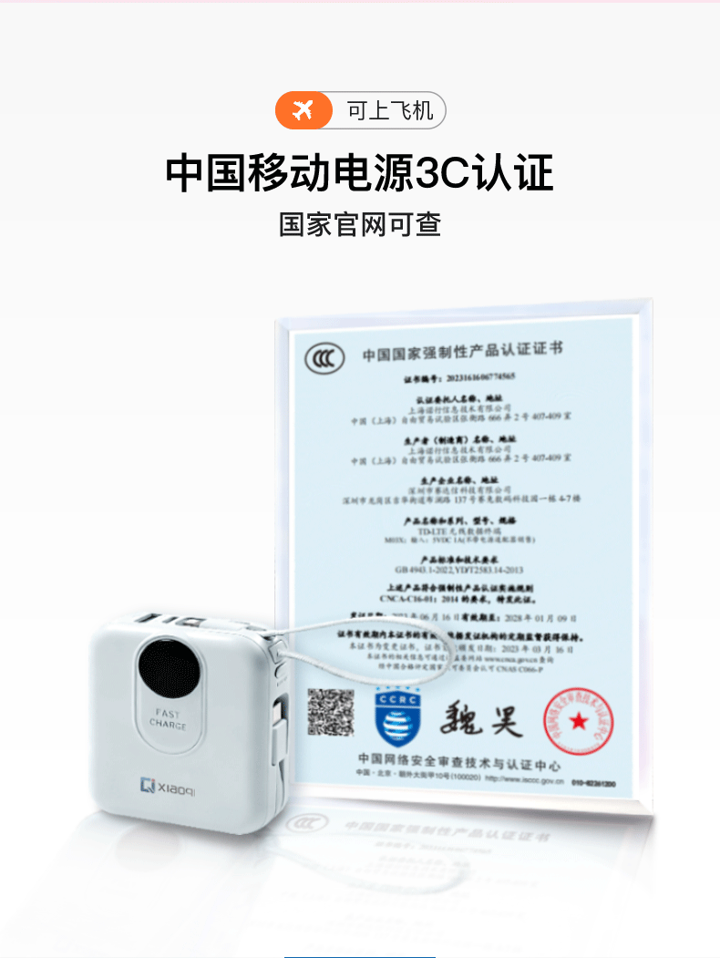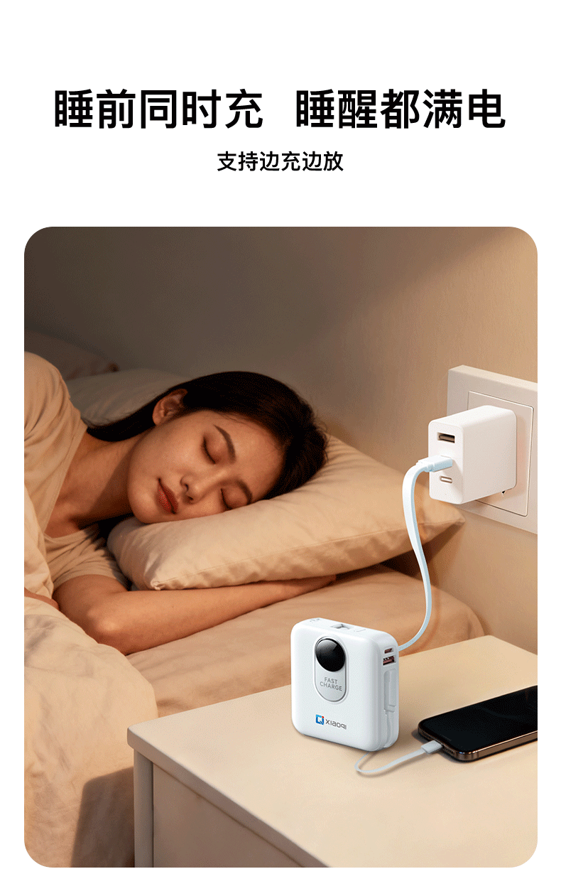 小麒智联【3C认证可上飞机】超级快充充电宝自带双线10000毫安移动电源使用华为荣耀苹果17小米 【米橙】带支架自带双线手电照明