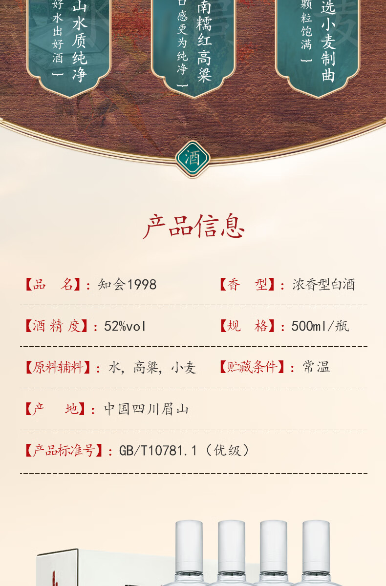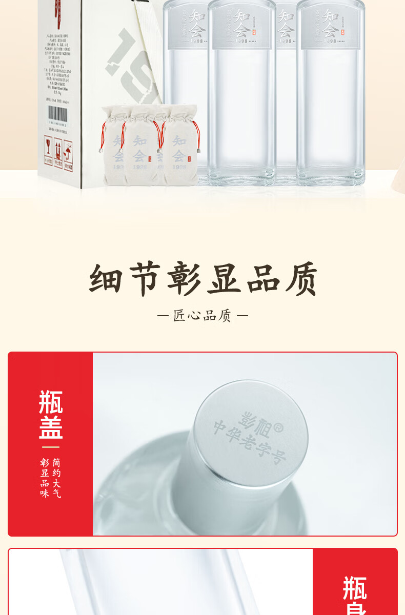 彭祖知会1998浓香型白酒52度500ml*4瓶整箱礼盒装中华老字号酒业 52%vol 500mL 1瓶 单瓶