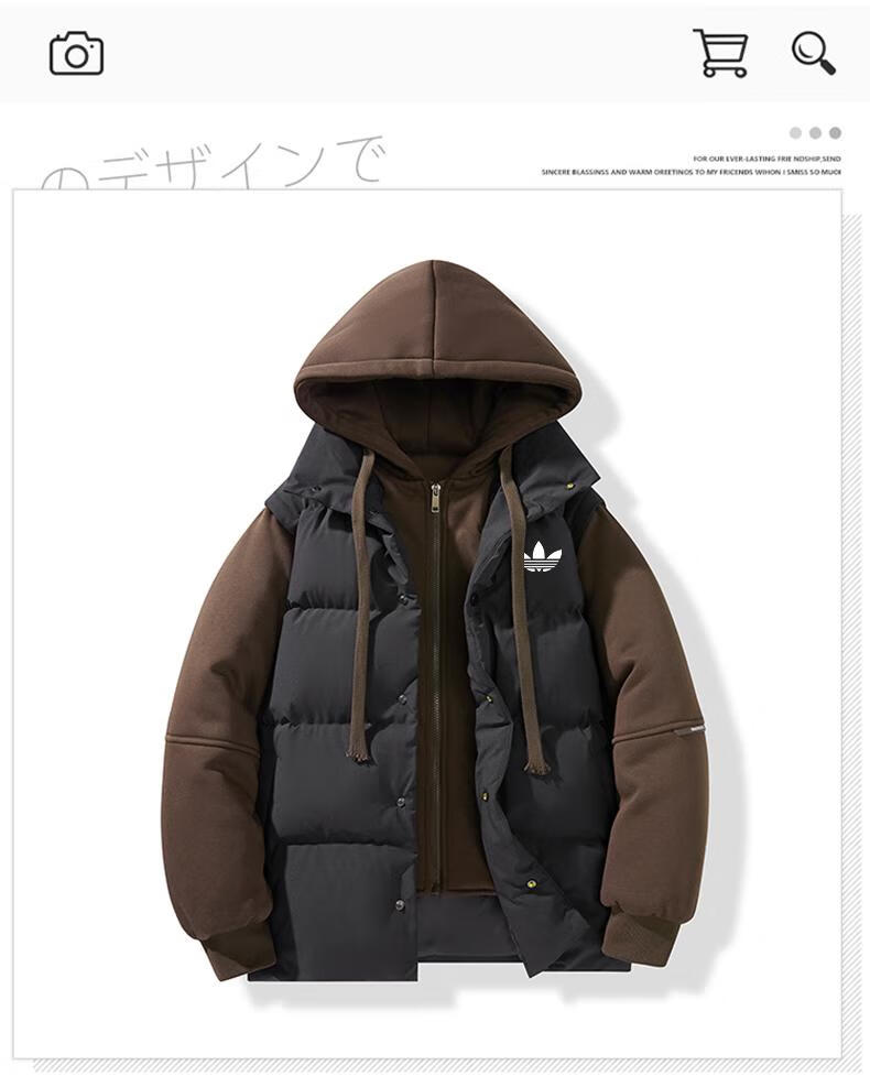2025新款秋冬季三叶草羽绒服男士休闲立领宽松情侣加厚保暖外套女 黑棕男女同款 4XL 200-220斤