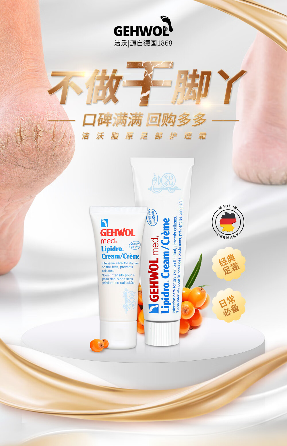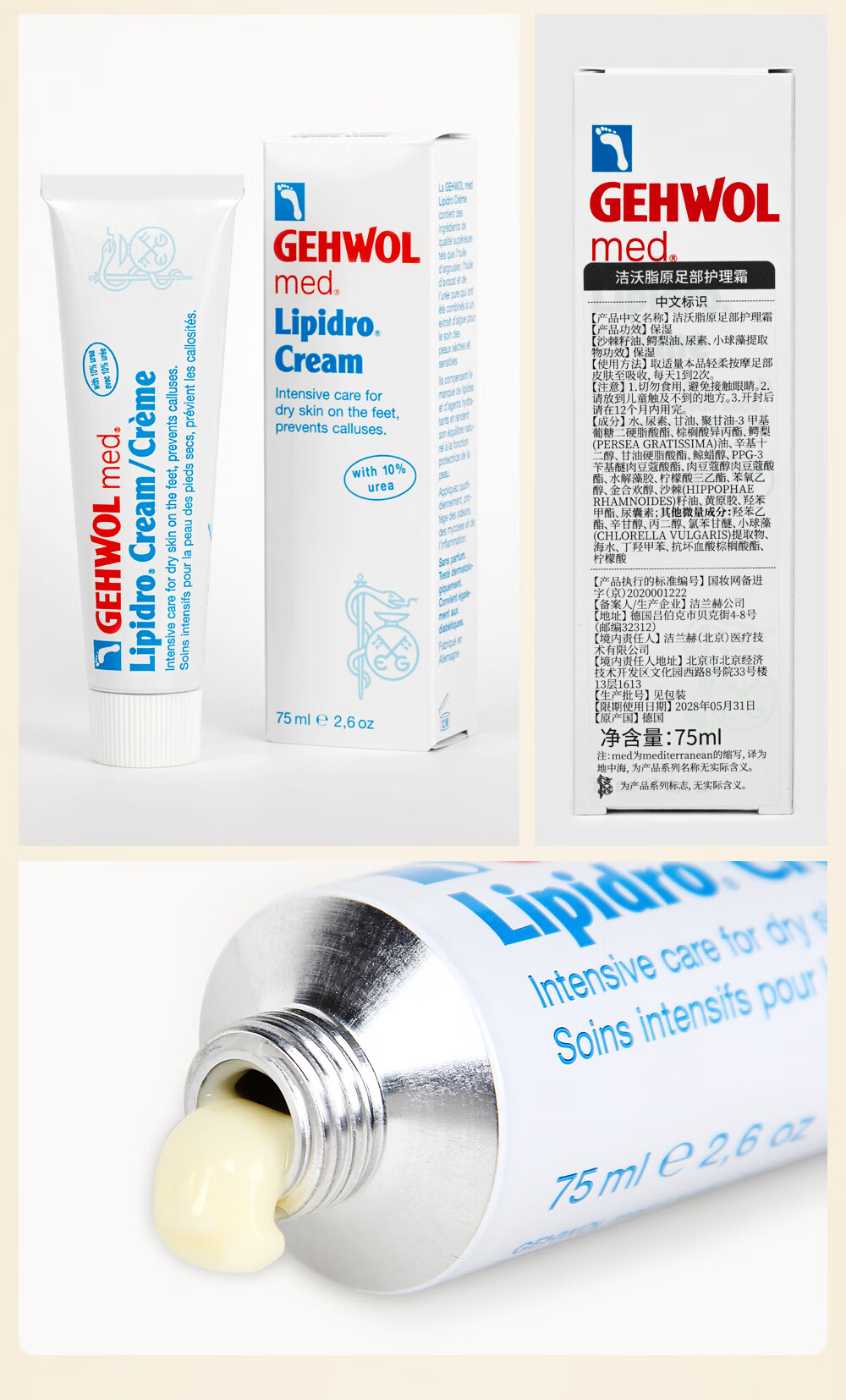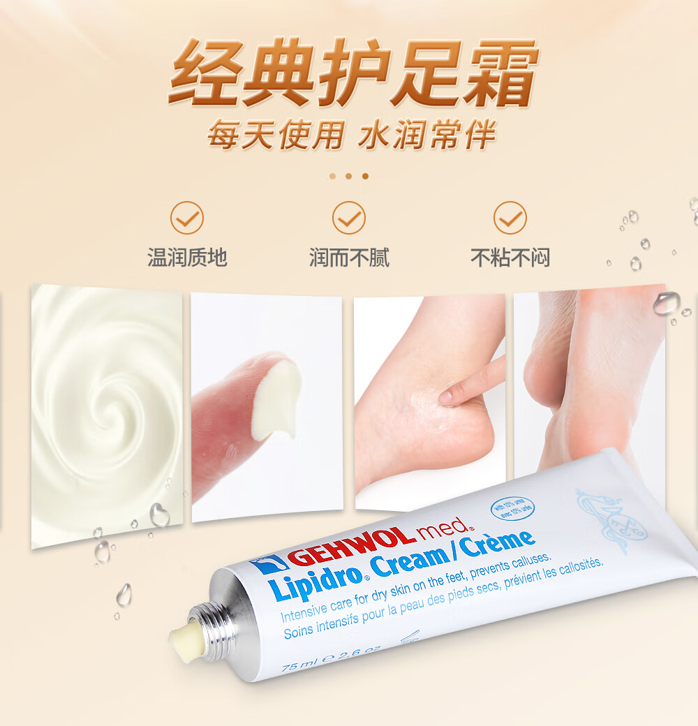 洁沃(GEHWOL)脂原足部护理霜 手脚滋润 保湿霜 防开裂干燥脱皮足部乳液 75ML