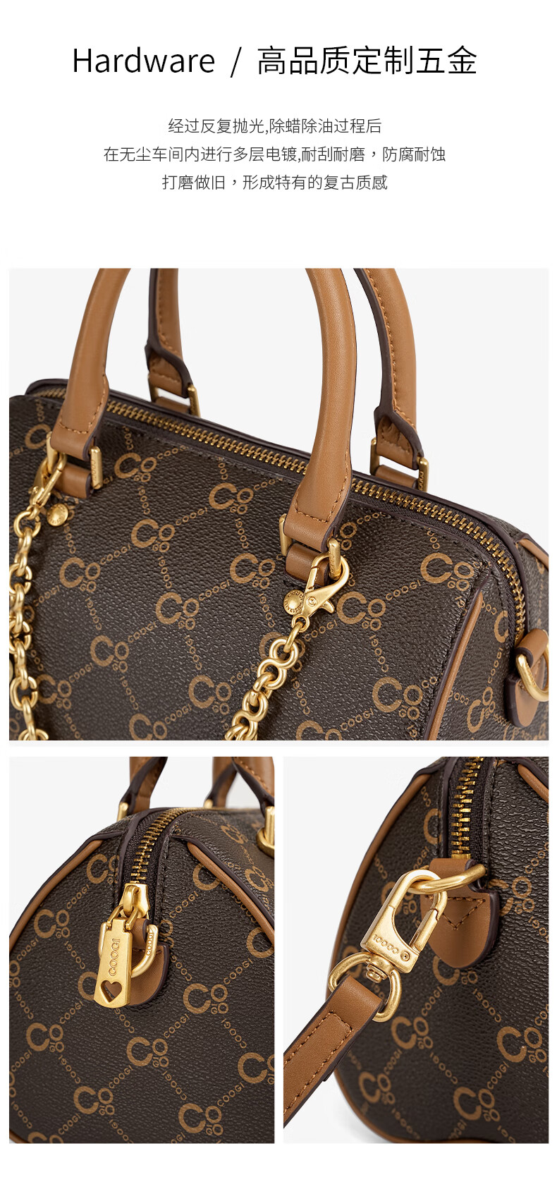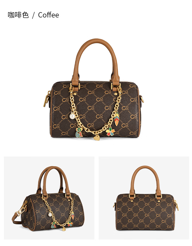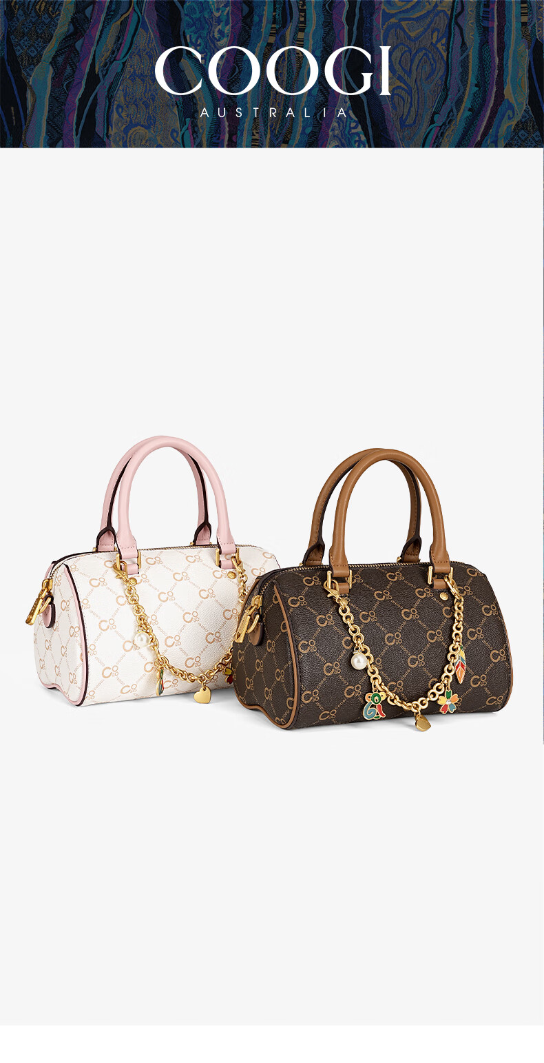 COOGI包包女包轻奢品牌2025波士顿斜挎包手提托特包圣诞礼物送老婆女友 咖啡色 21*13.5*13cm