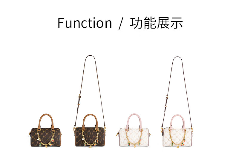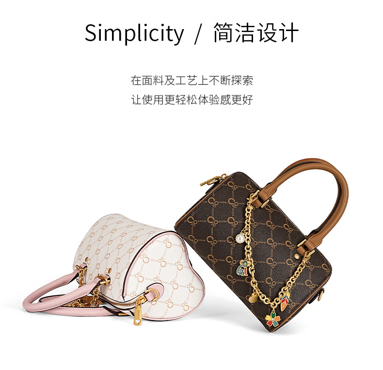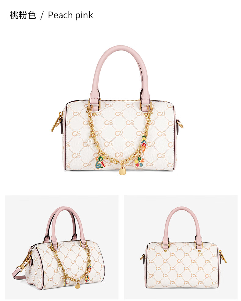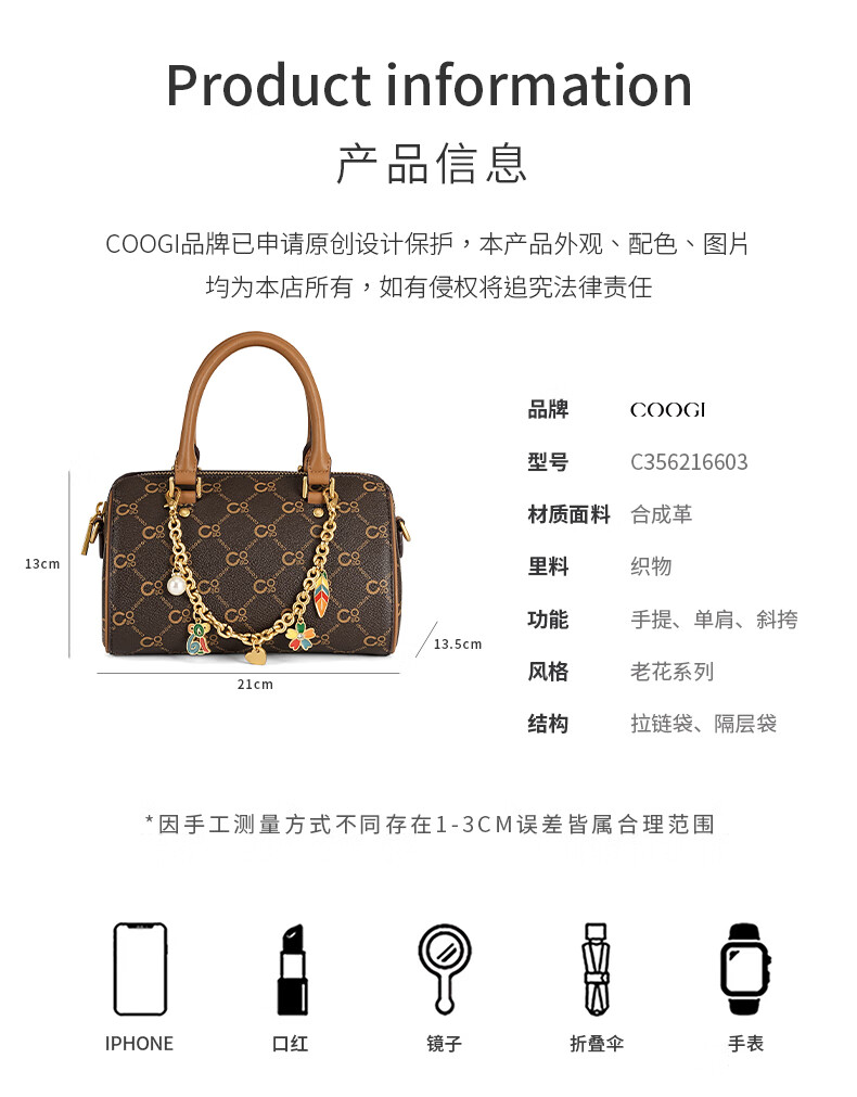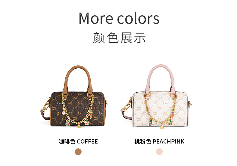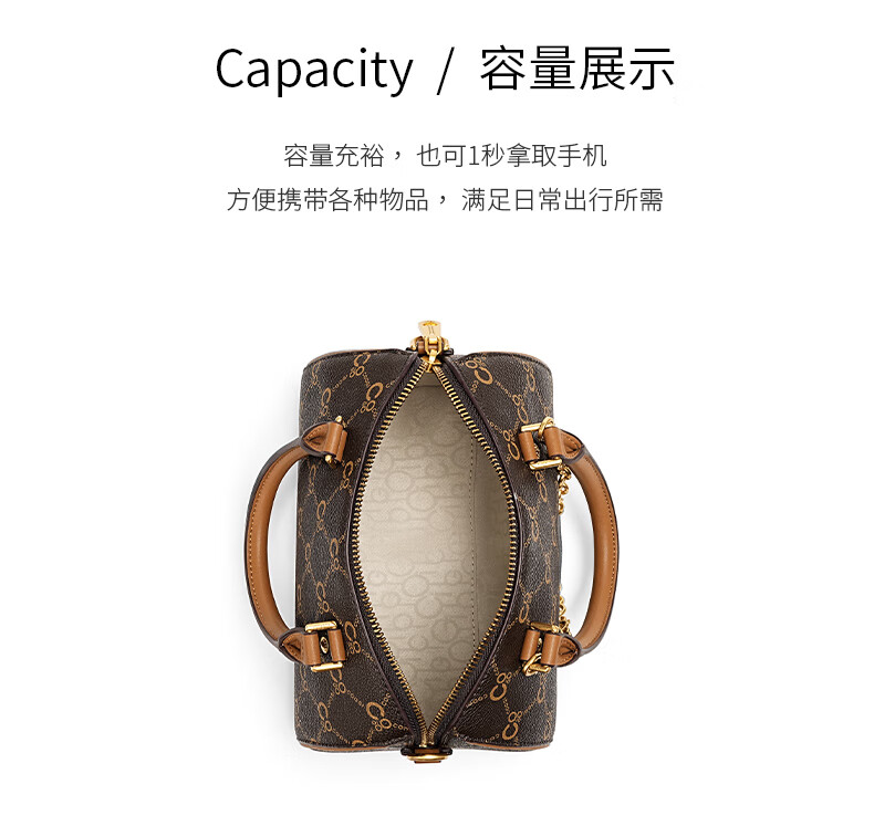 COOGI包包女包轻奢品牌2025波士顿斜挎包手提托特包圣诞礼物送老婆女友 咖啡色 21*13.5*13cm