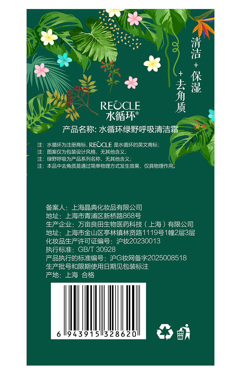 水循环(REOCLE)水循环绿野呼吸清洁霜脸部按摩膏面部护肤保湿去角质化妆品