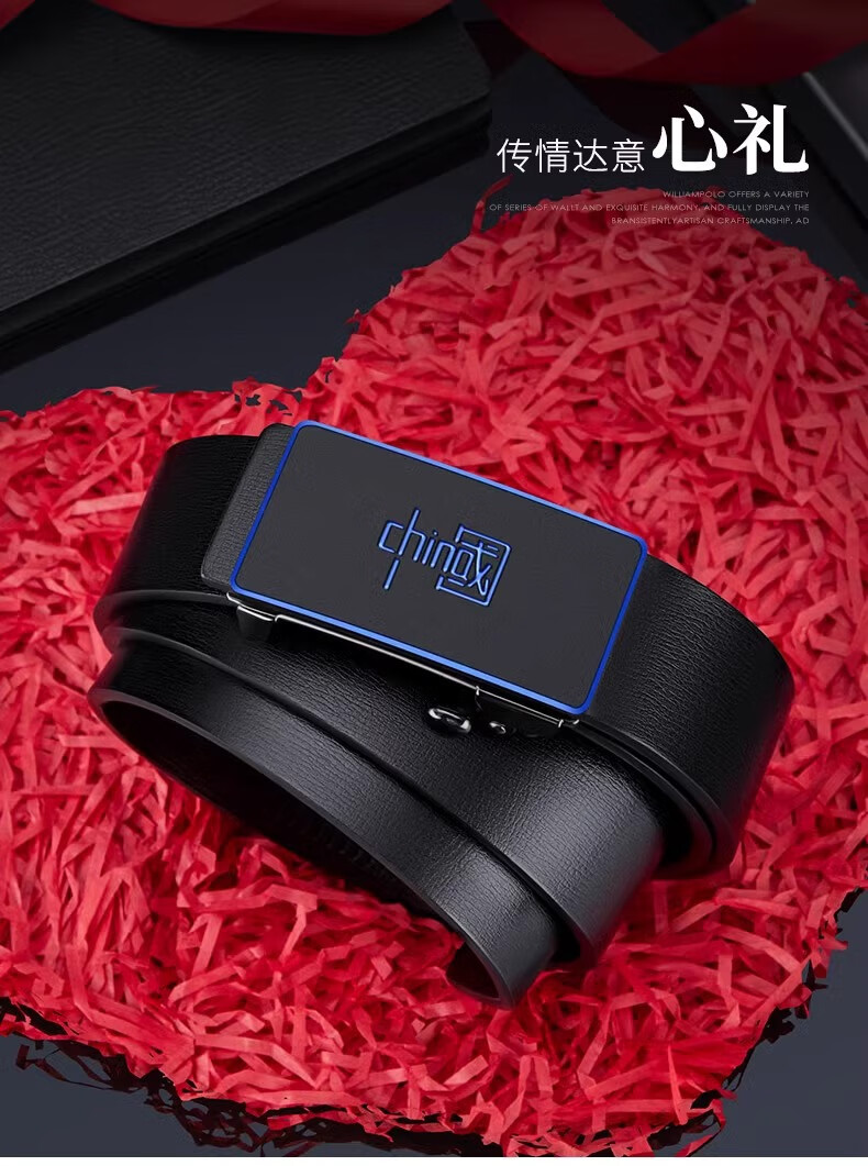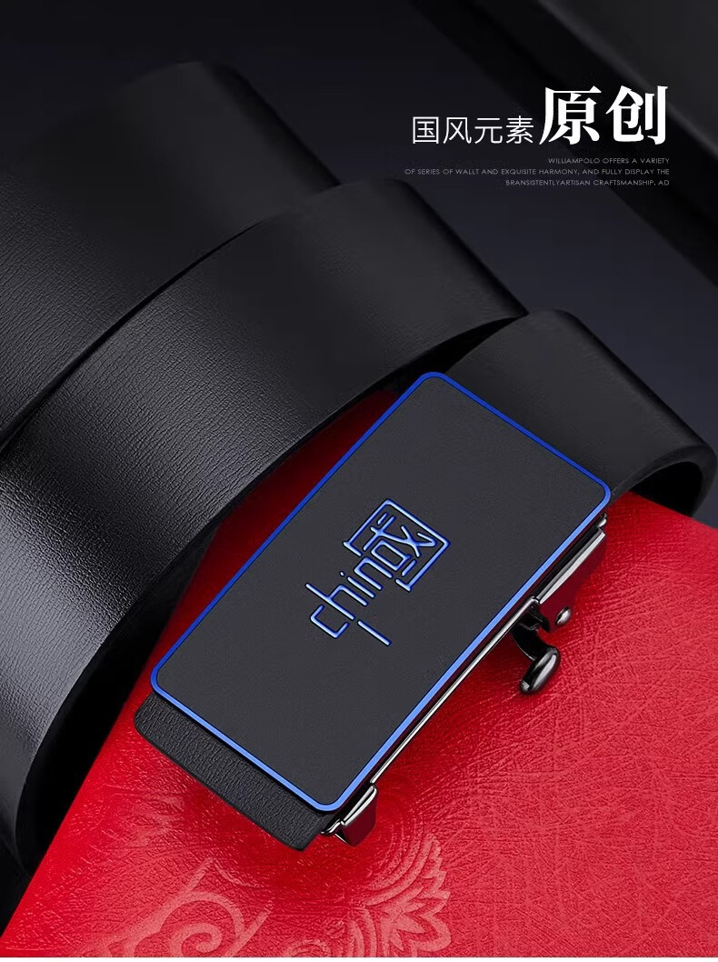 【优选百货】皮带男士腰带中青年无牙自动扣仿PU皮休闲百搭简约批 无牙自动扣-枪色B字 120cm