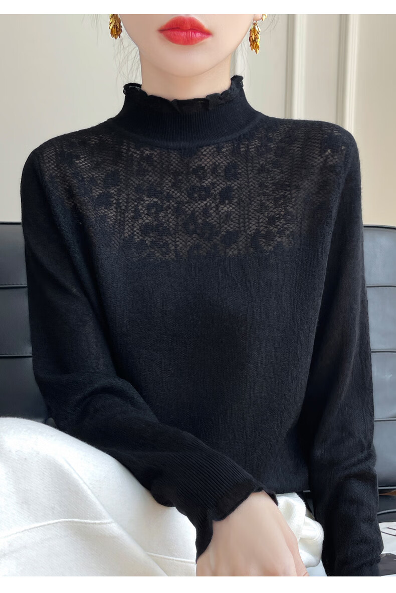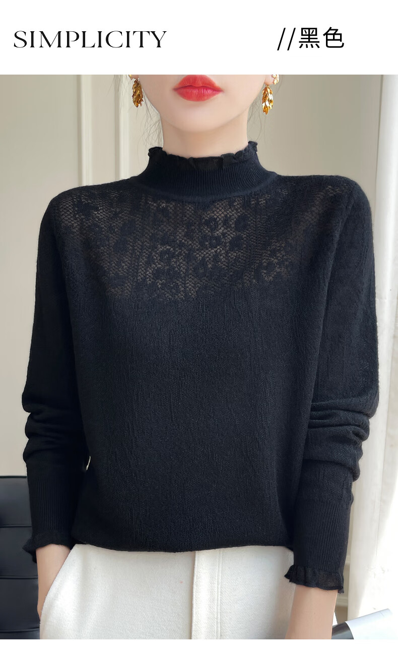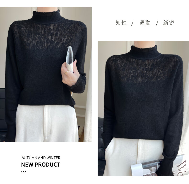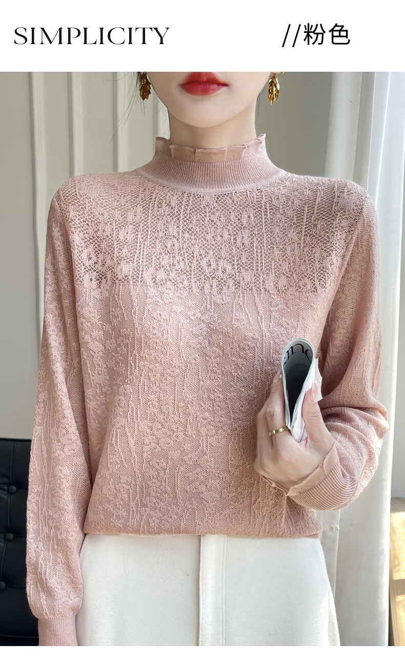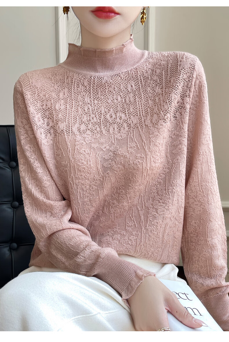 香影芬蕾丝打底衫女2025秋冬新款半高领针织衫女显瘦外搭女装上衣毛衣女 米色 L (建议105-115斤)