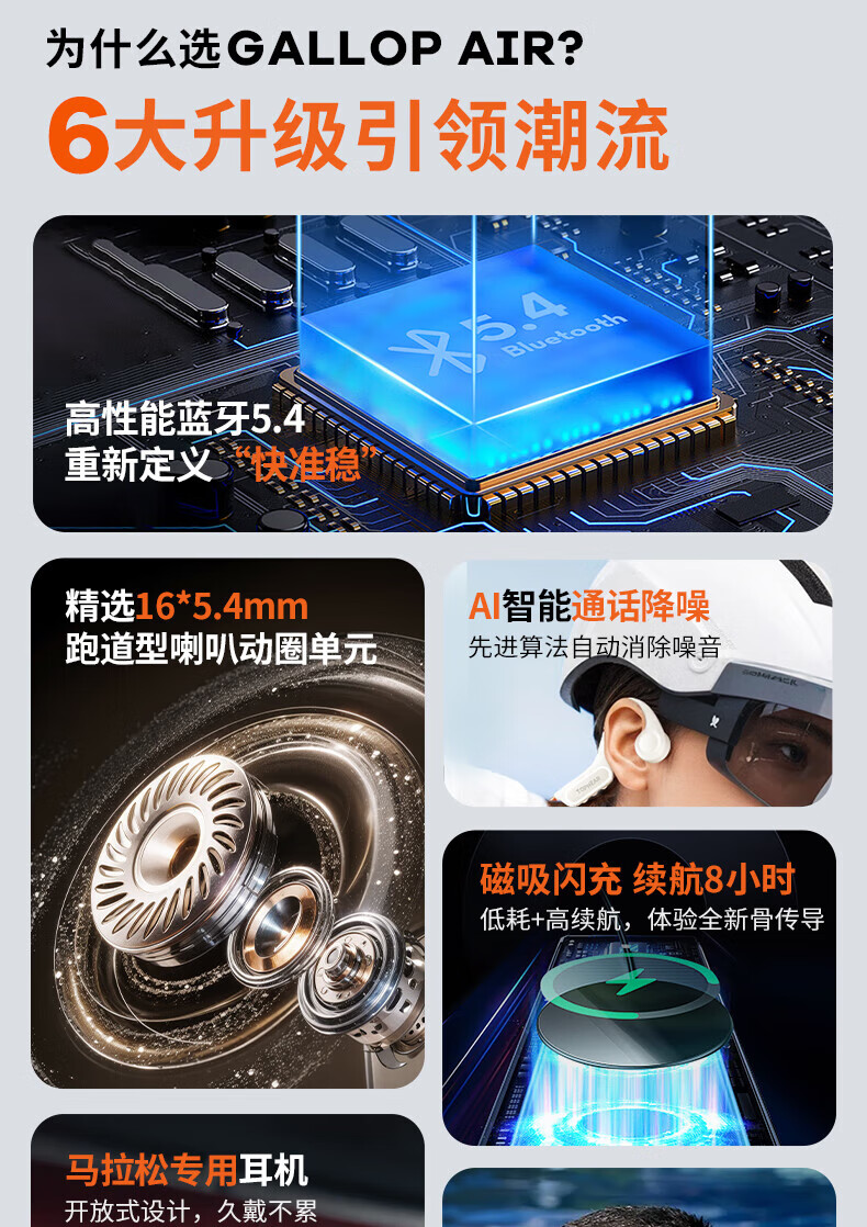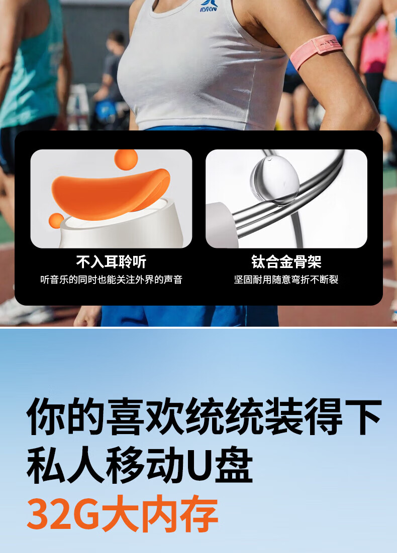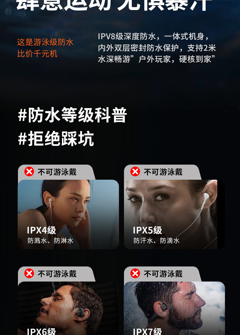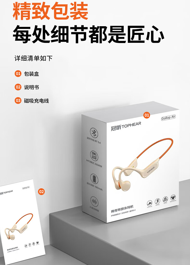 冠听GallopAir 骨传导运动耳机蓝牙开放式跑步骑行运动装备长续航游泳级防水适用于苹果17pro小米华为 【IPX8级游泳防水+内置32G】运动黑