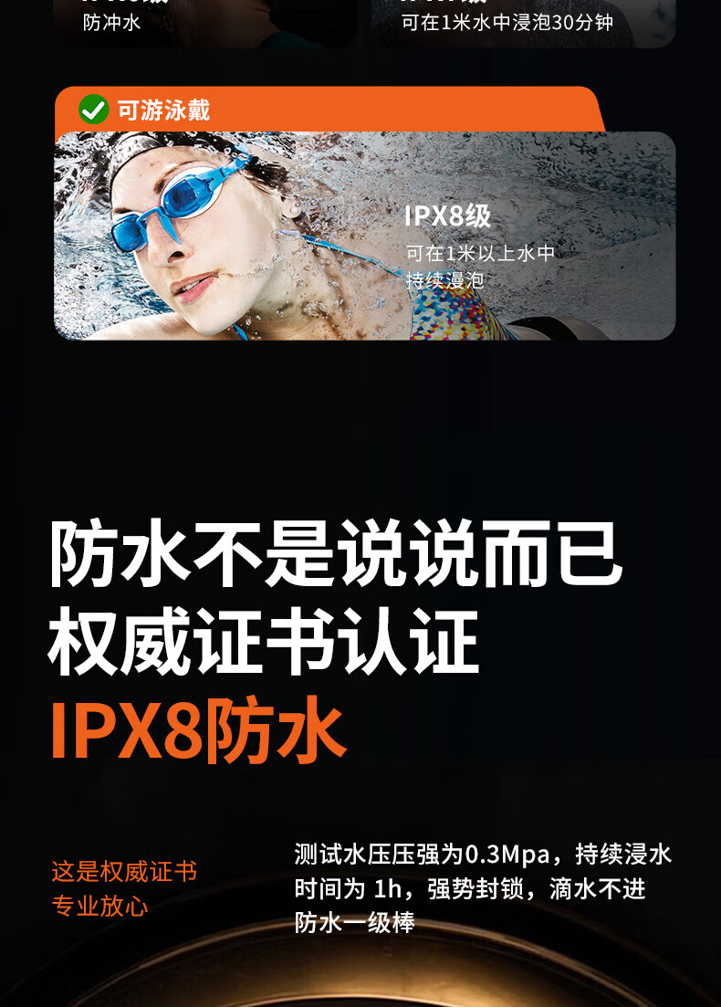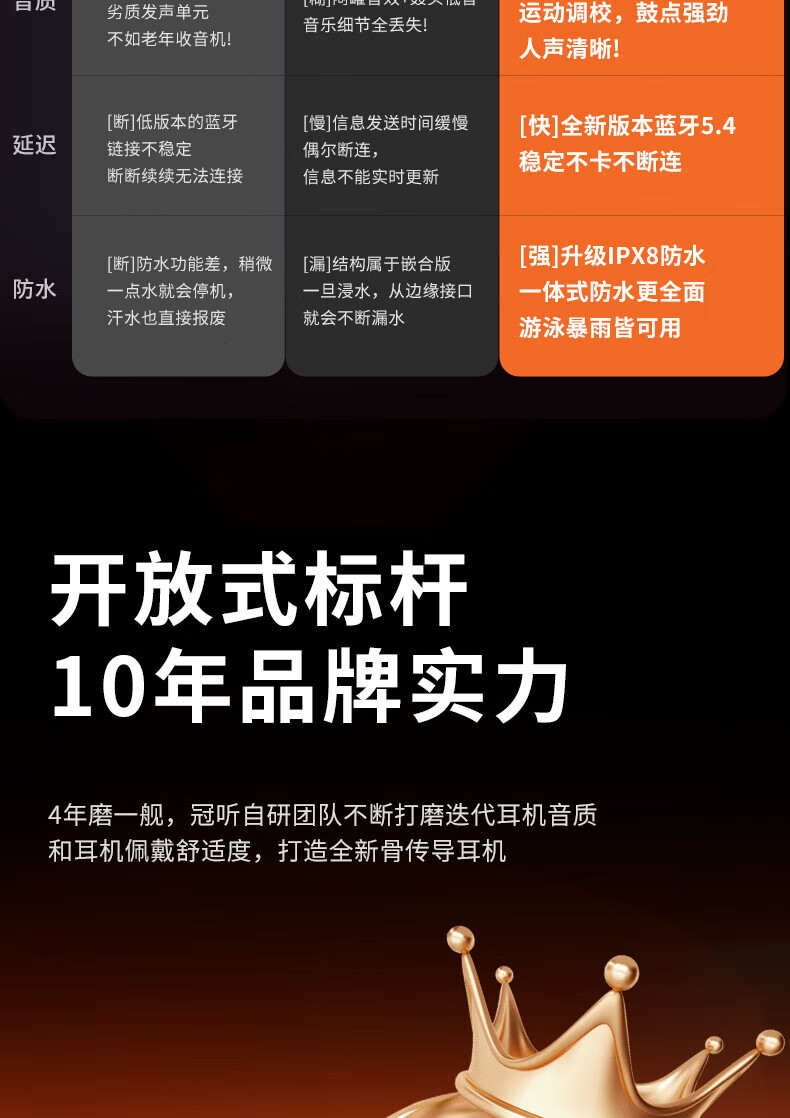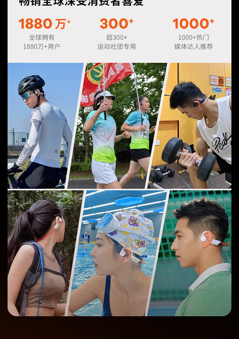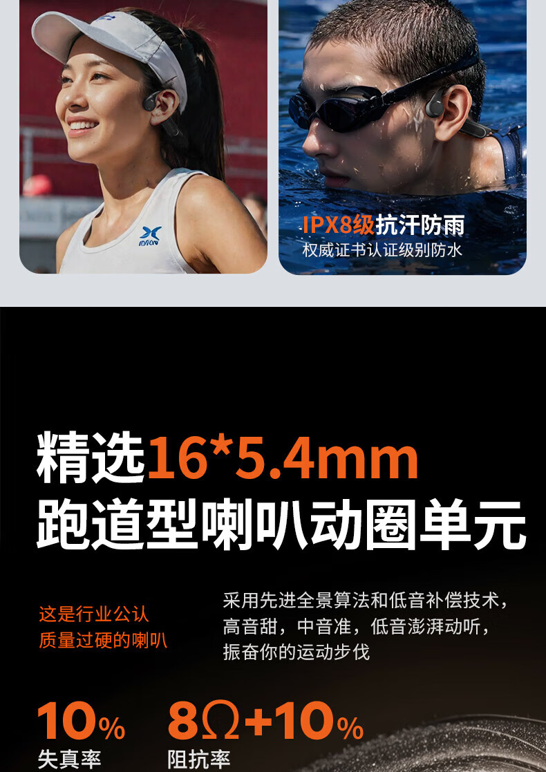 冠听GallopAir 骨传导运动耳机蓝牙开放式跑步骑行运动装备长续航游泳级防水适用于苹果17pro小米华为 【IPX8级游泳防水+内置32G】运动黑