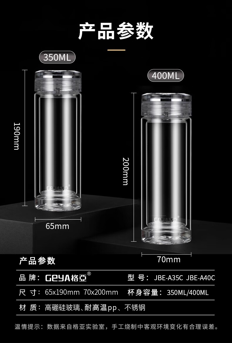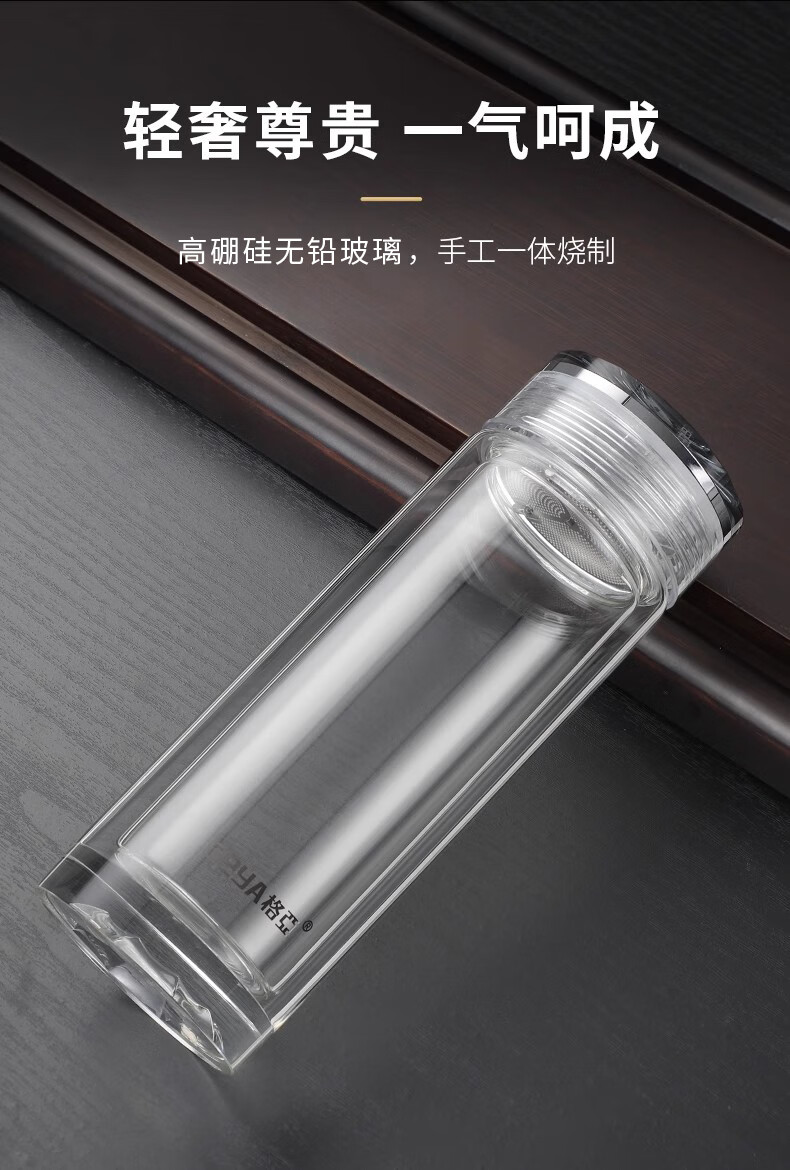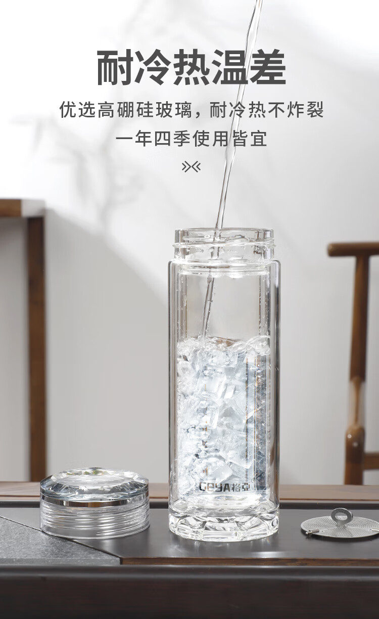 格亚(GEYA)高端玻璃杯隔热双层水杯大容量男茶杯玻璃水杯泡茶杯子办公车载 升级银离子抑菌款400ml 高档礼盒